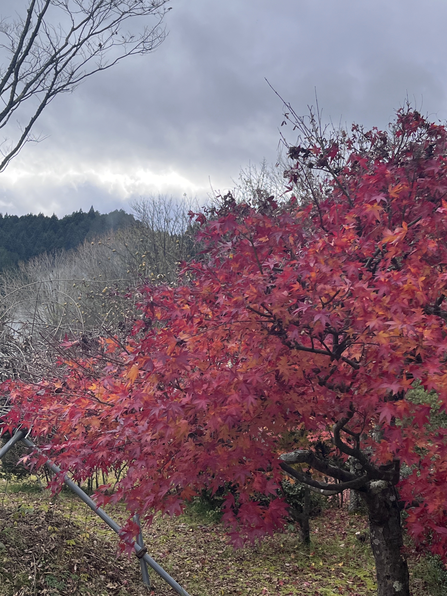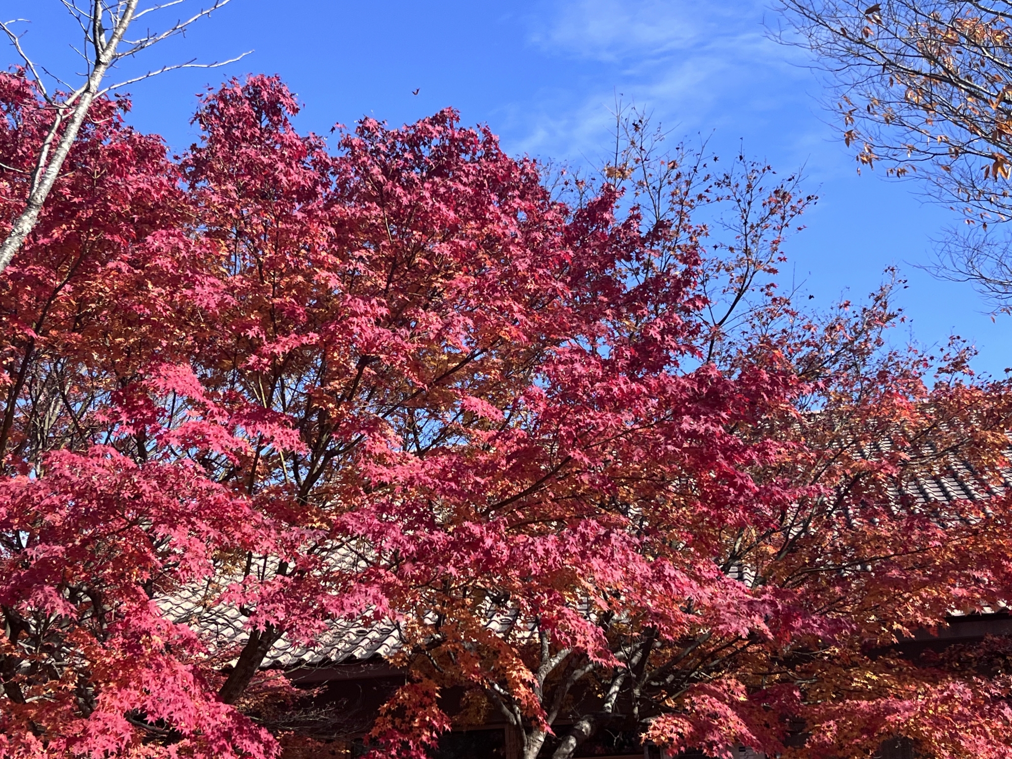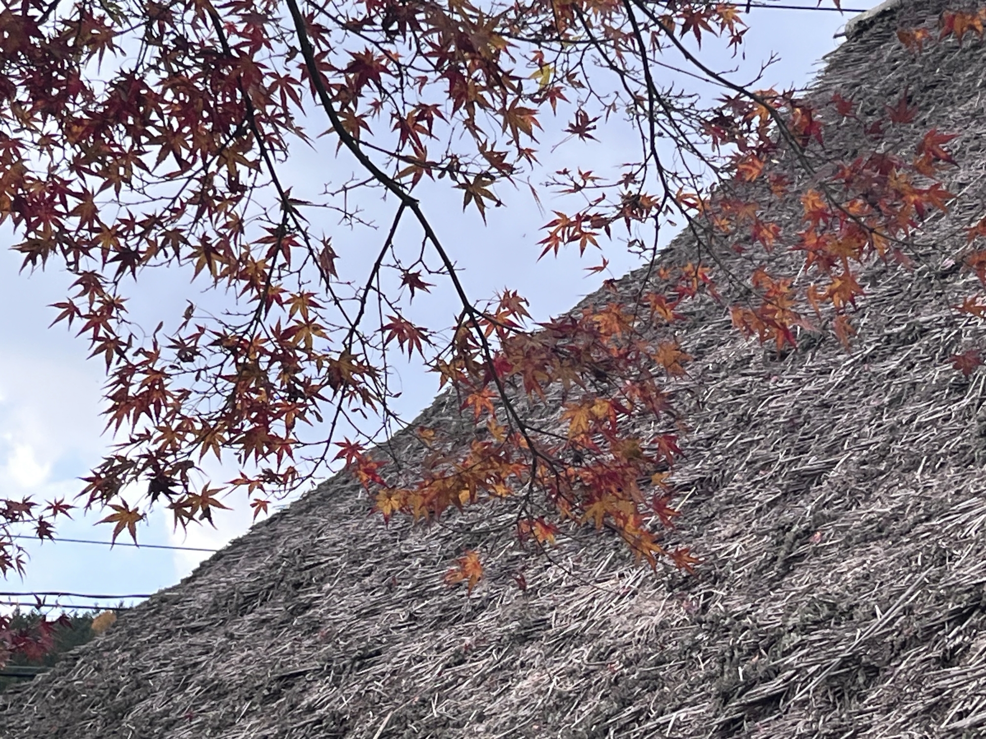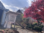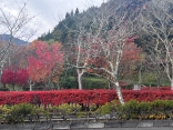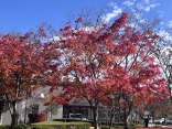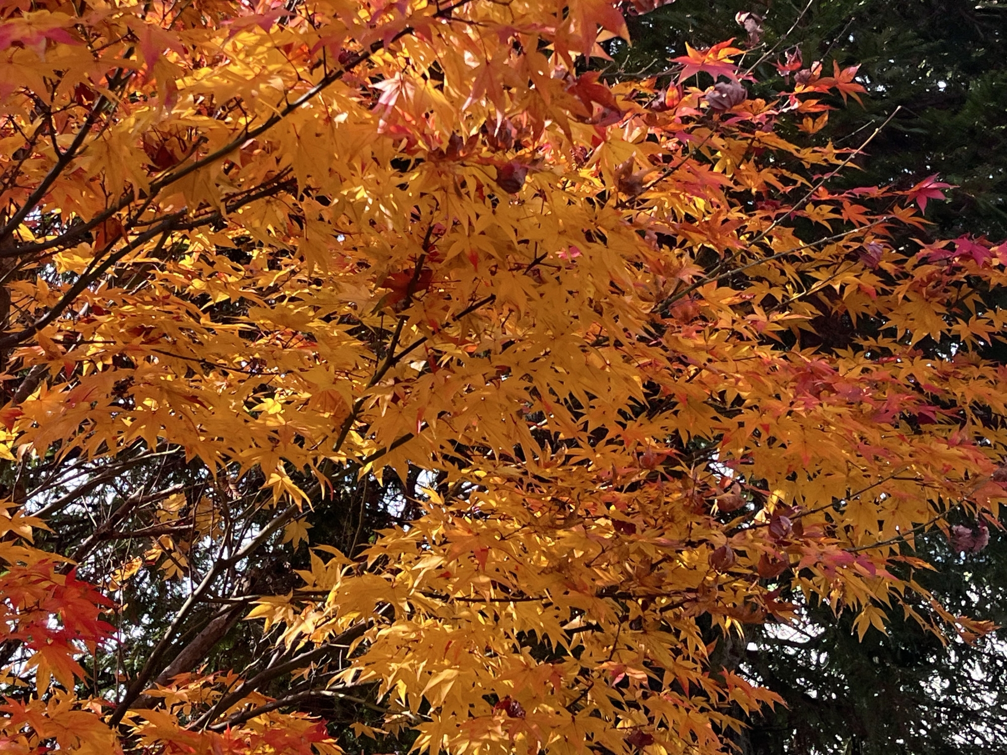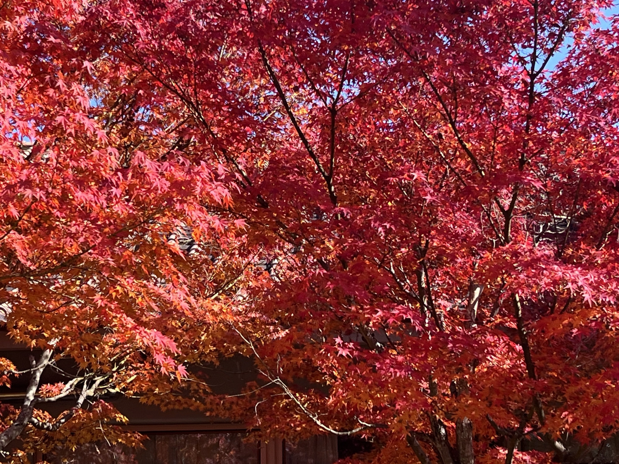 さて、昼から……診療所横もかなり散っていて……歴史民俗資料館の横で、ドウダンツツジと紅葉.