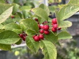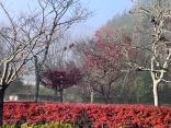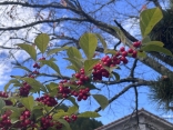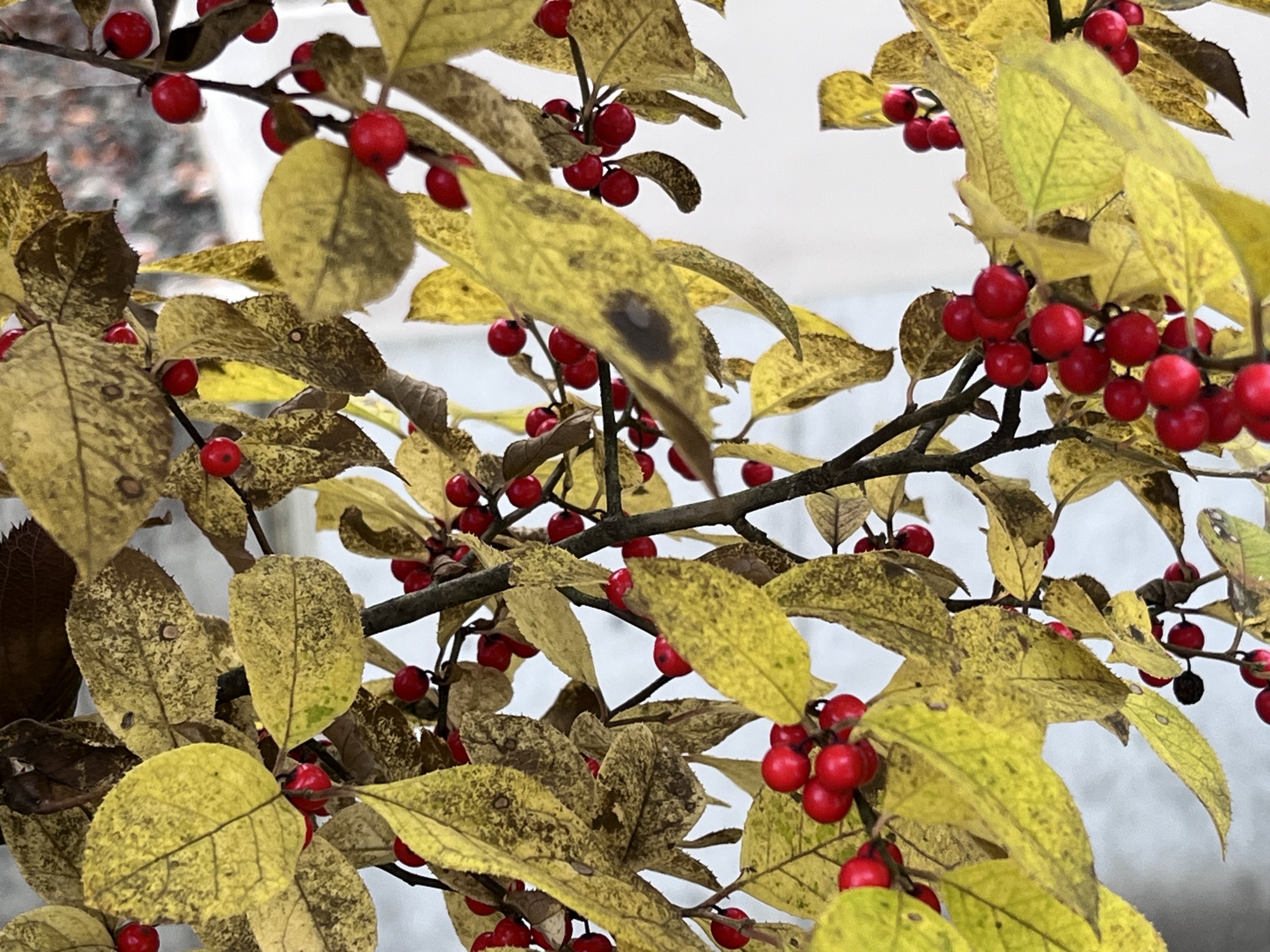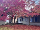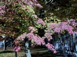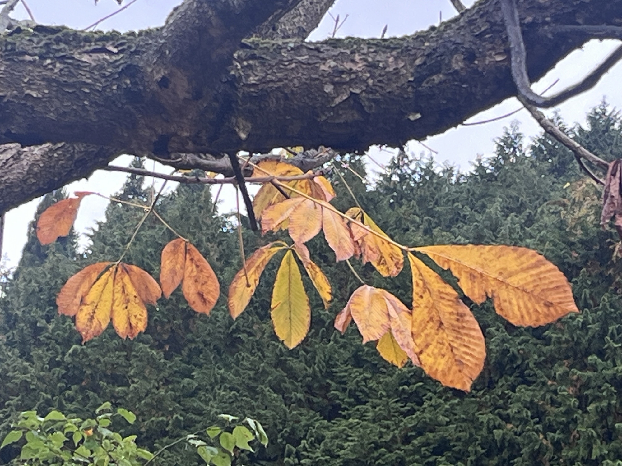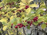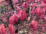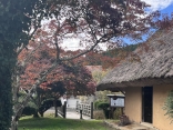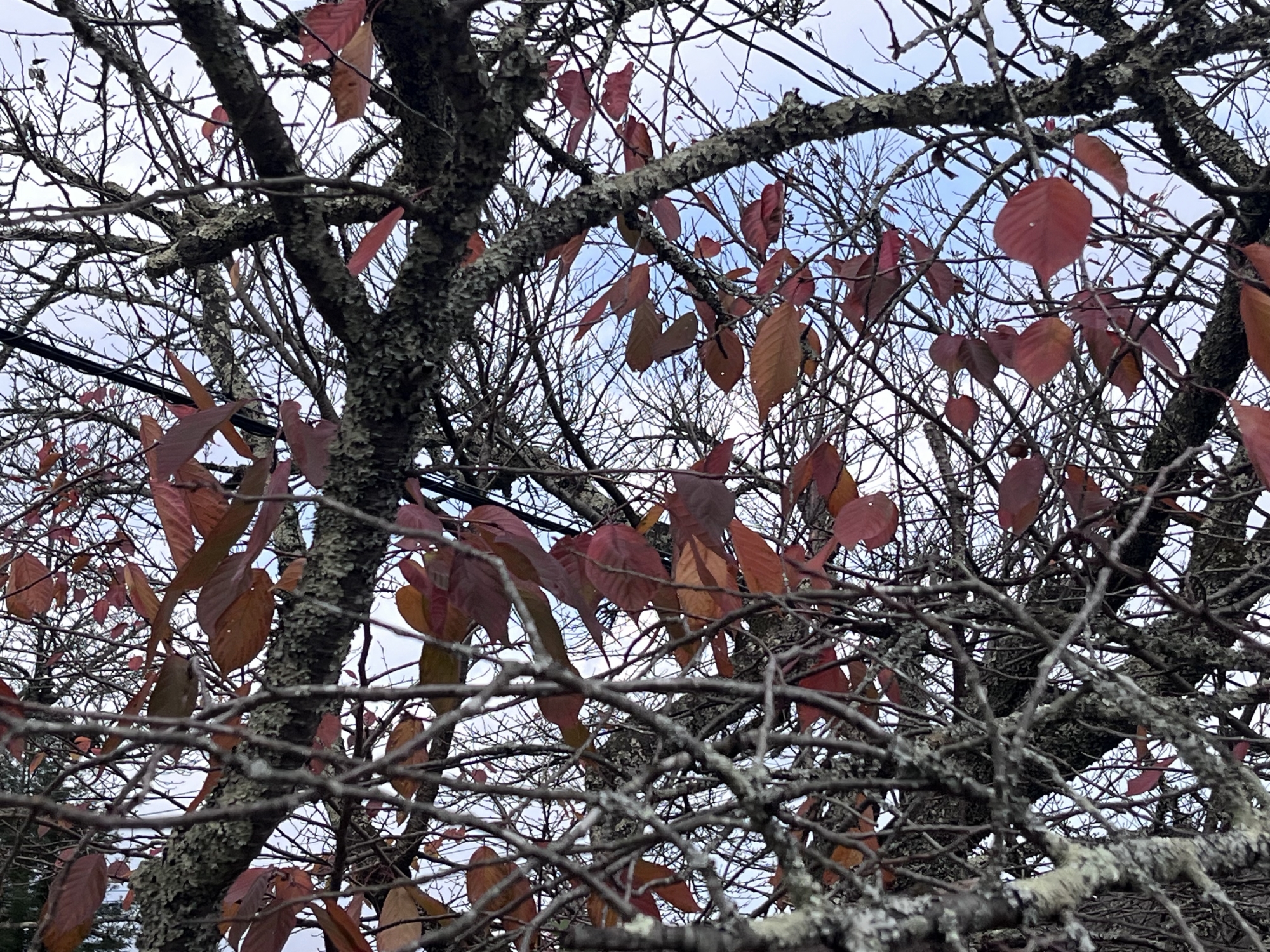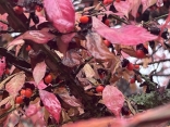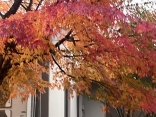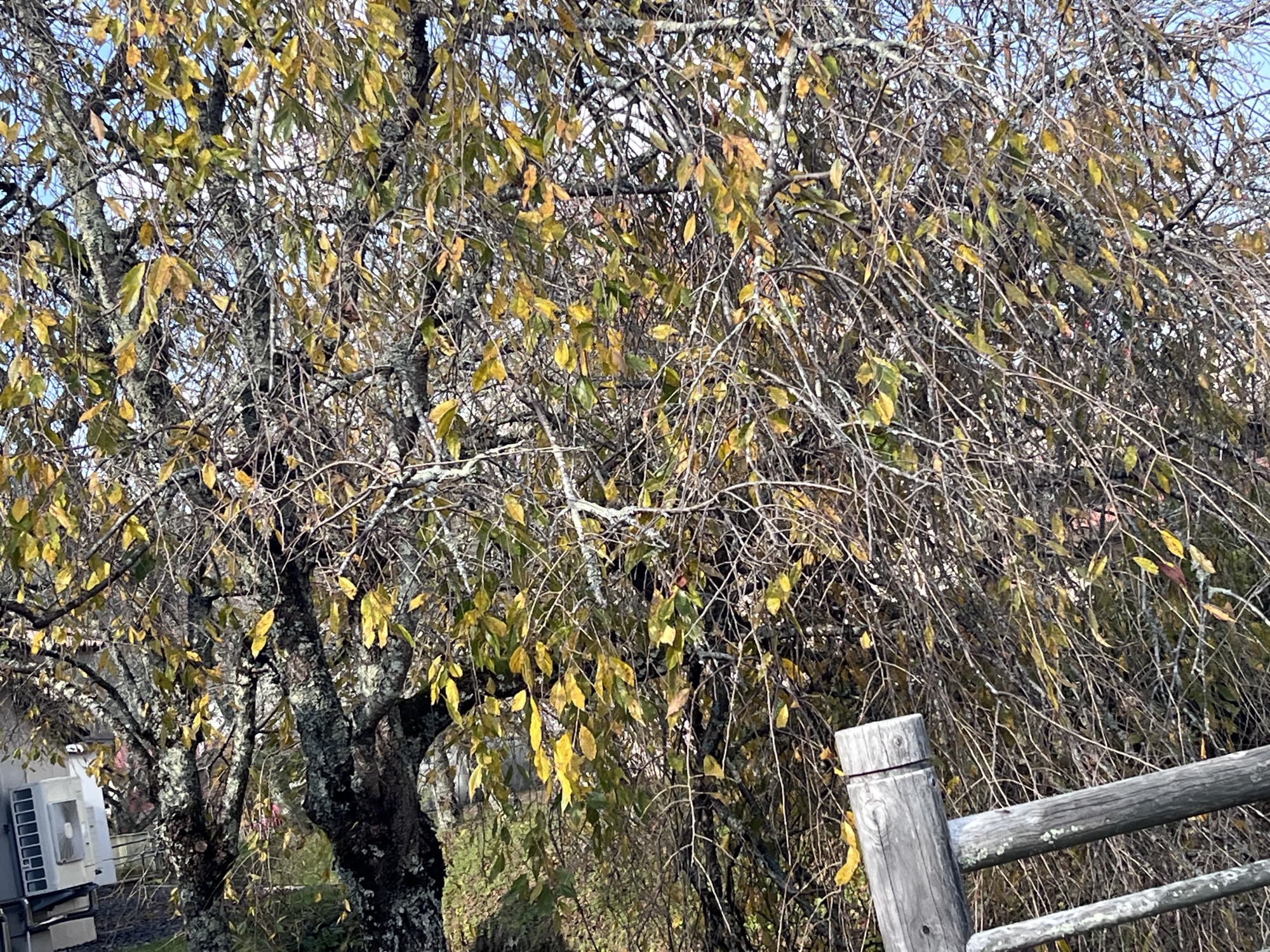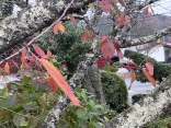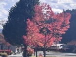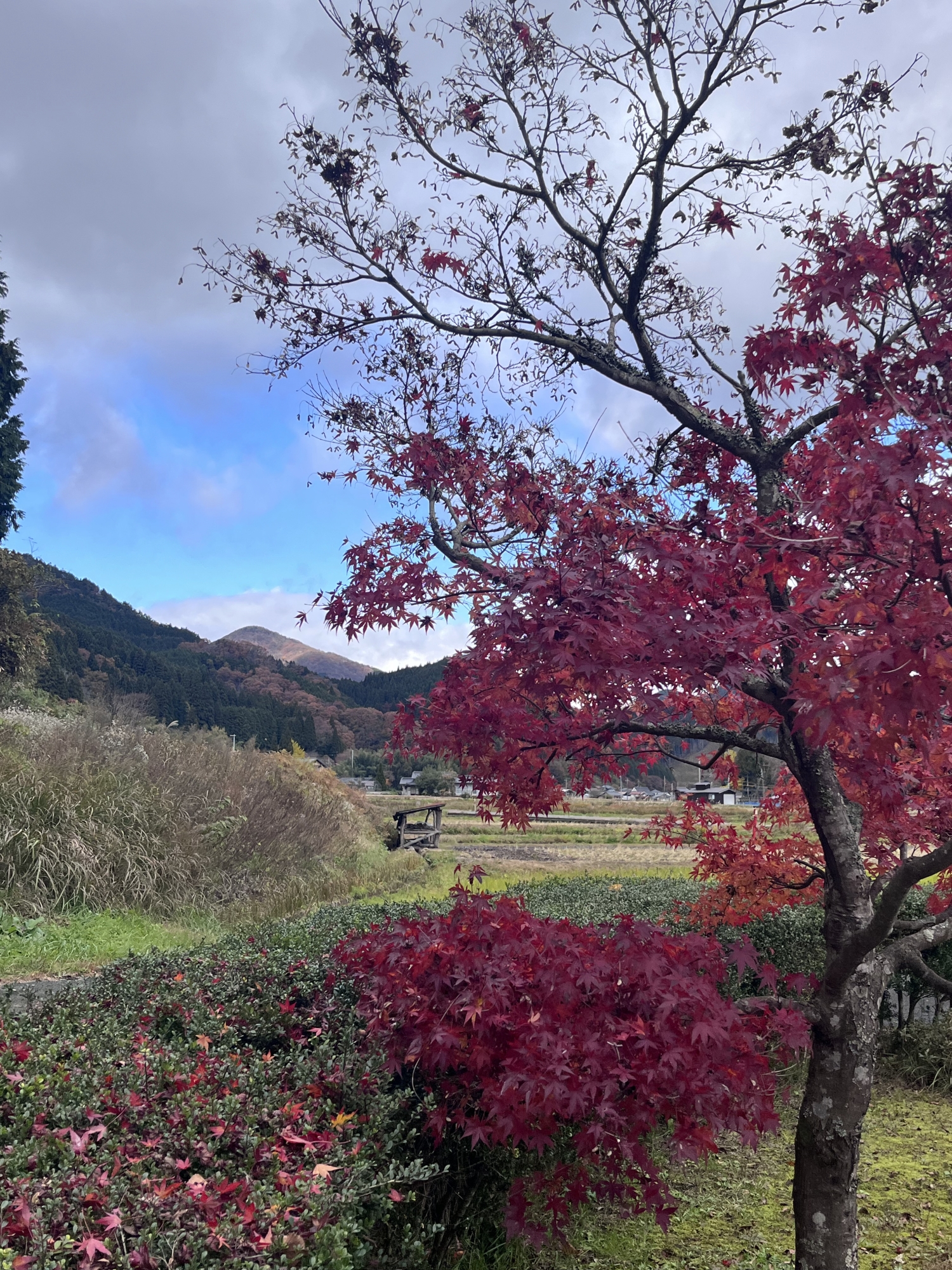 さて、昼から……診療所横もかなり散っていて……歴史民俗資料館の横で、ドウダンツツジと紅葉.