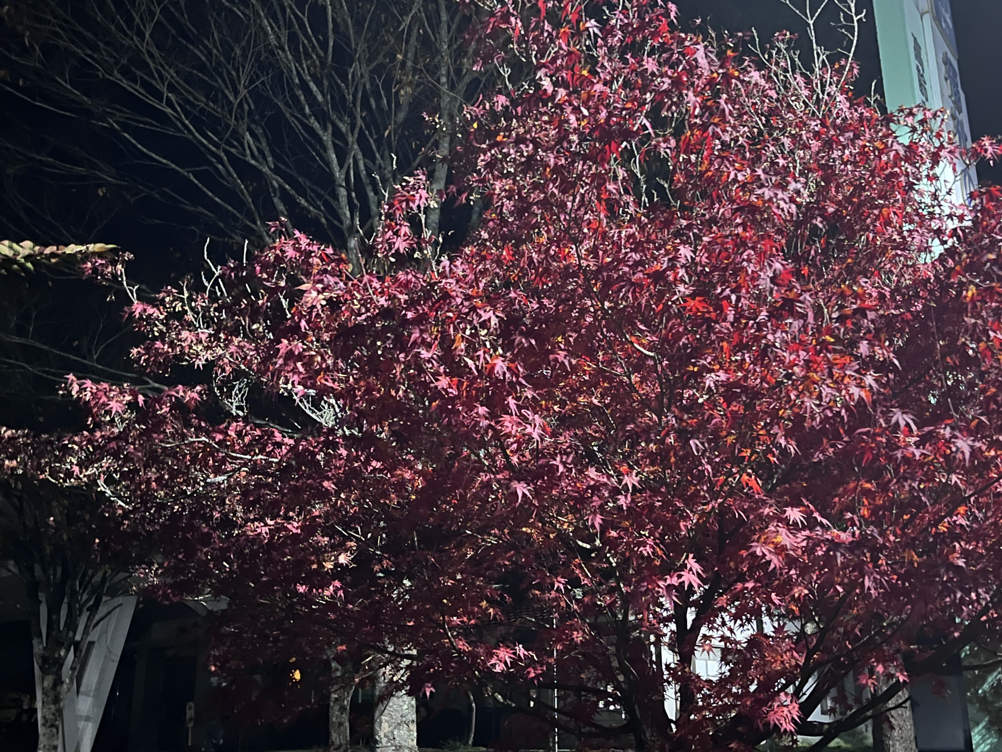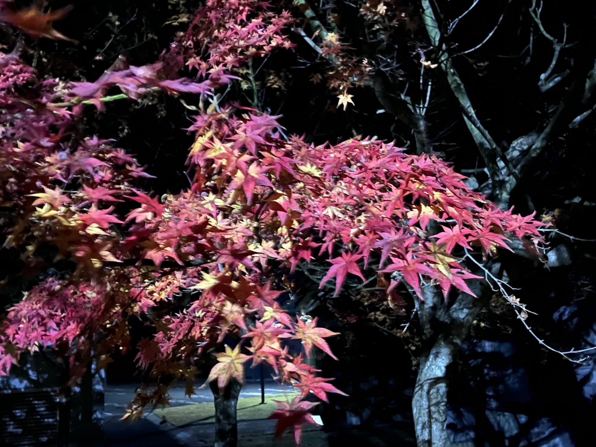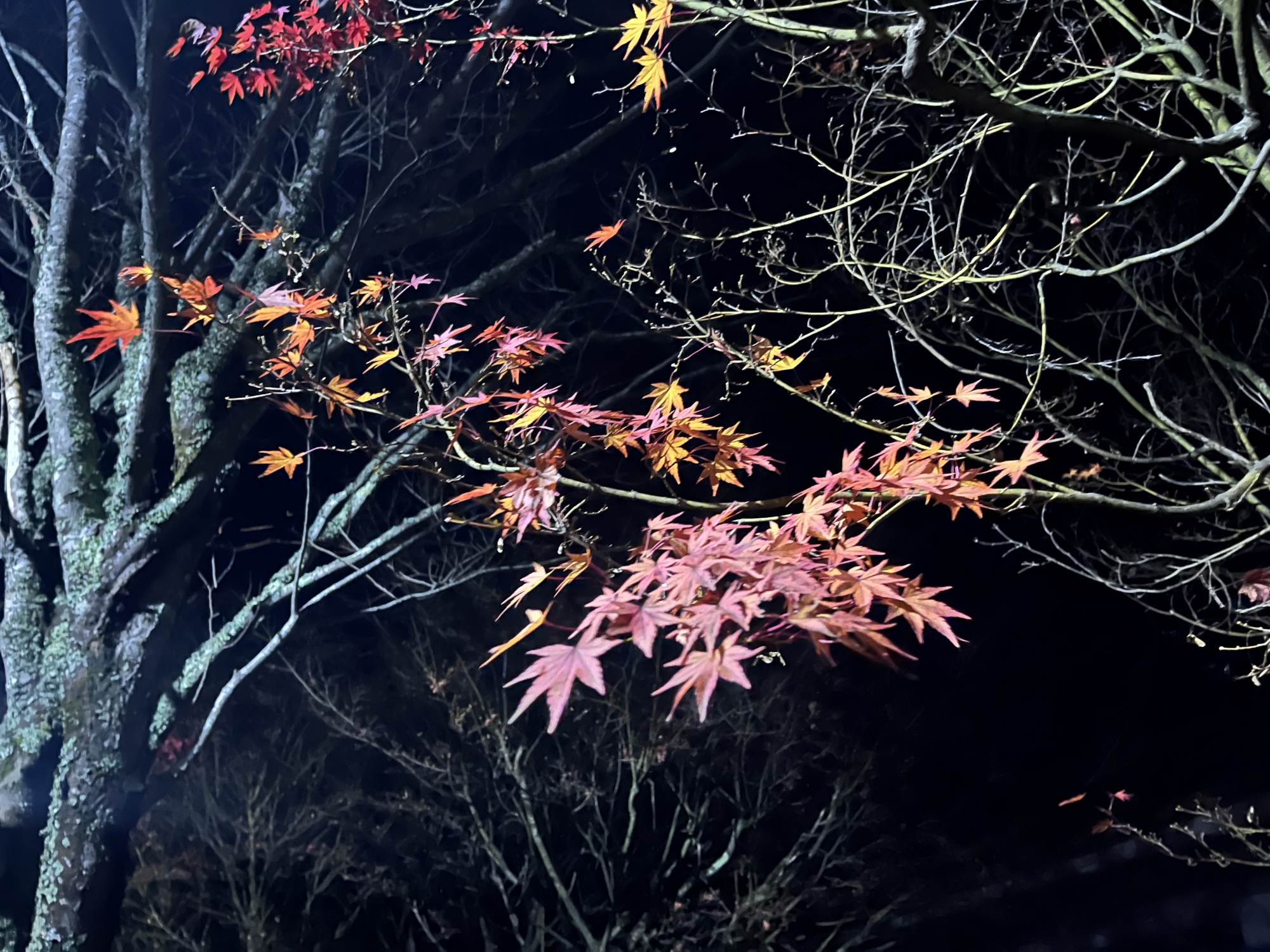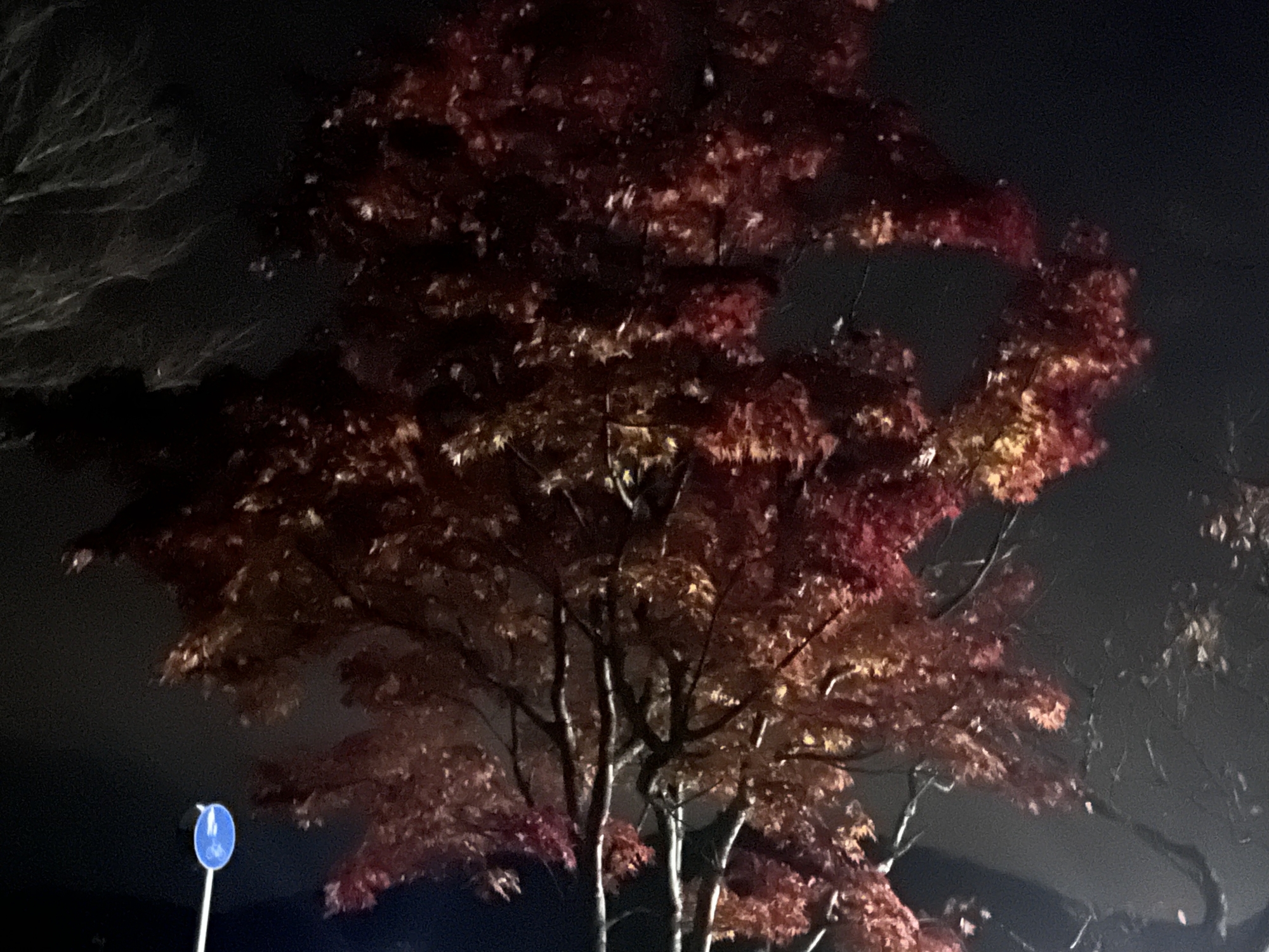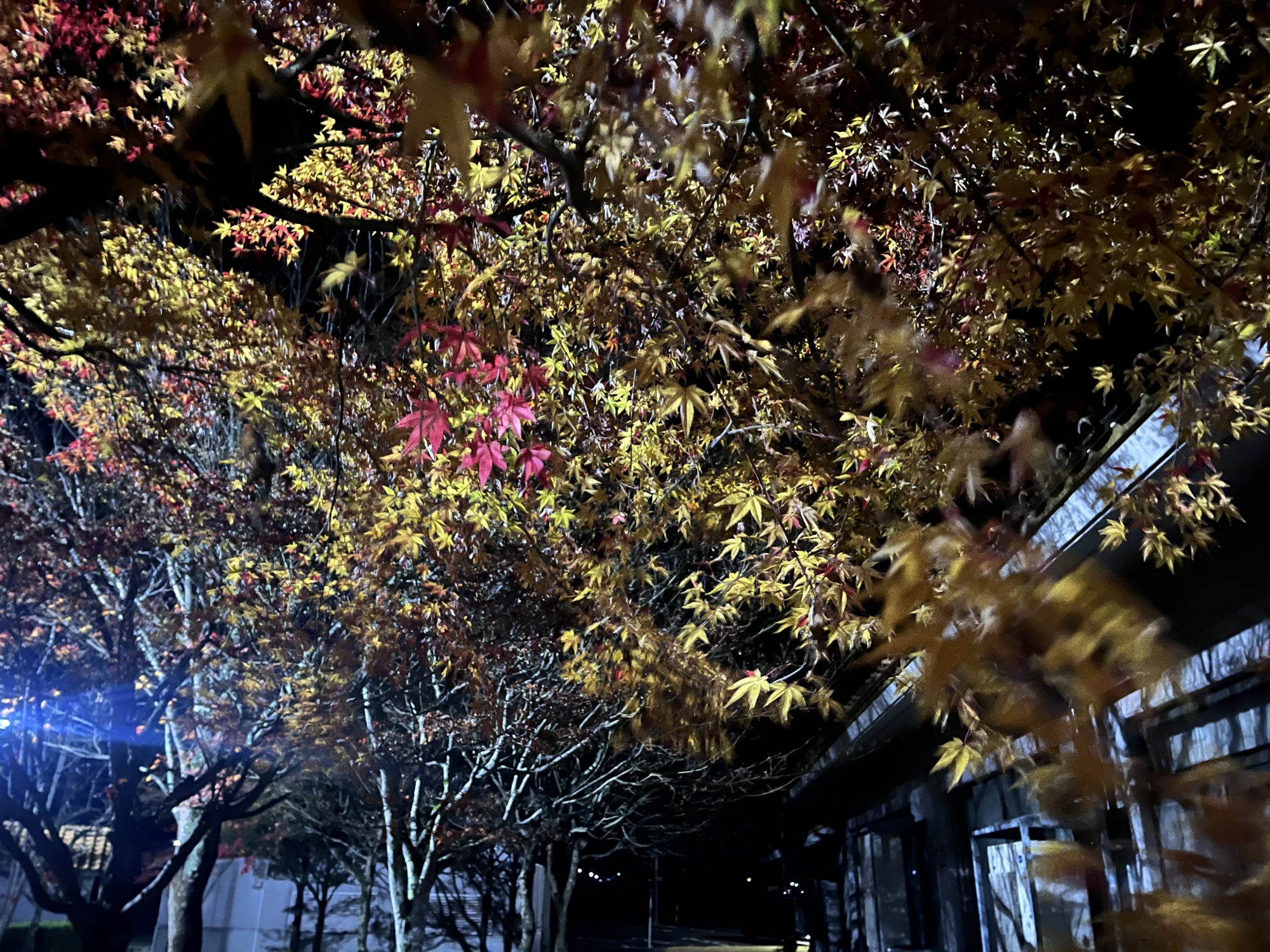 夜の紅葉もさびしくなってきて、落葉も増えています.