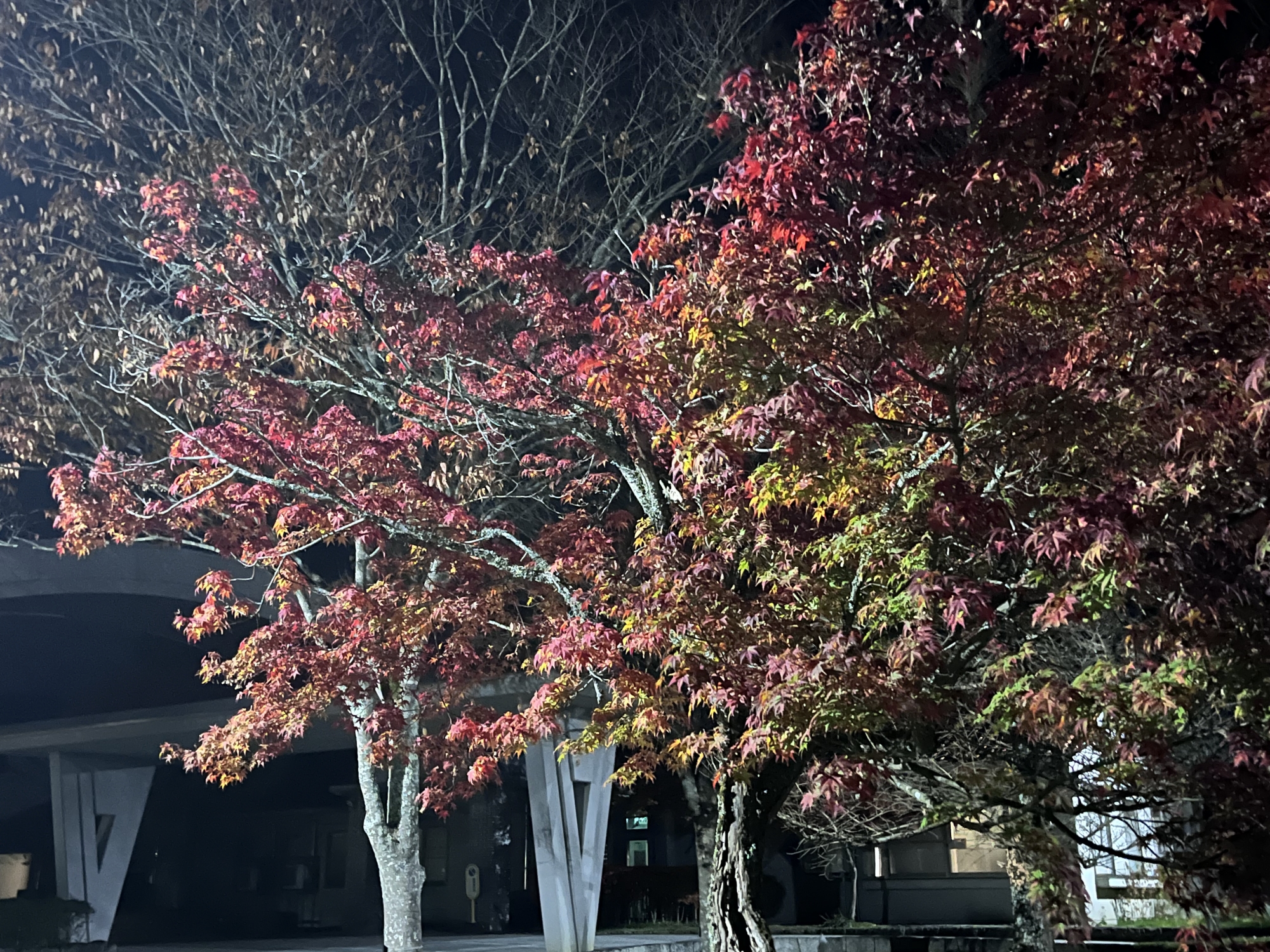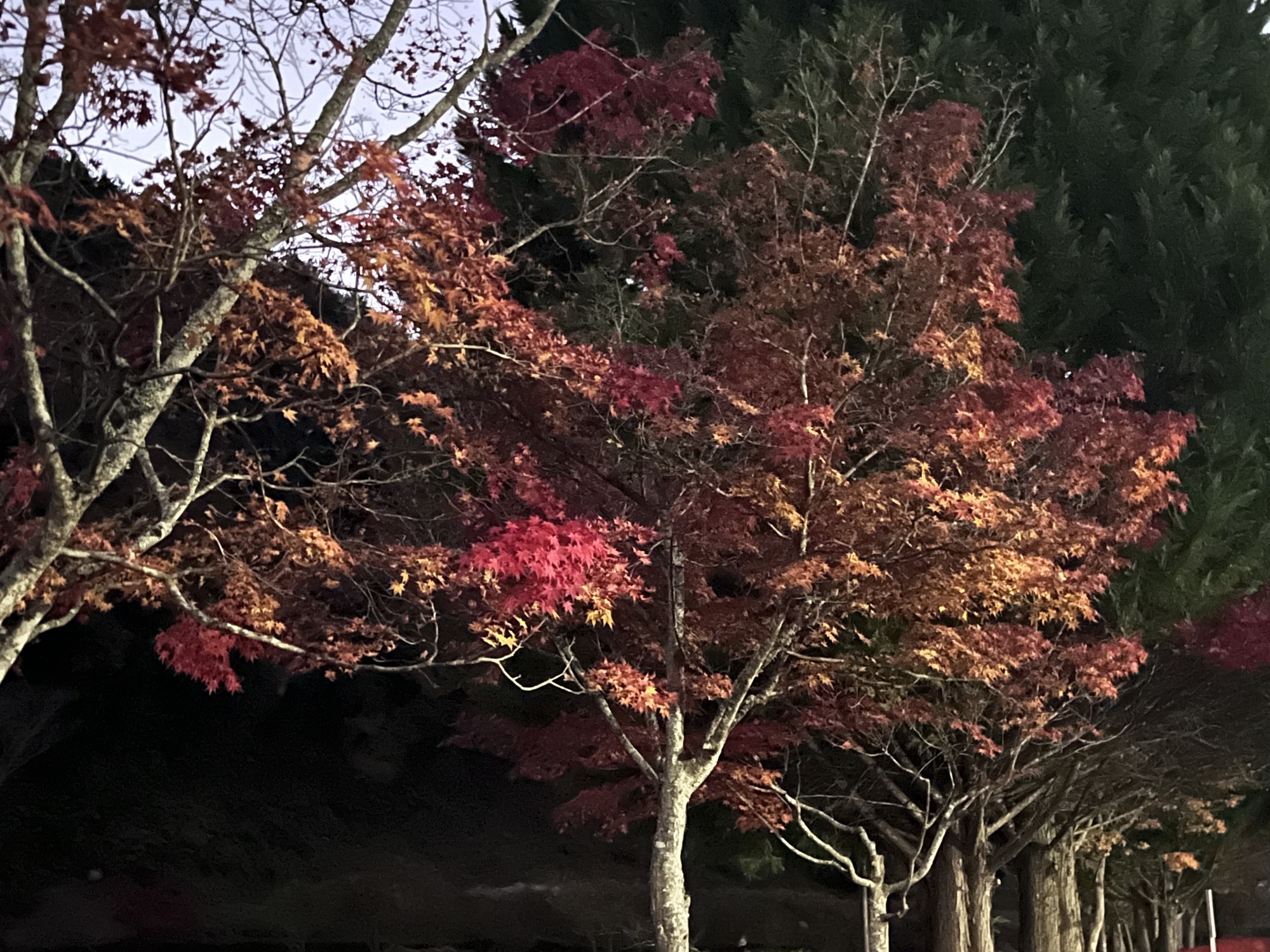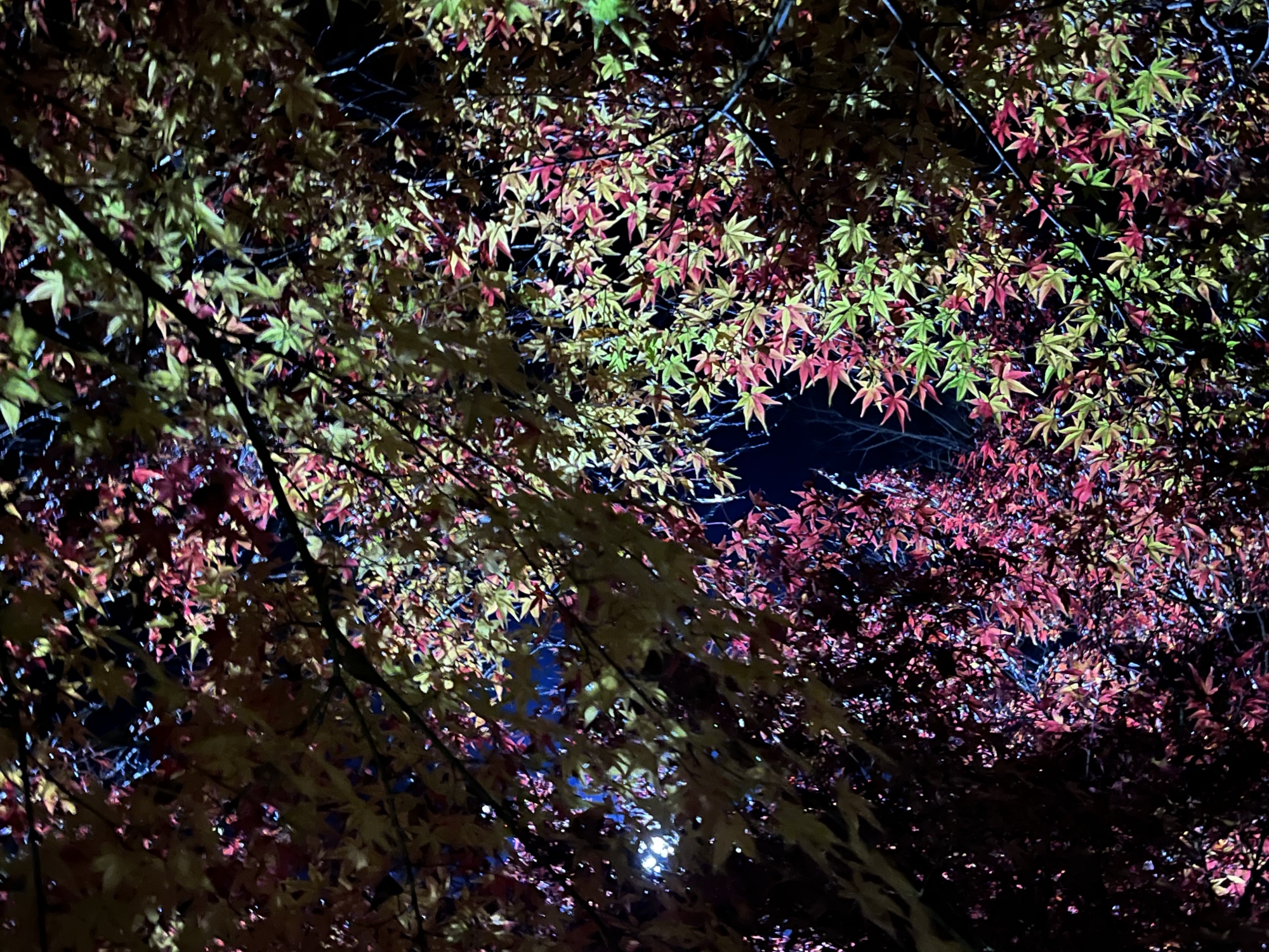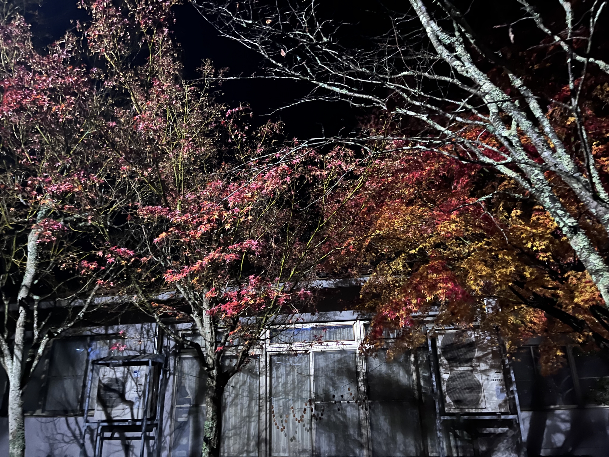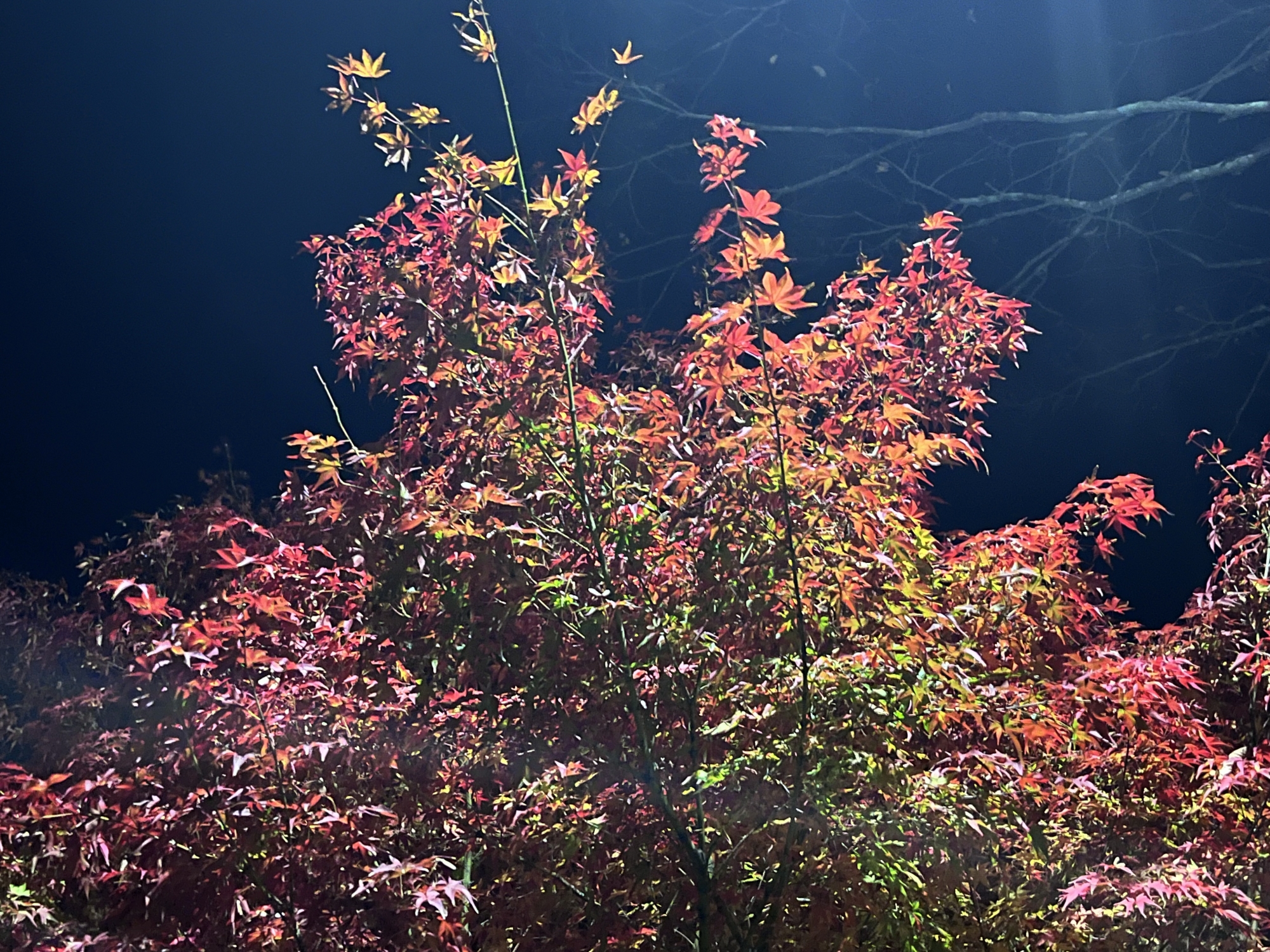 夜の紅葉もさびしくなってきて、落葉も増えています.