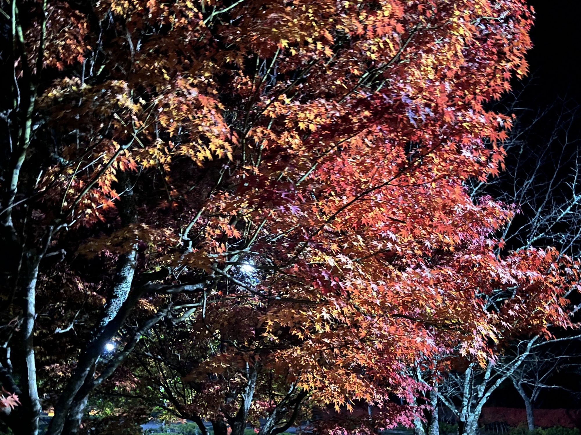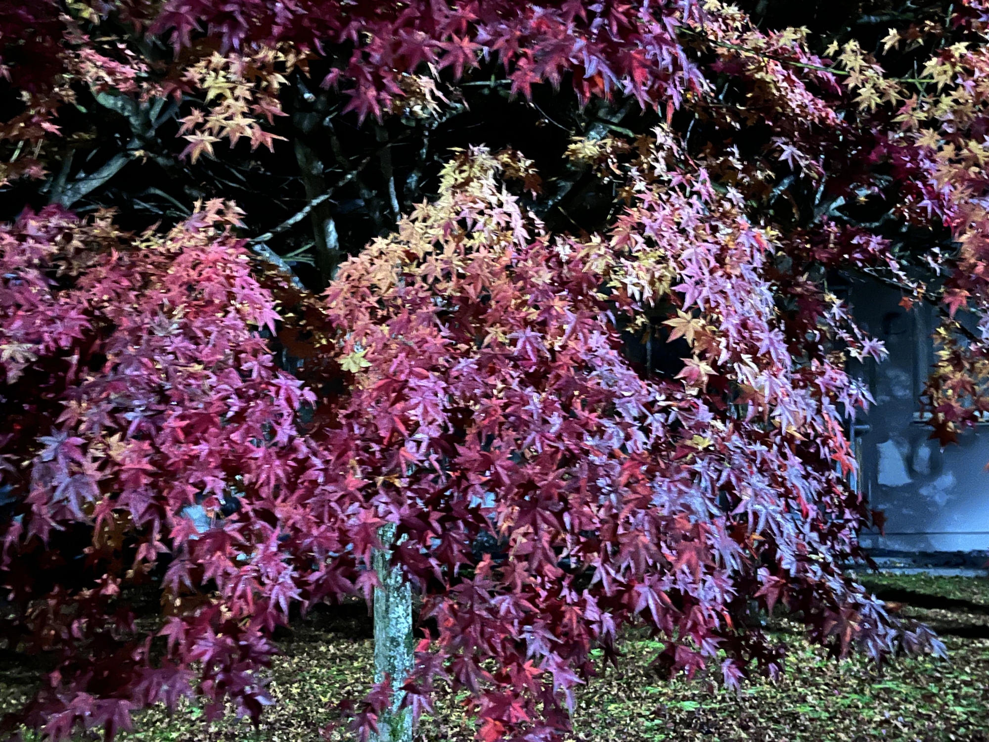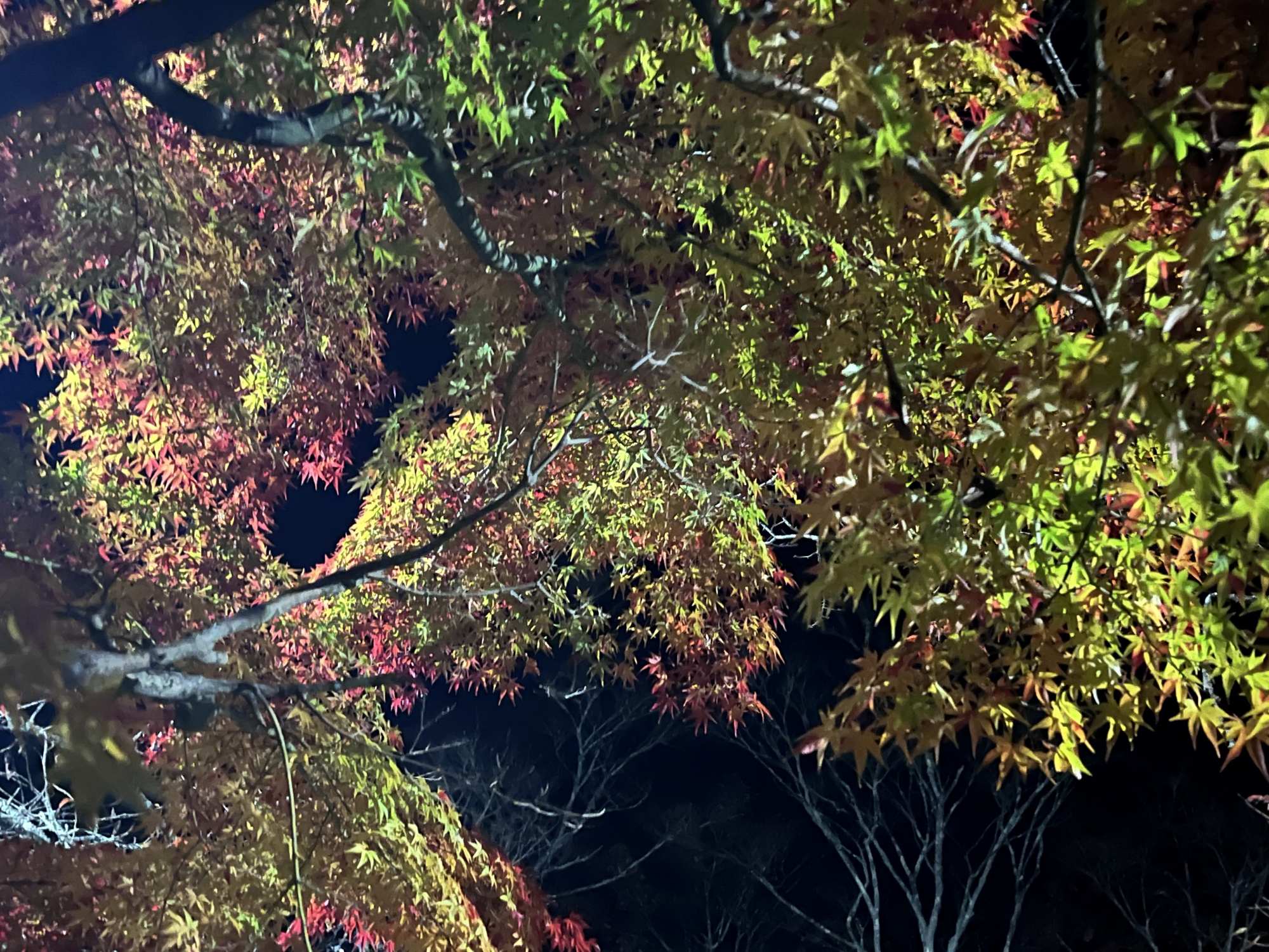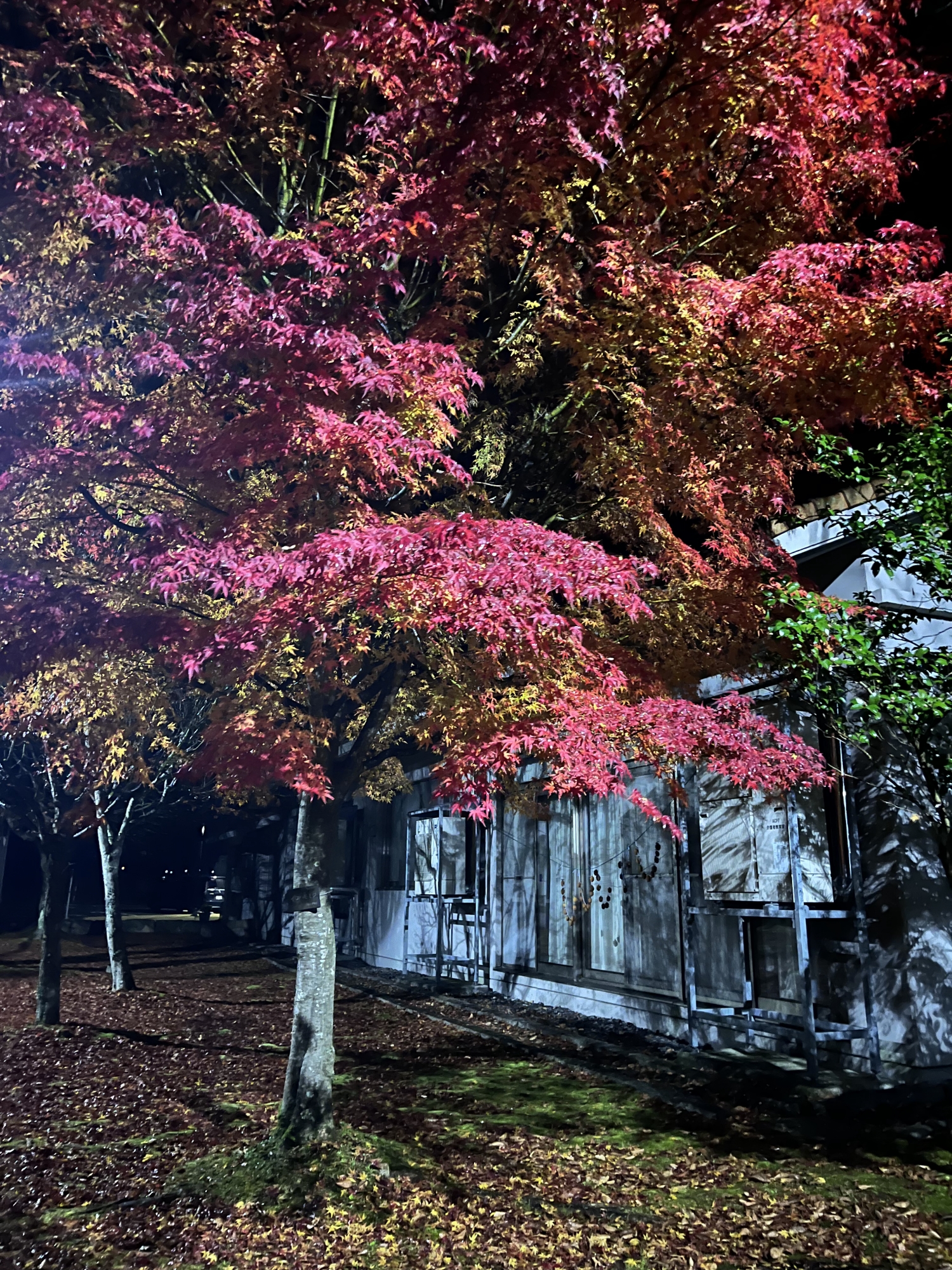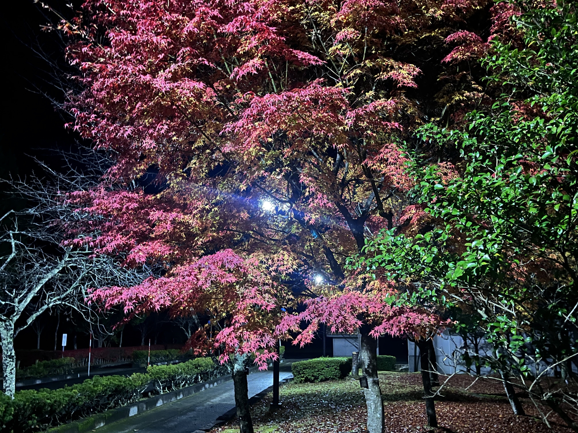 夜の紅葉もさびしくなってきて、落葉も増えています.