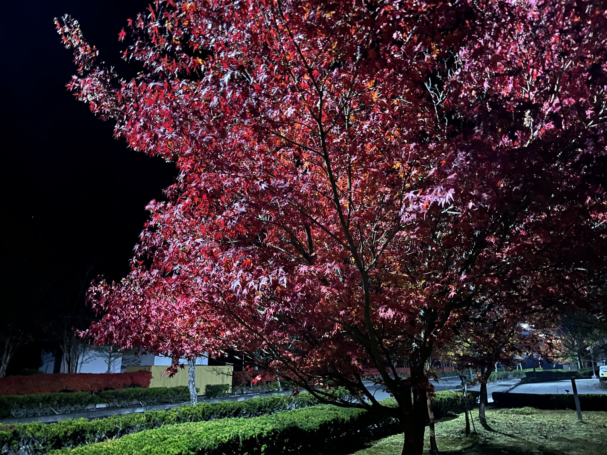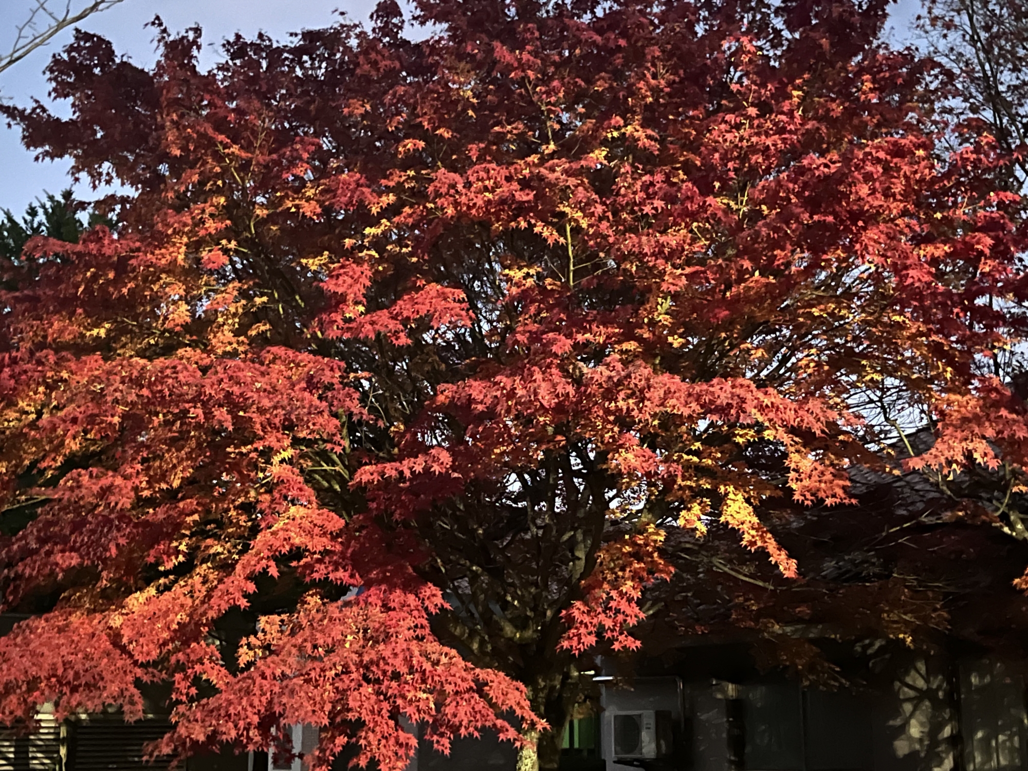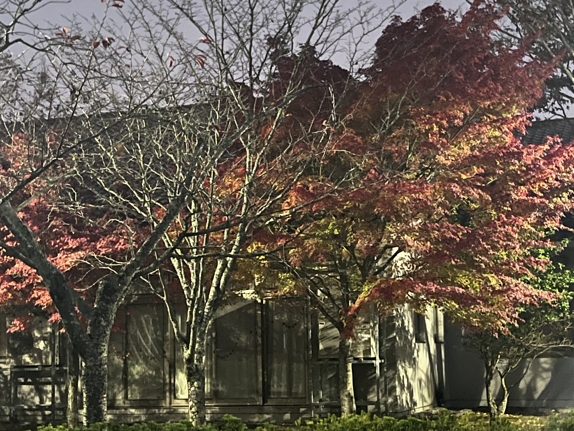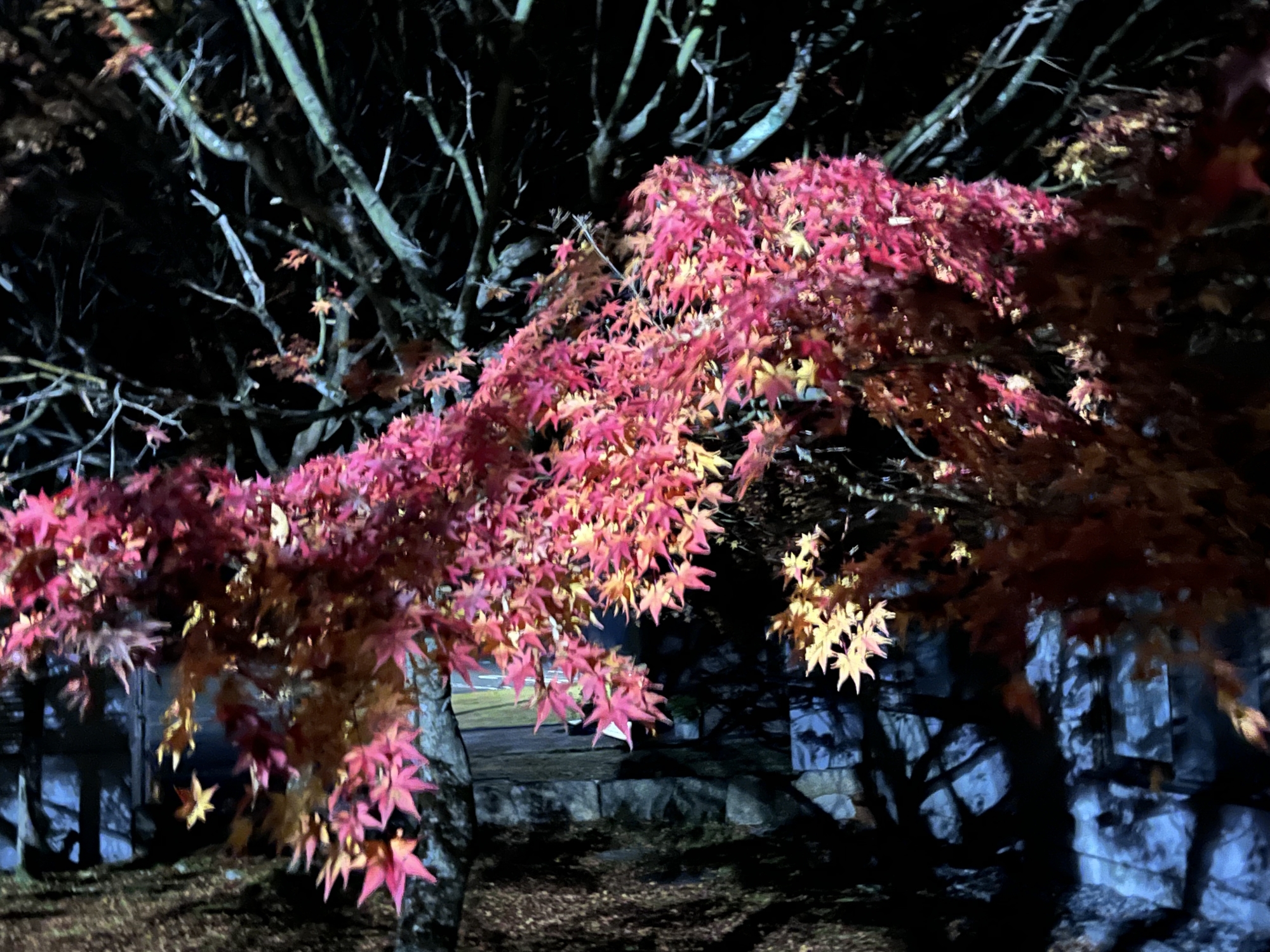 夜の紅葉もさびしくなってきて、落葉も増えています.