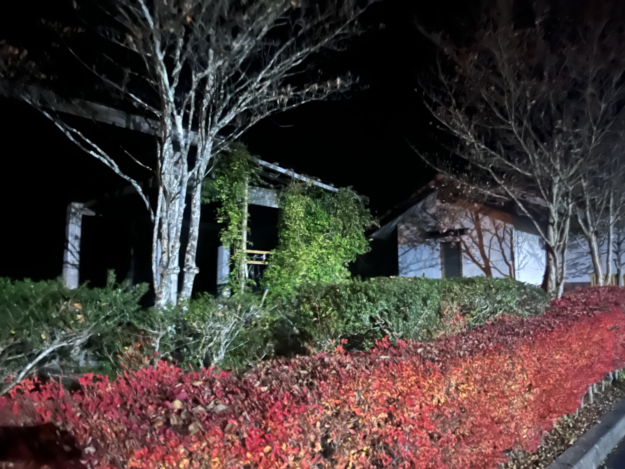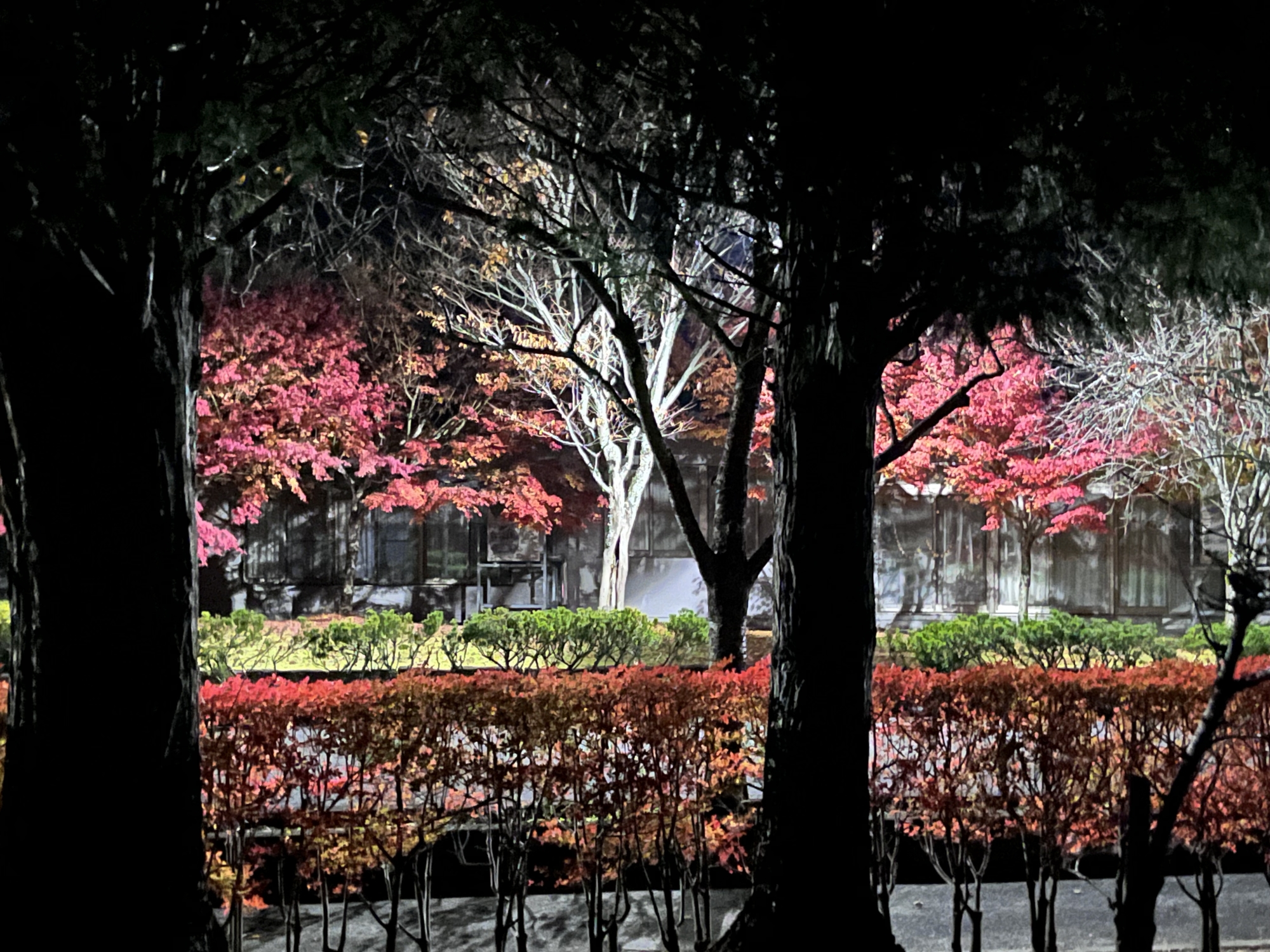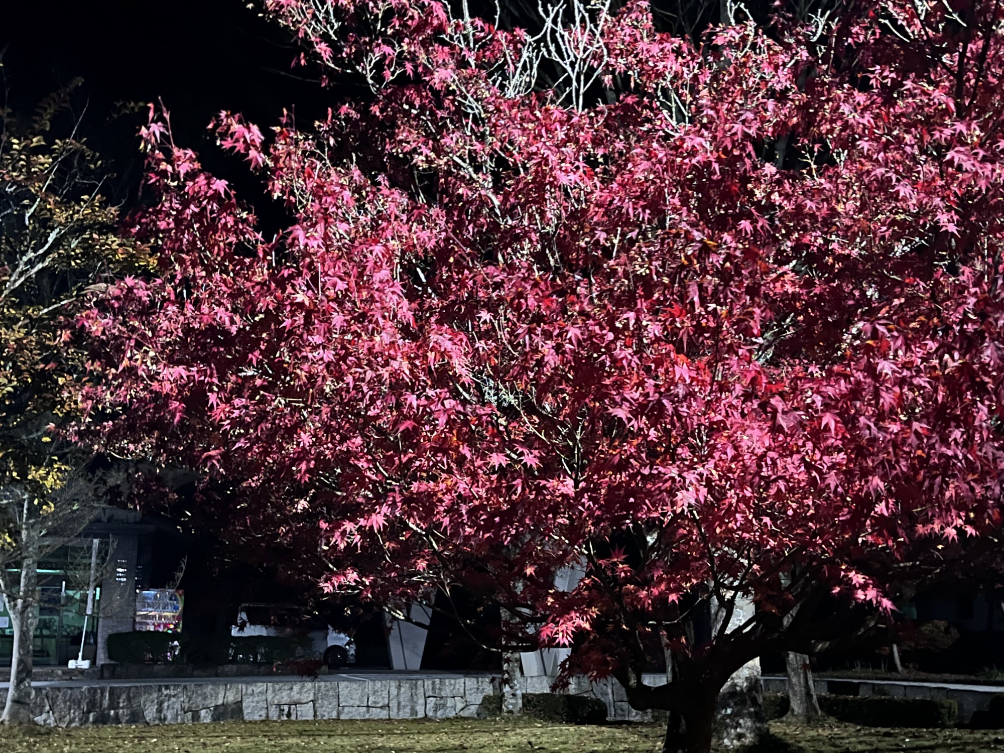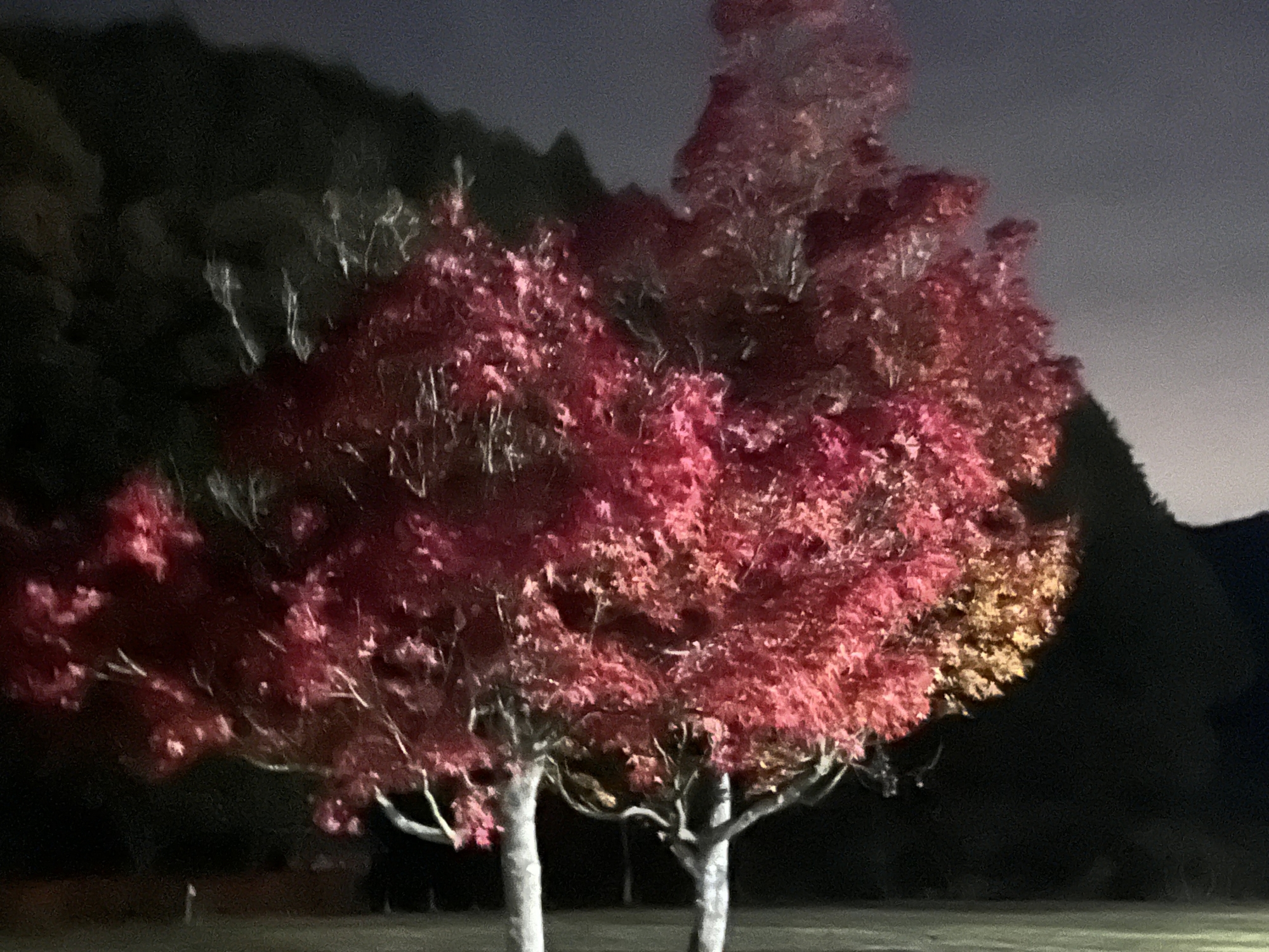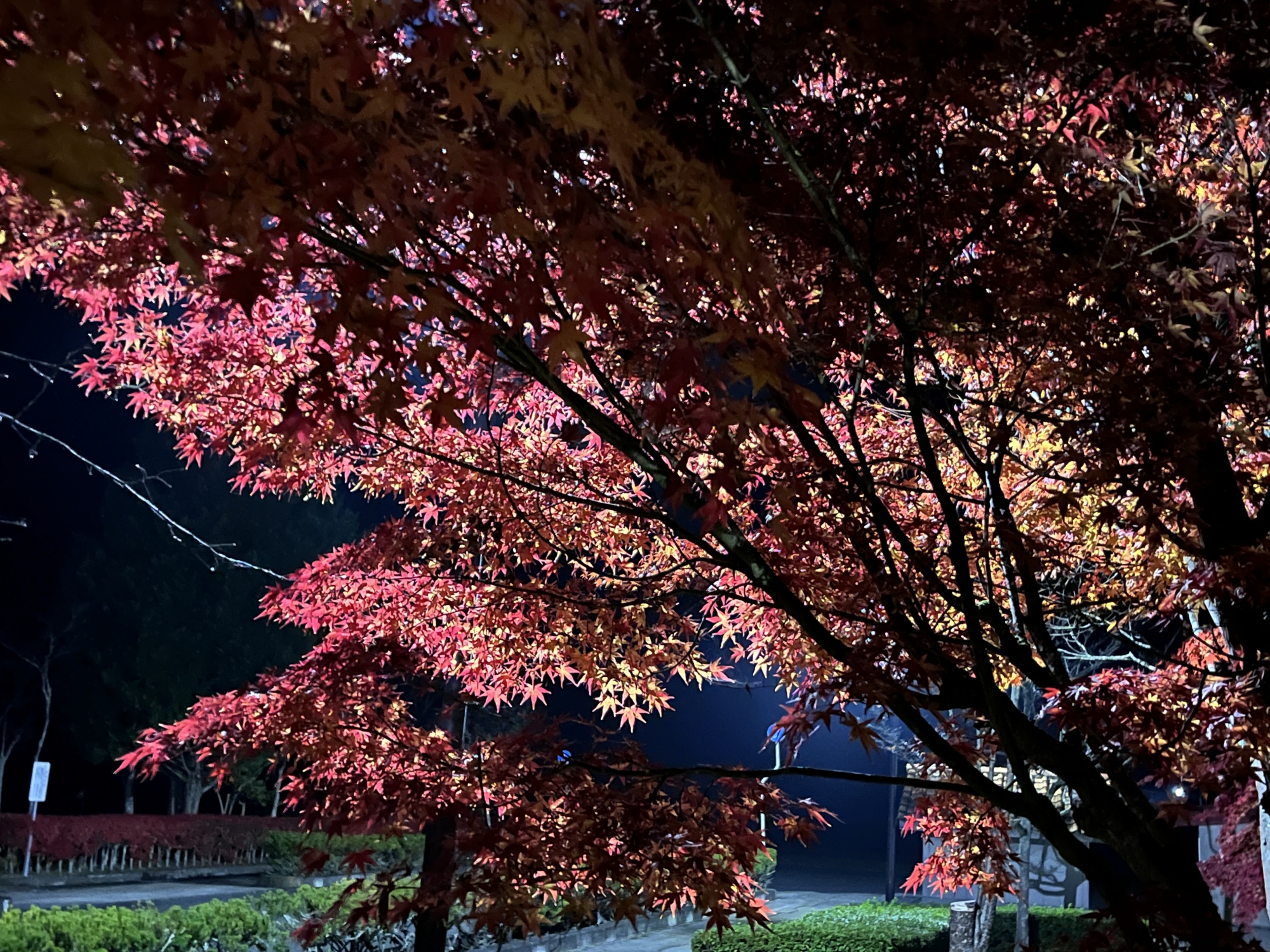 夜の紅葉もさびしくなってきて、落葉も増えています.