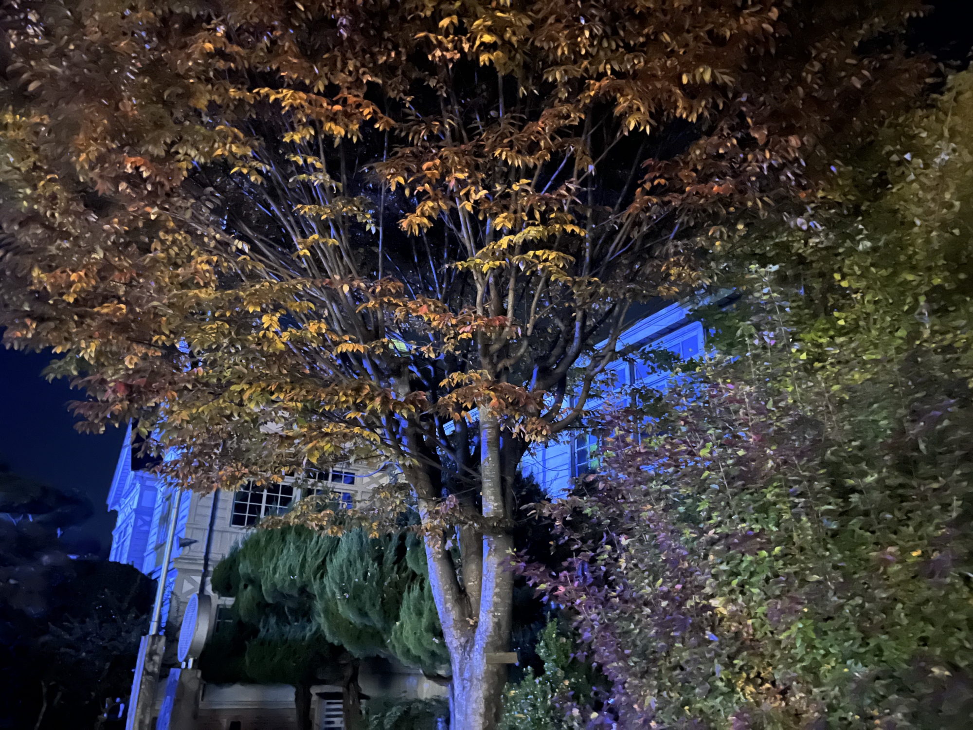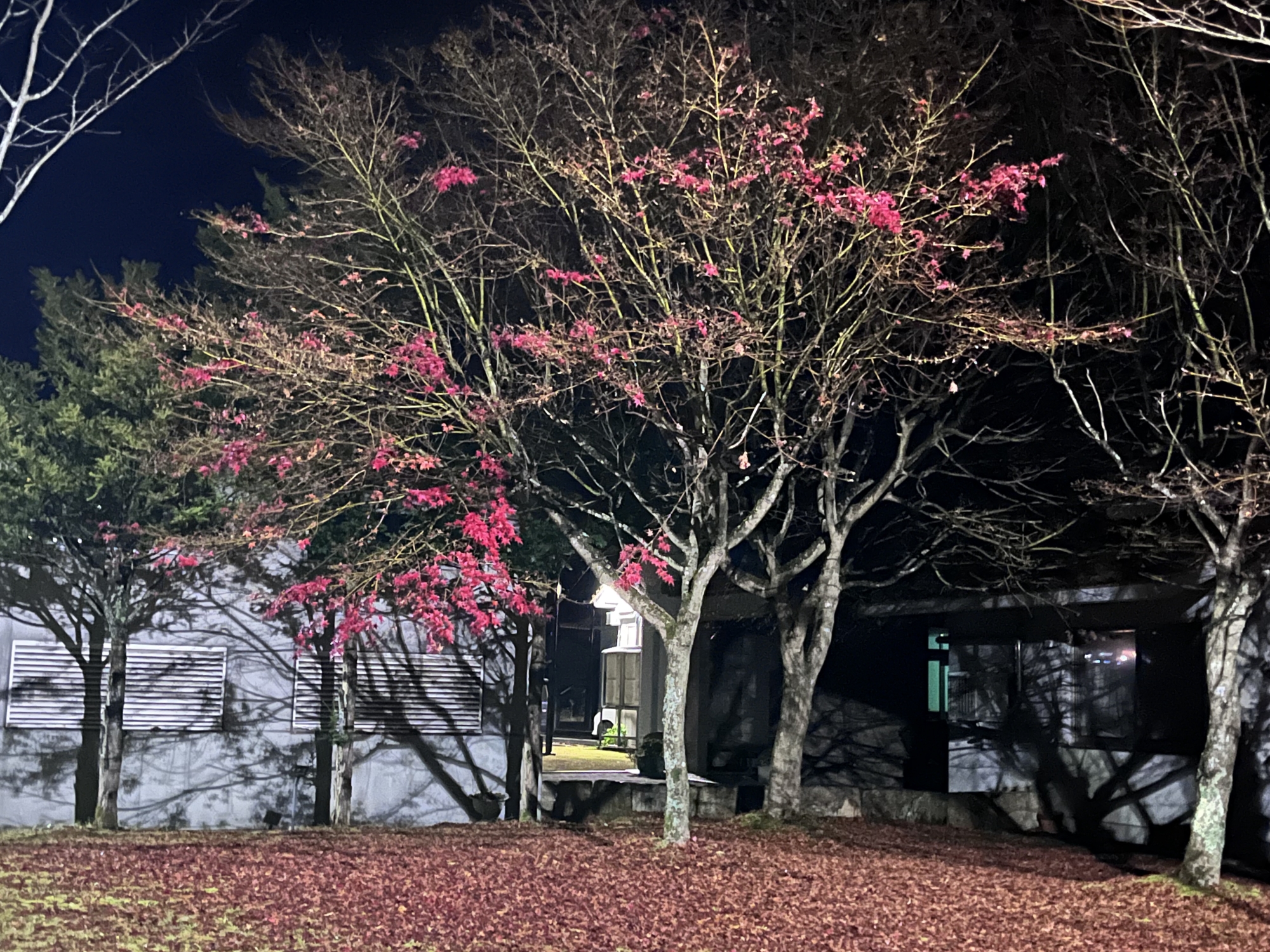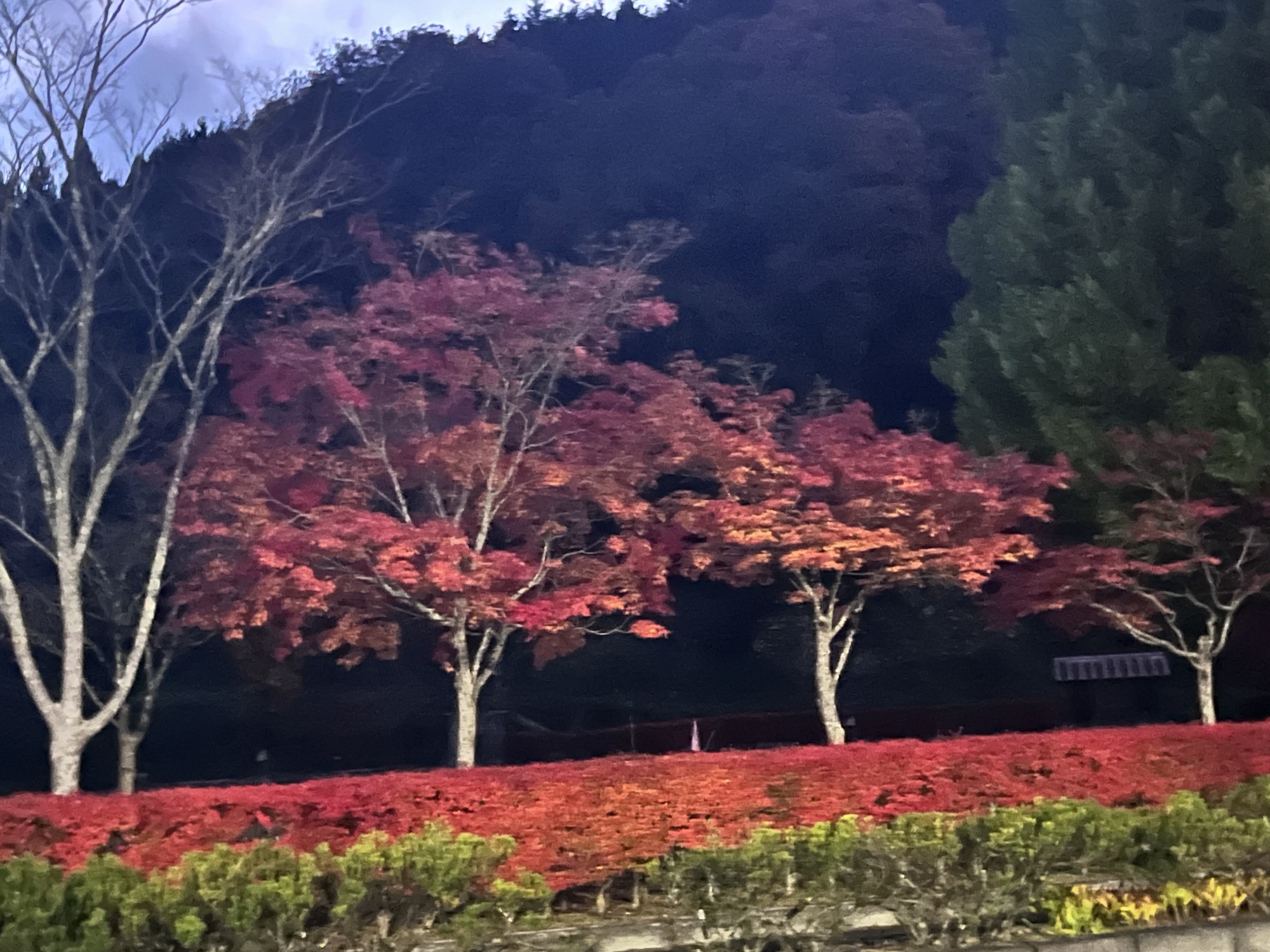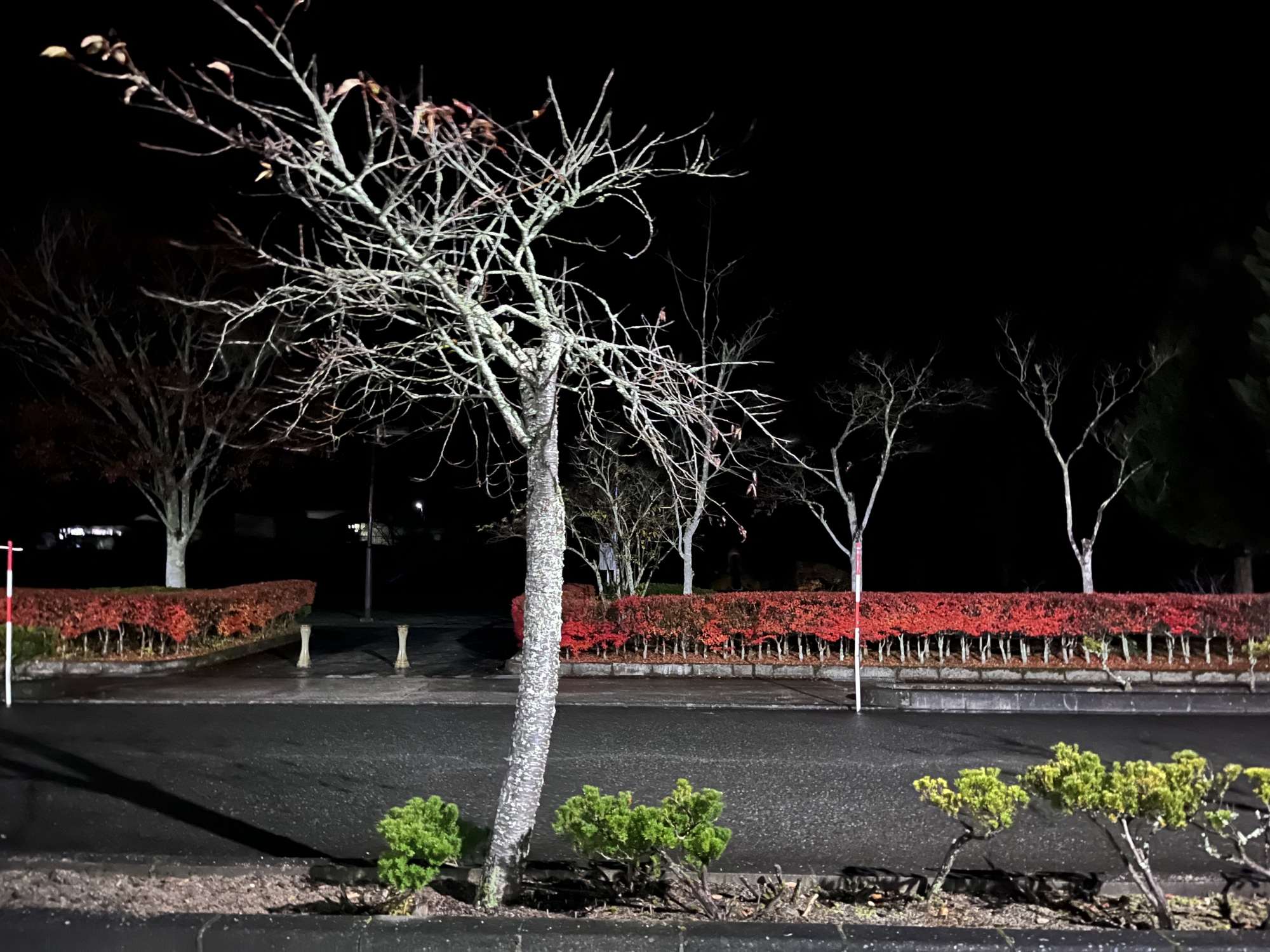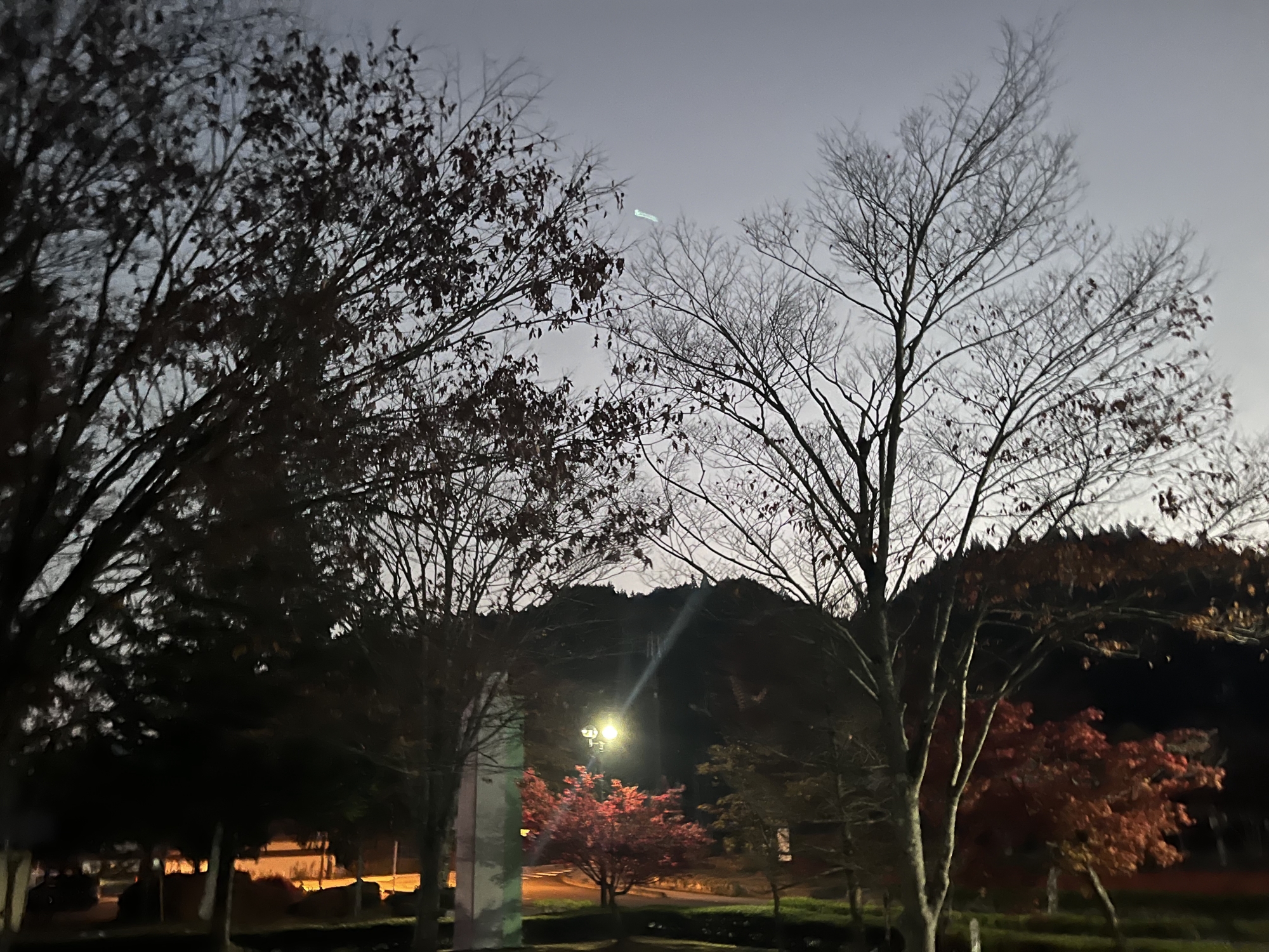 夜の紅葉もさびしくなってきて、落葉も増えています.