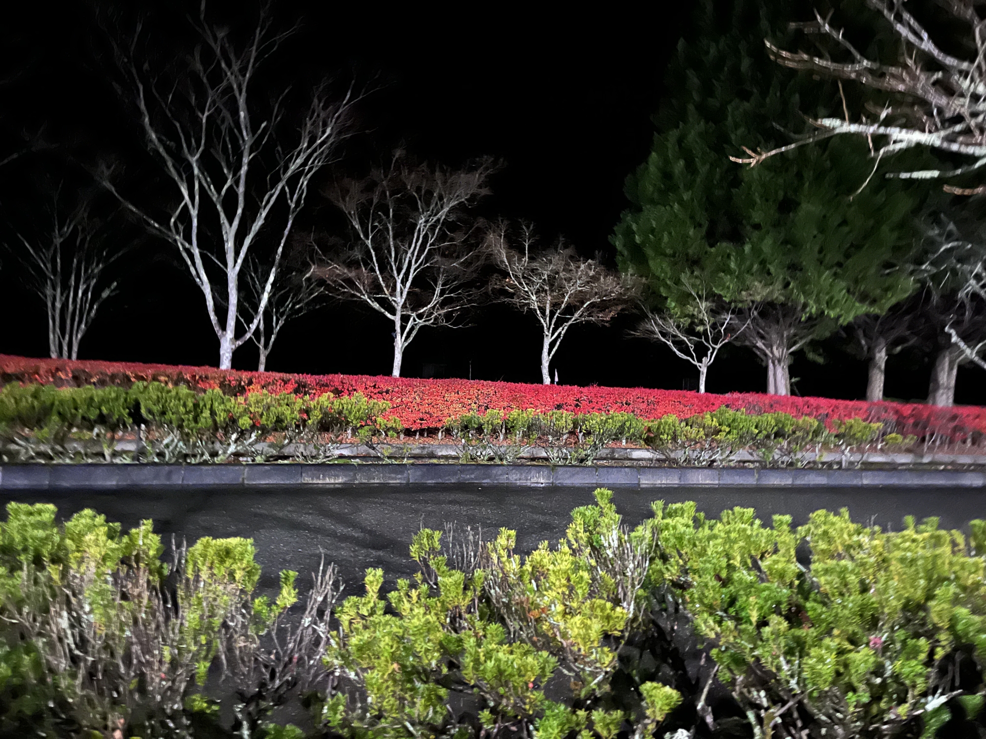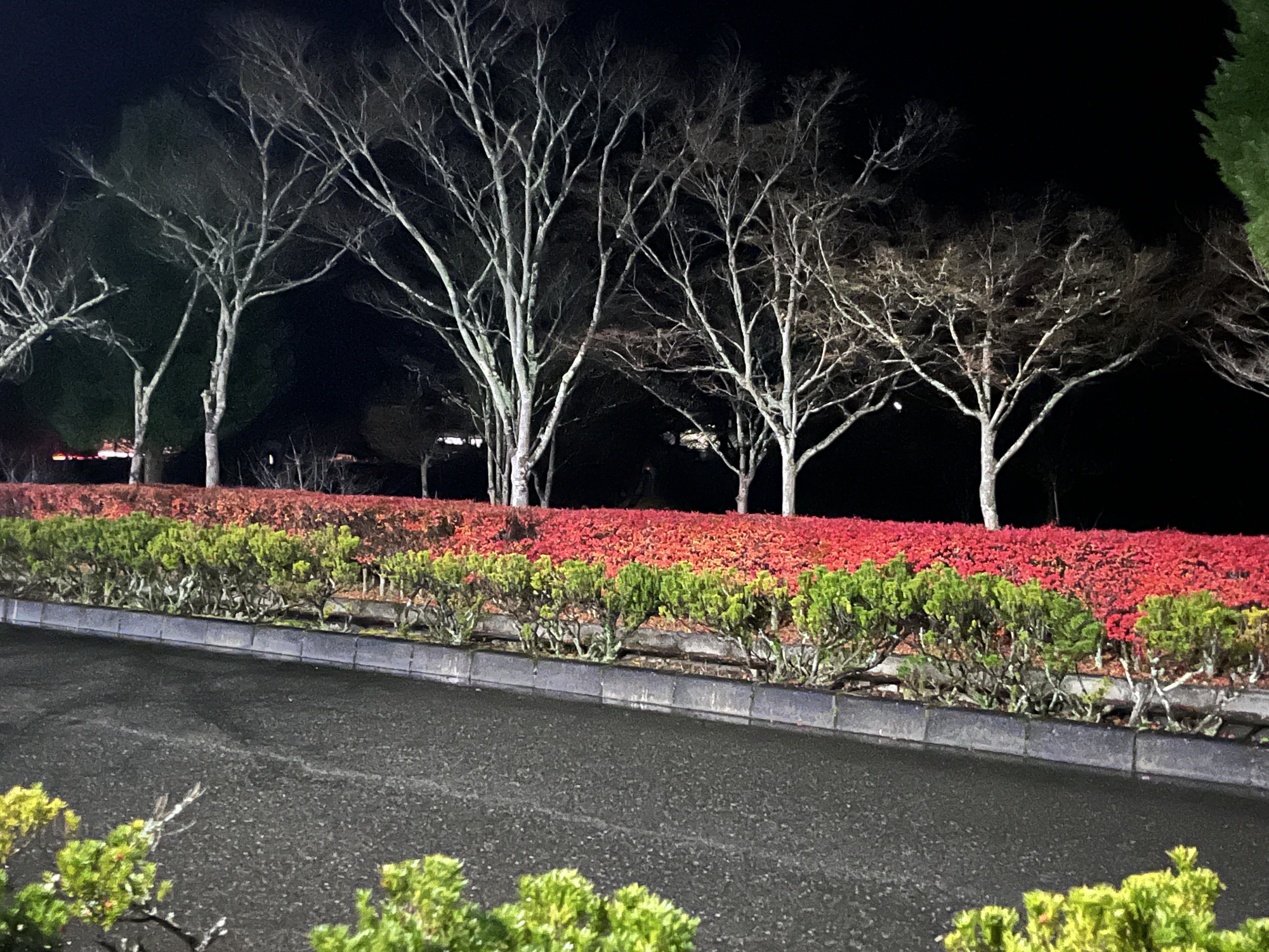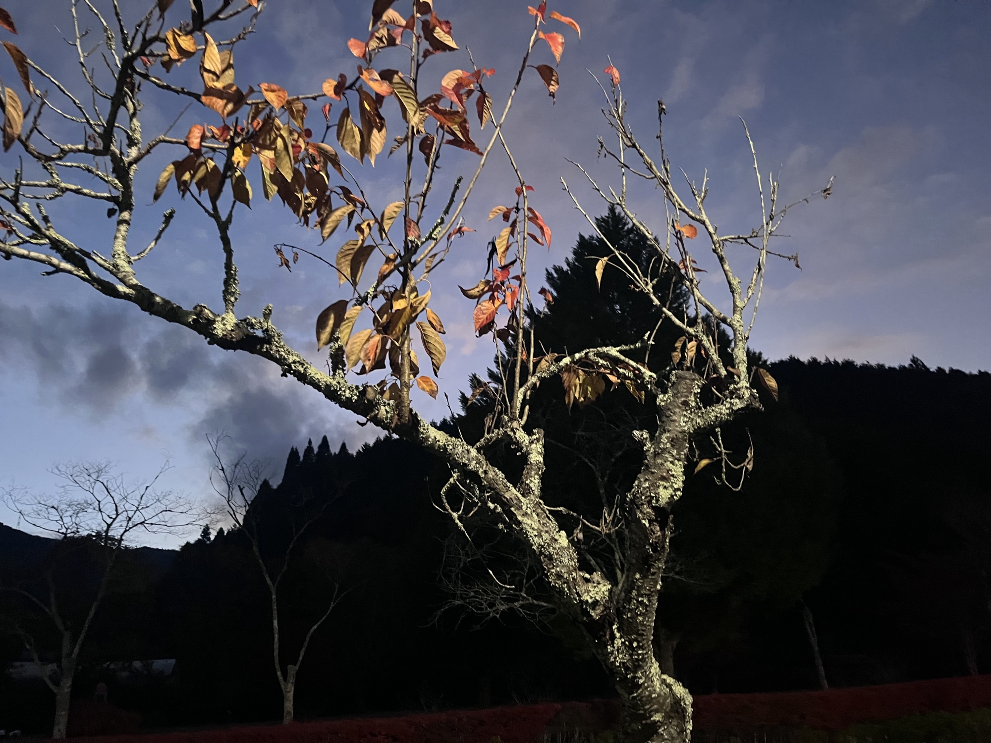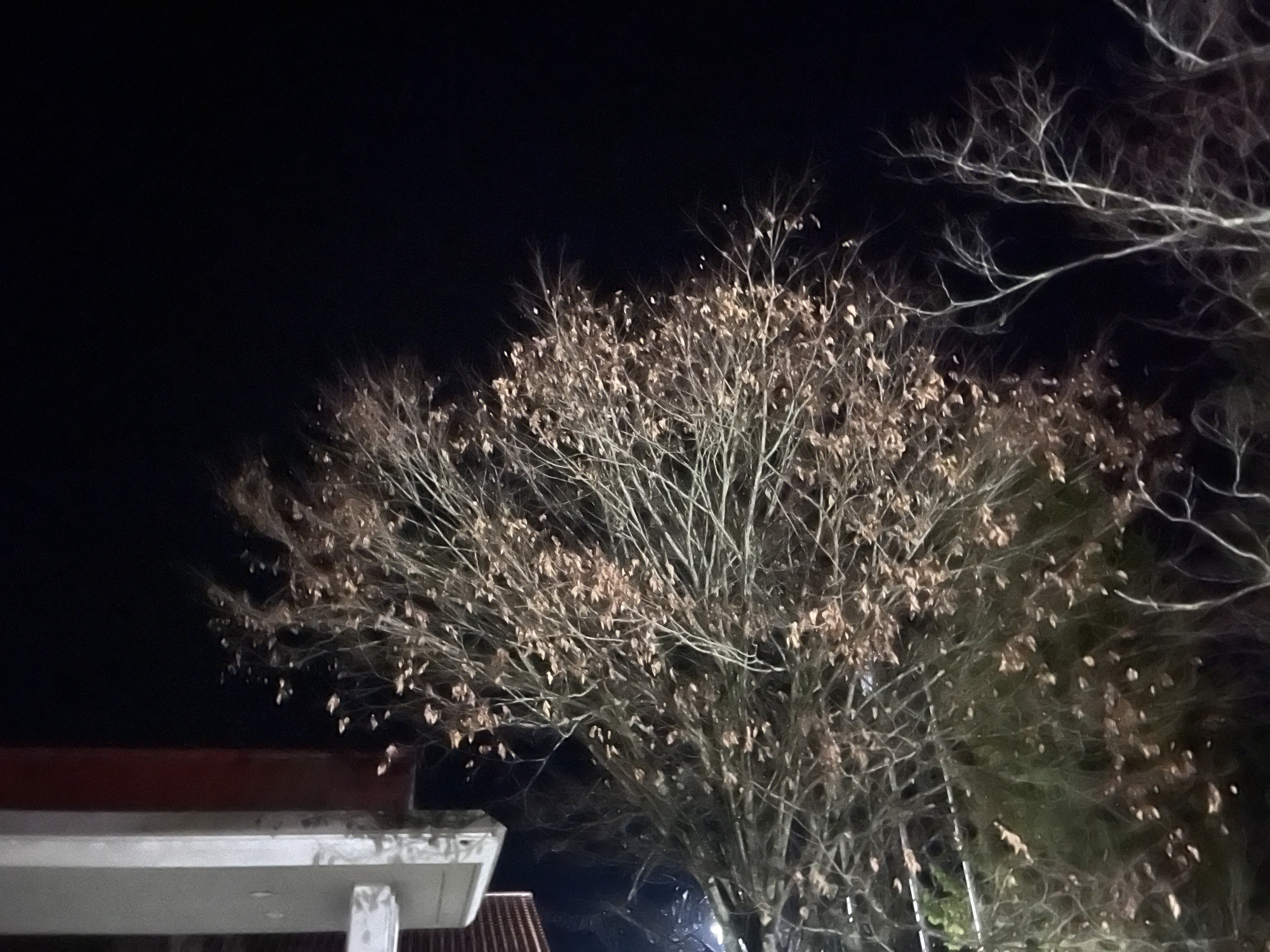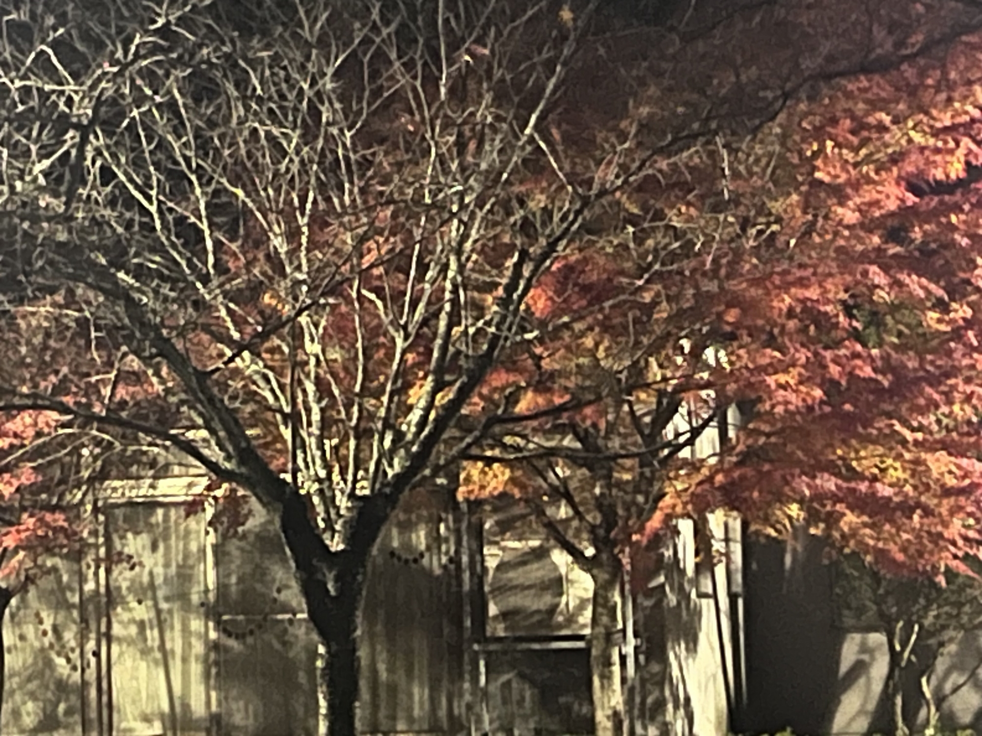 夜の紅葉もさびしくなってきて、落葉も増えています.
