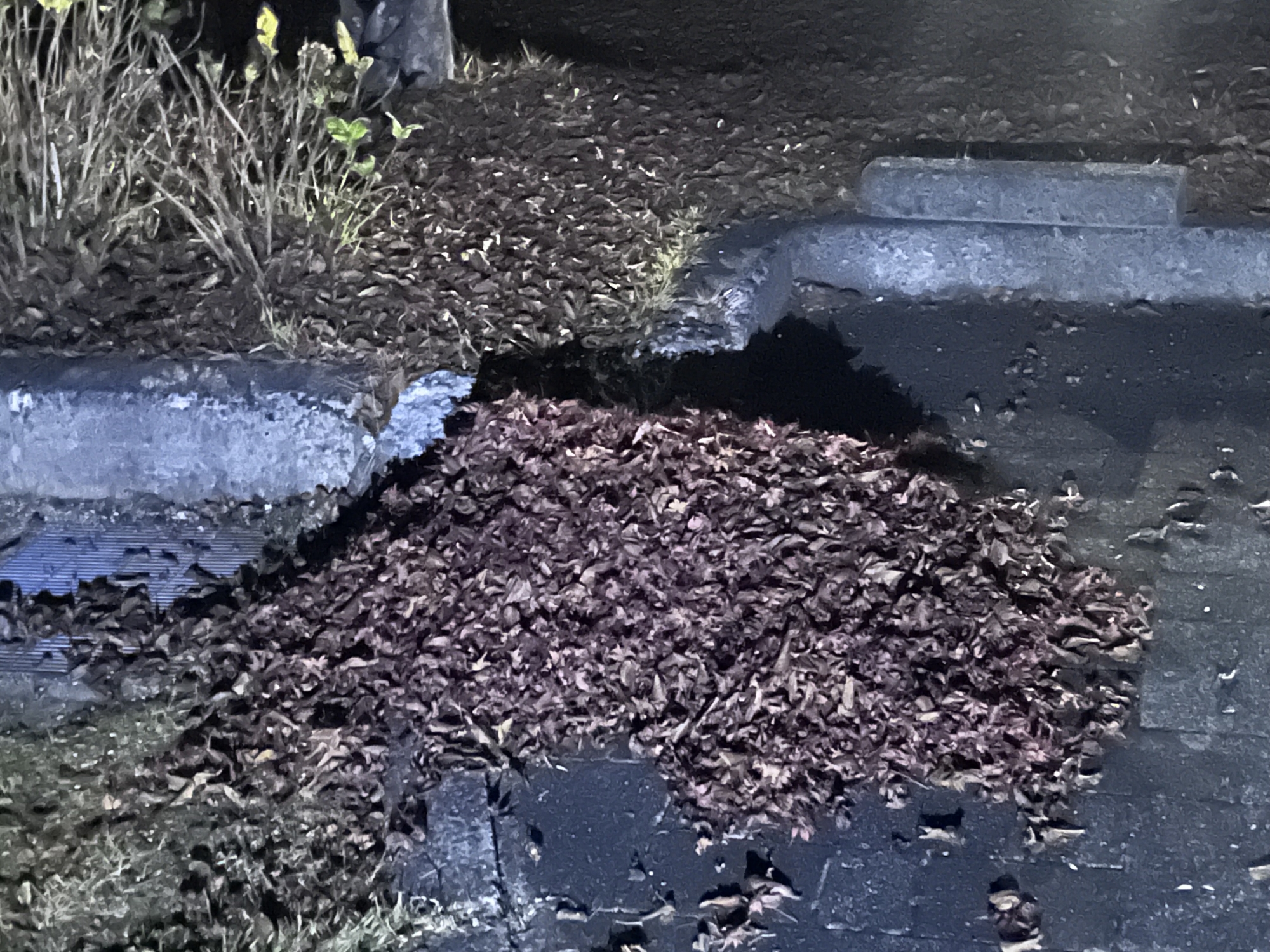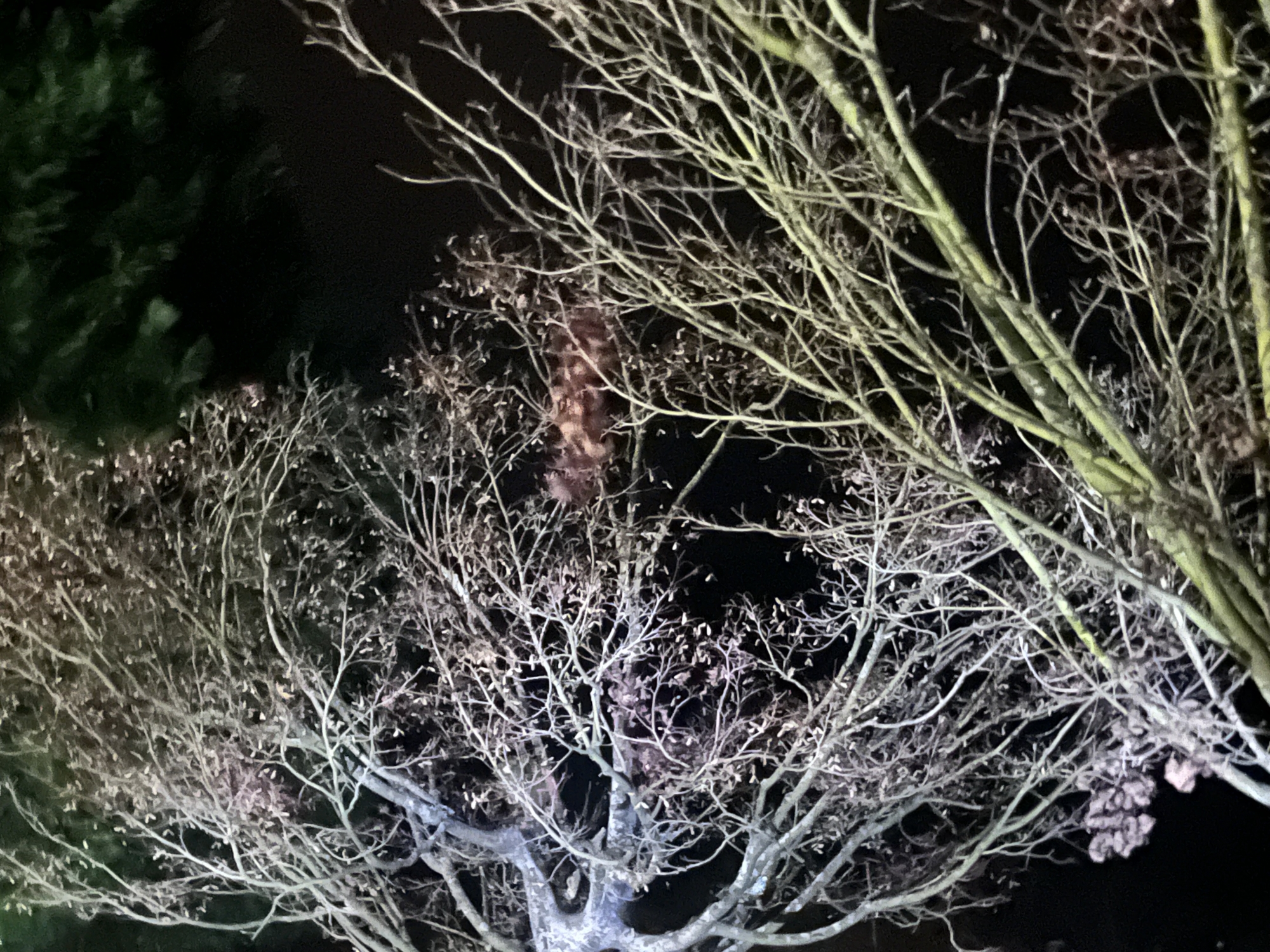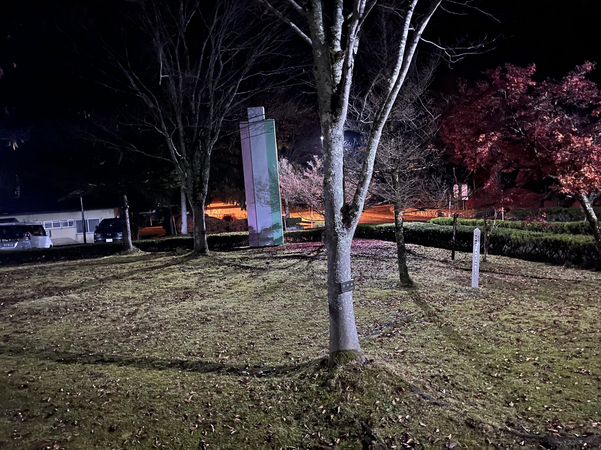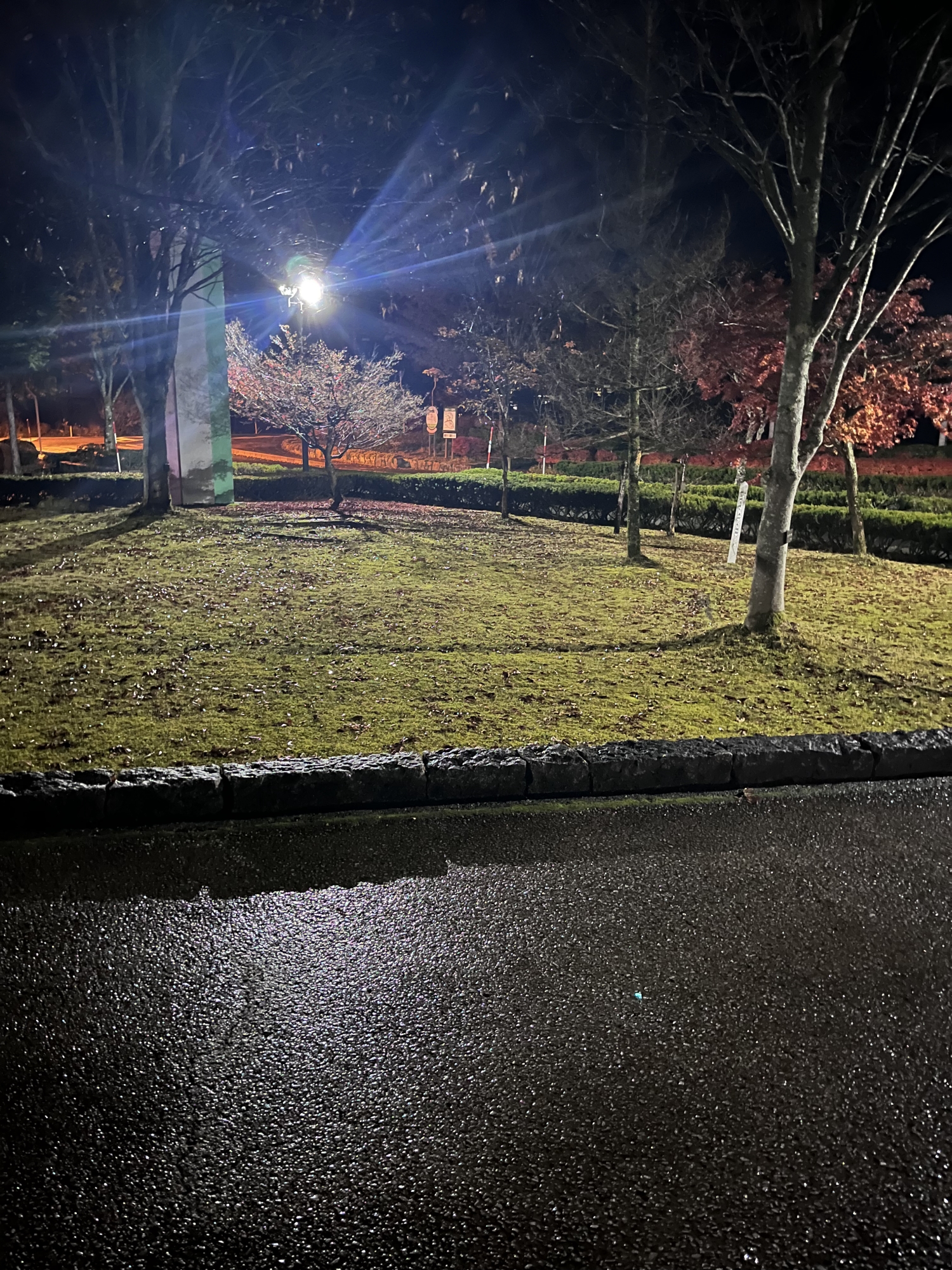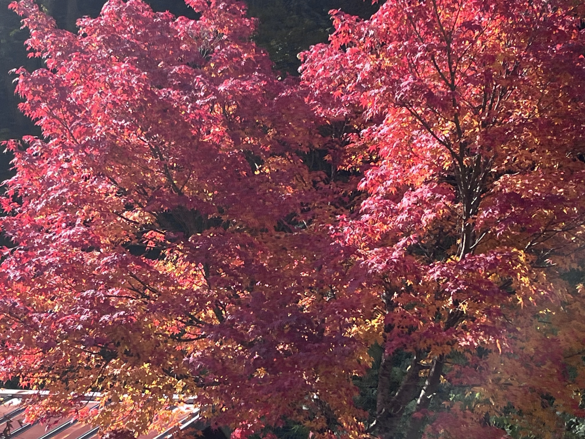 夜の紅葉もさびしくなってきて、落葉も増えています.