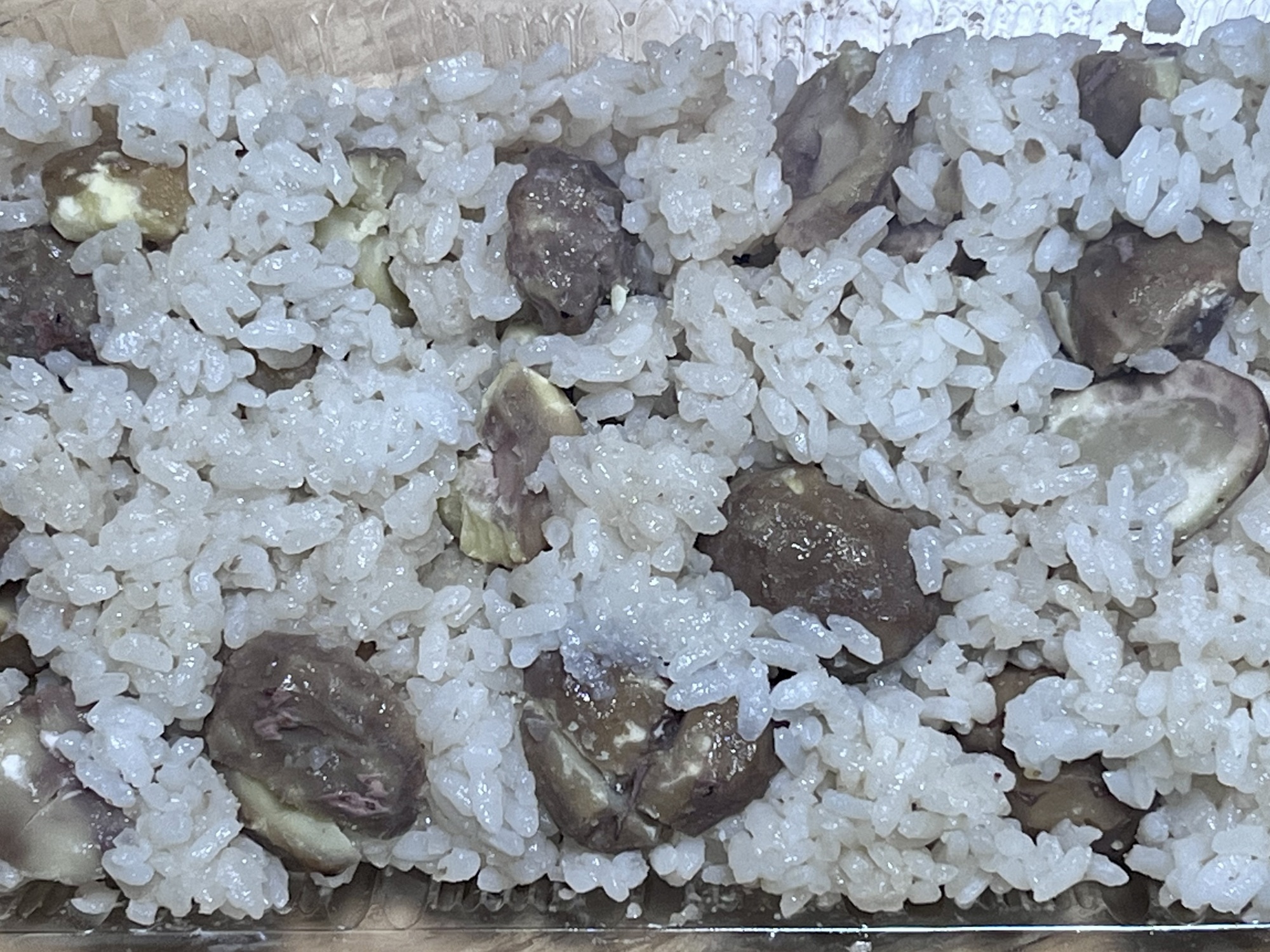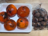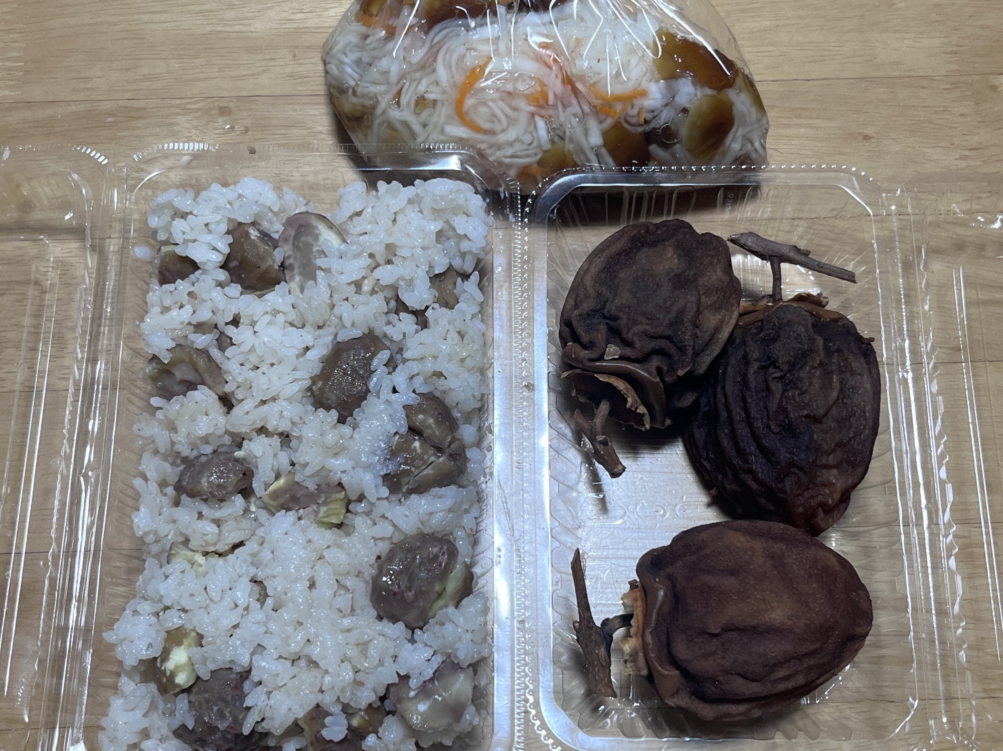 なんと、Oさんからの栗ご飯と干し柿とキノコと大根の酢の物.