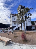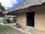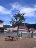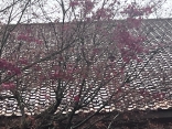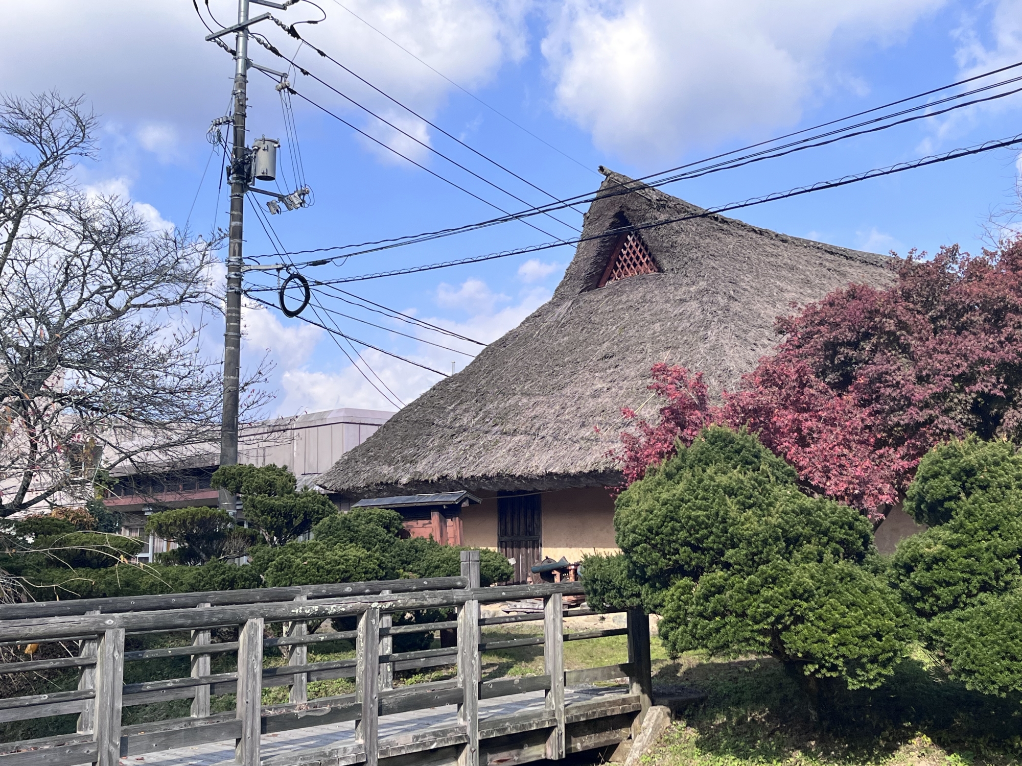 昼……往診帰りで……歴史民俗資料館と枝垂桜の枯葉.