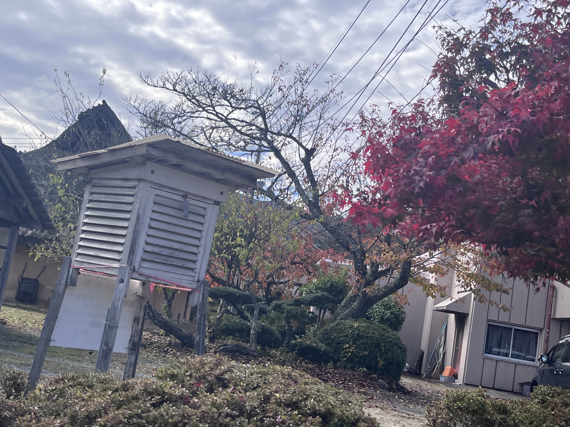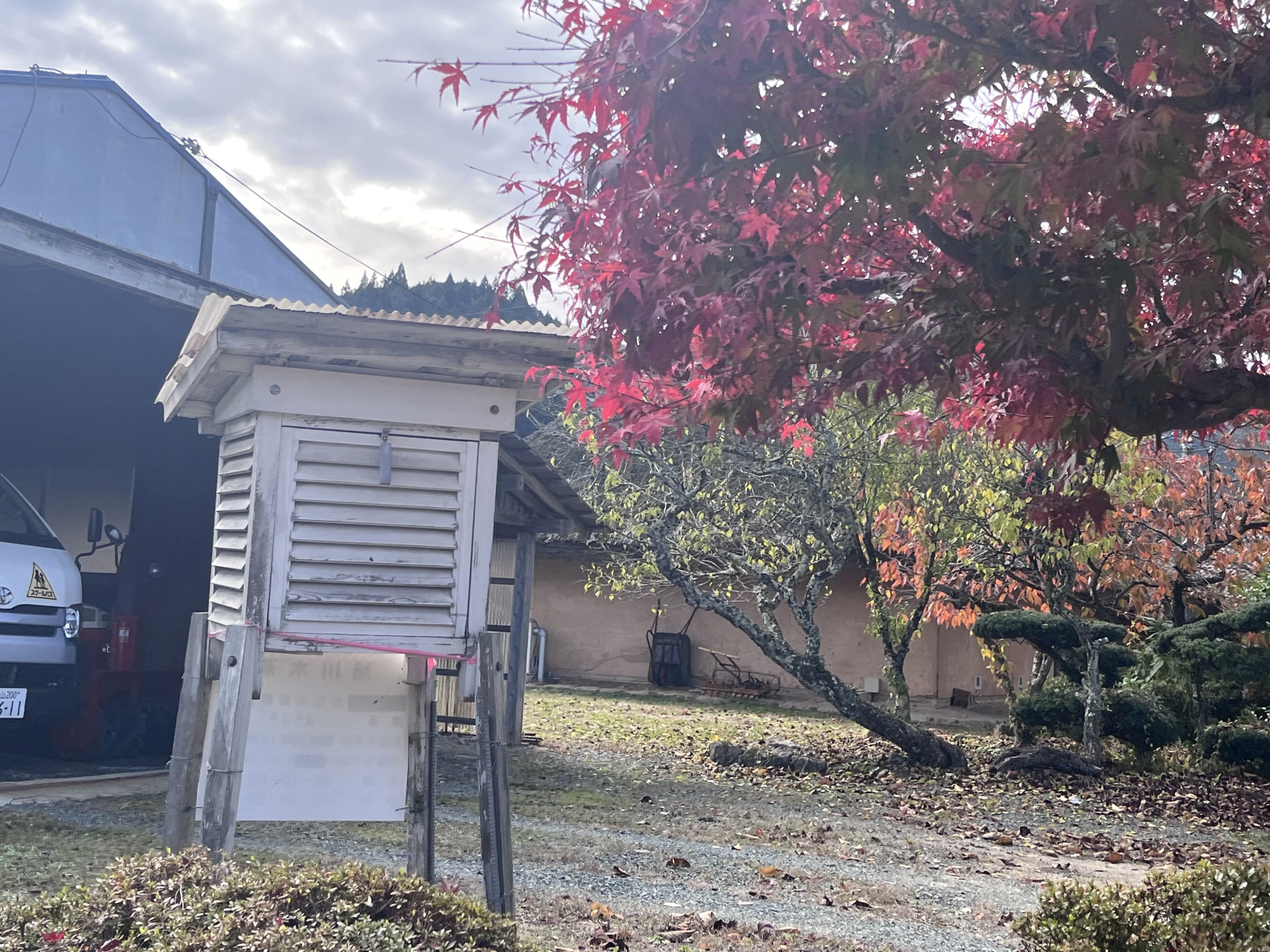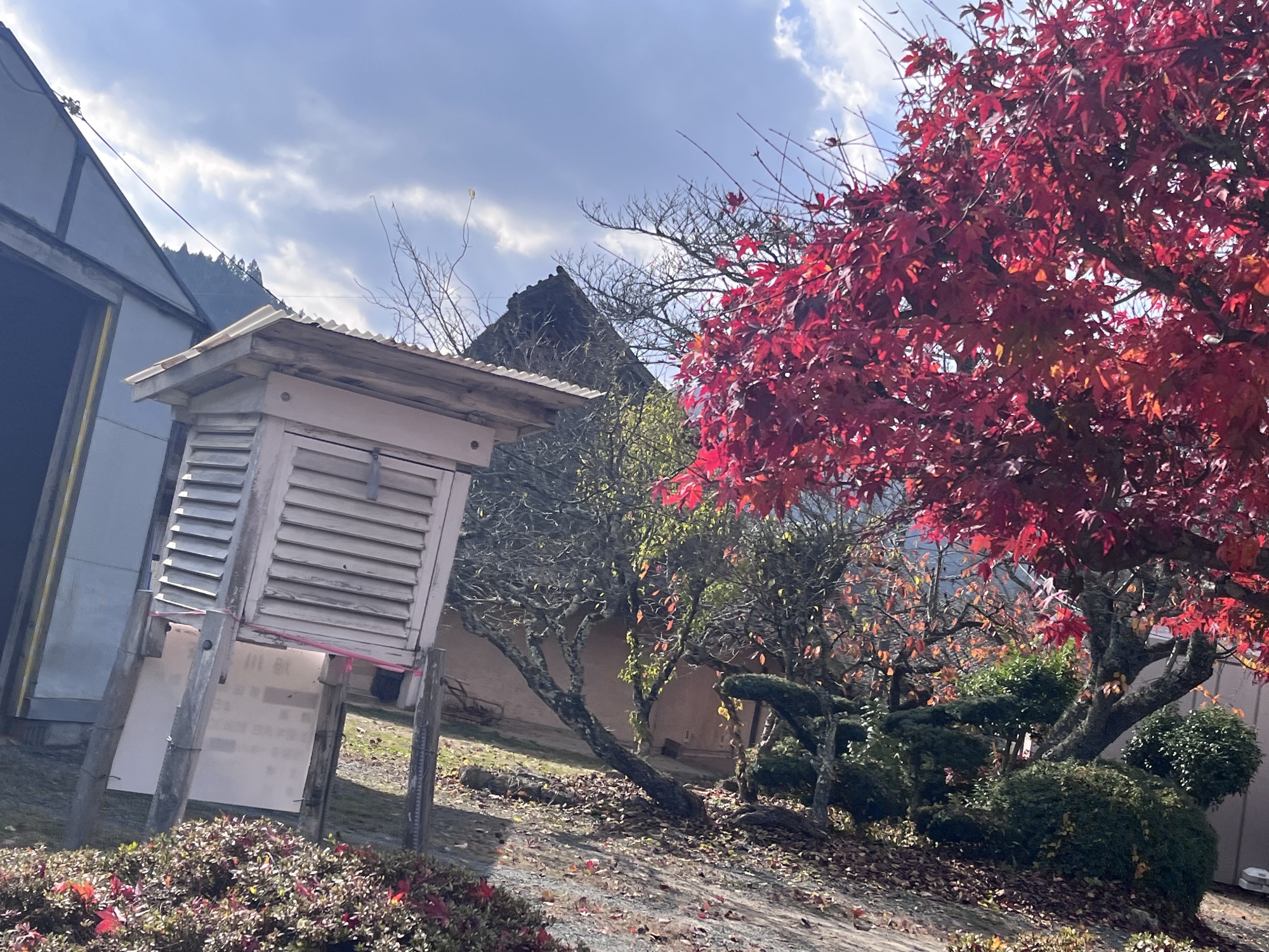 おお、公民館の横は、まだ、きれい……百葉箱も.