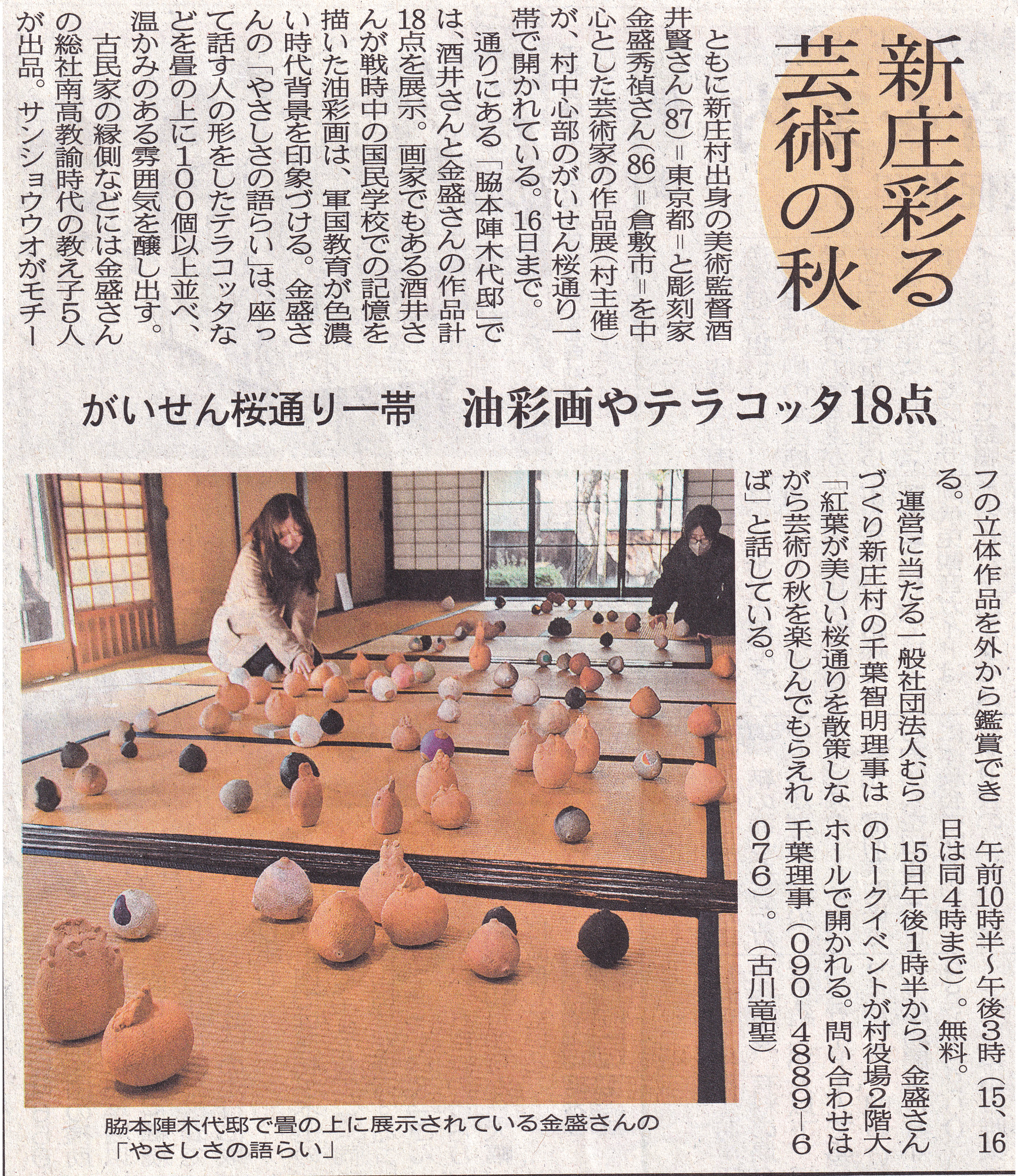 朝の新聞で……村の秋「金盛秀禎」先生と若い仲間たちの展示あり……明日トークショーの後、観に行こう!!