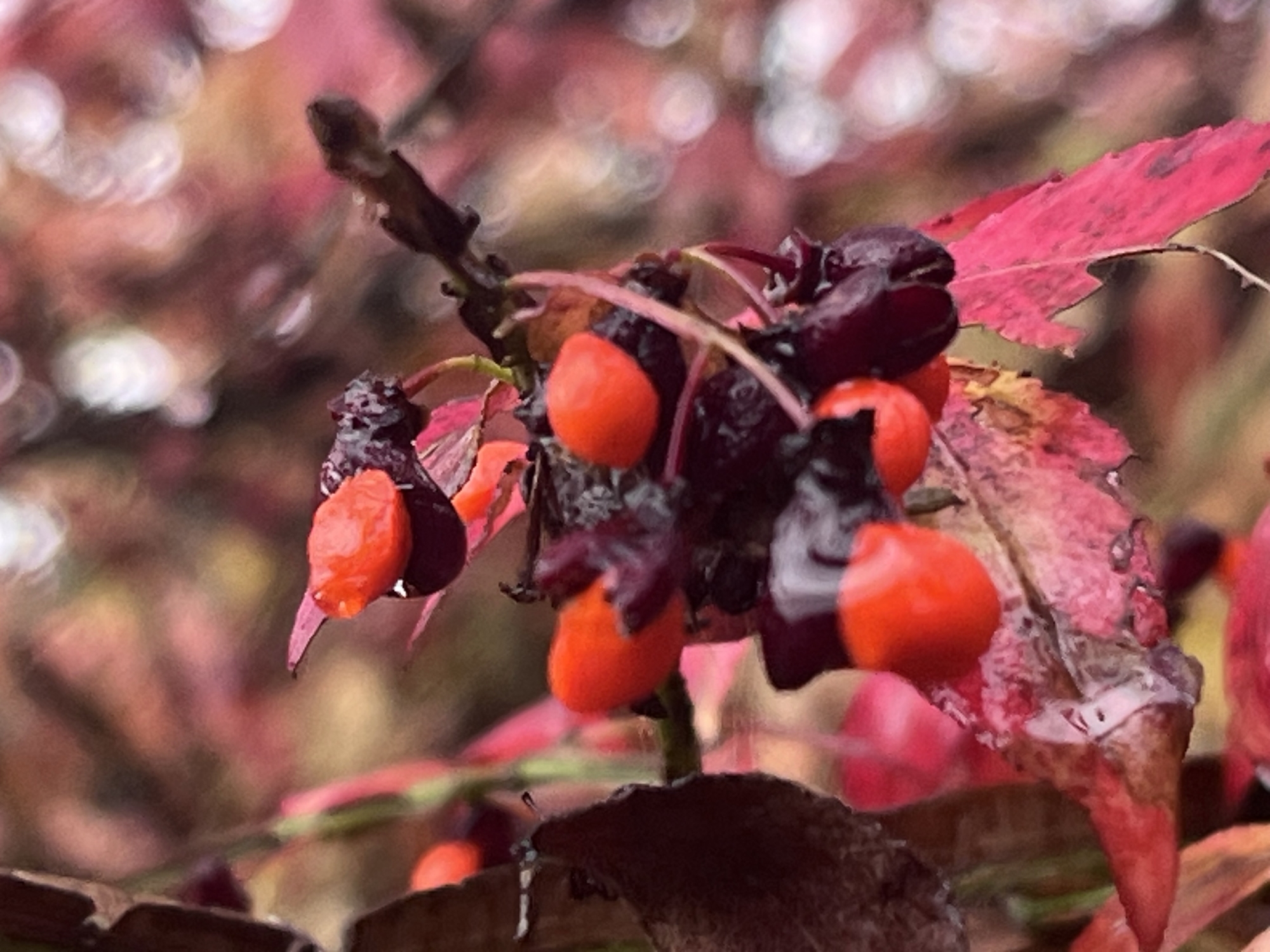 さて、昼は……触れ合い公園で残った紅葉にアプローチ.