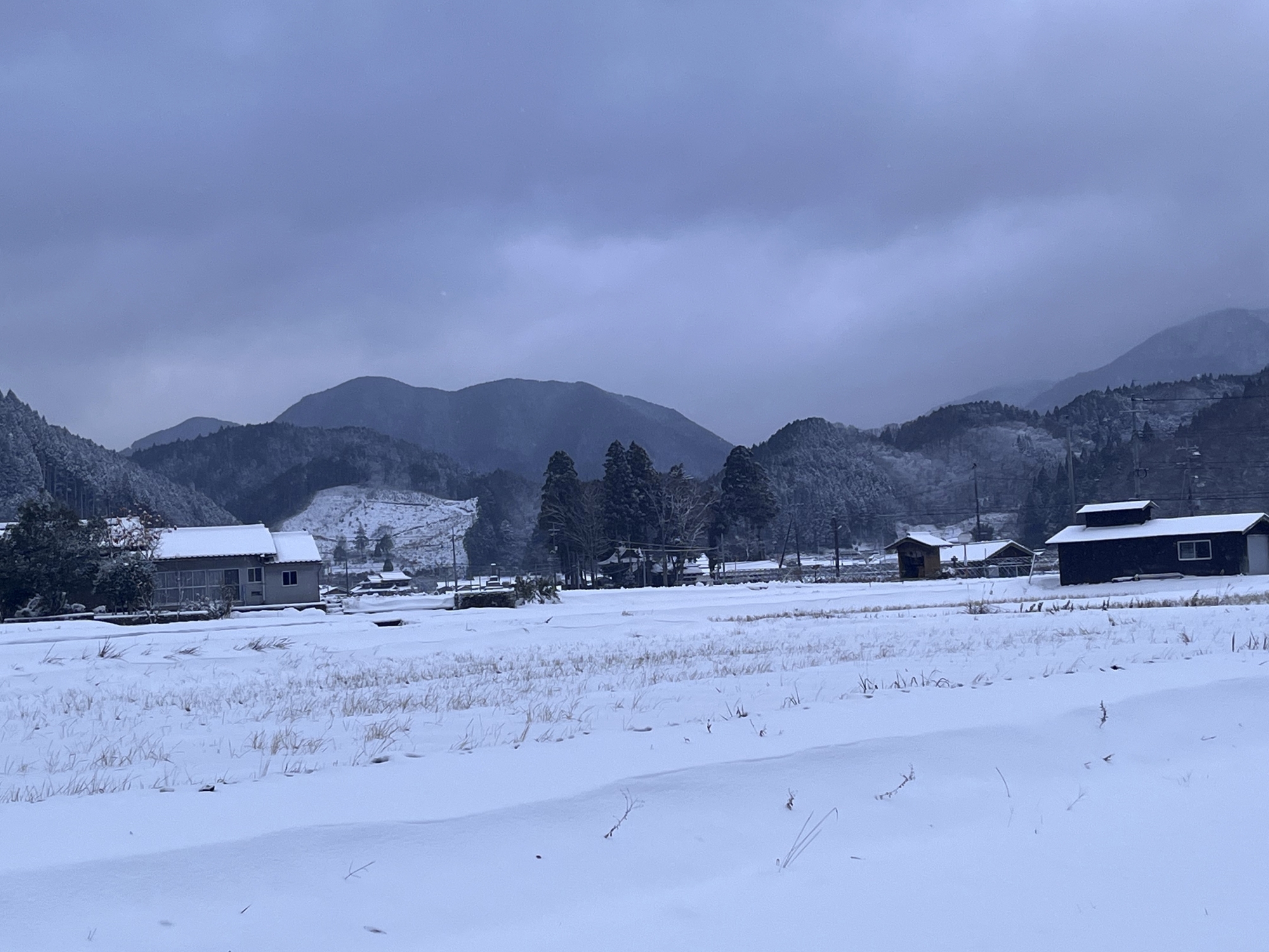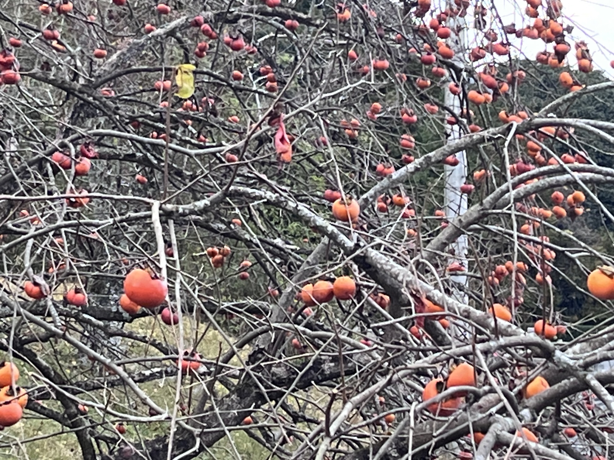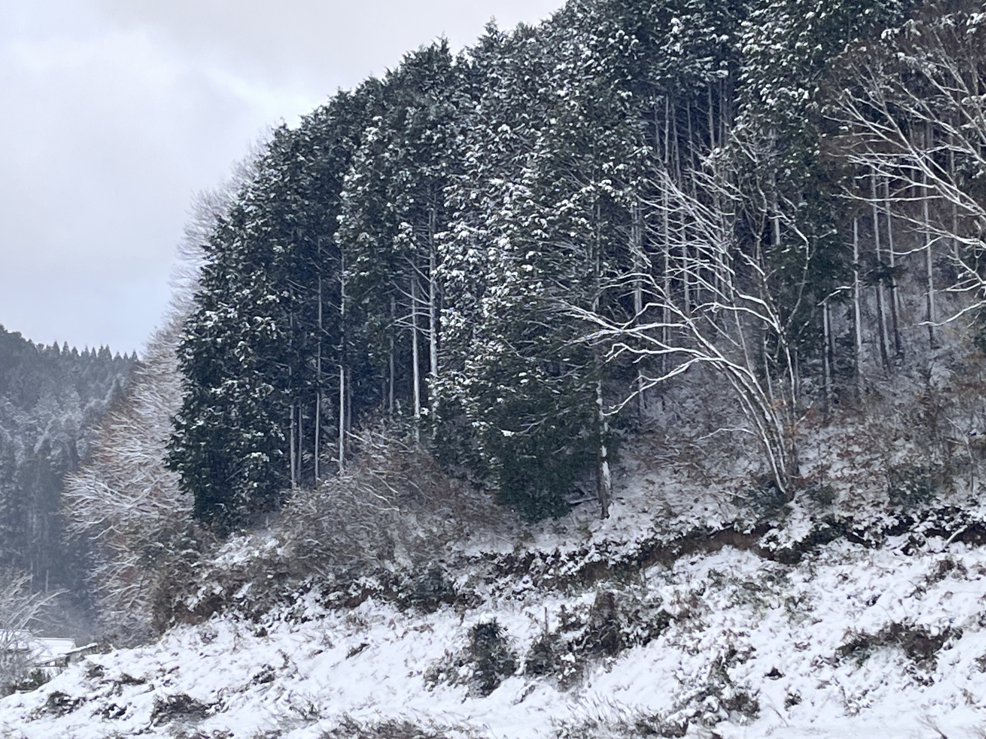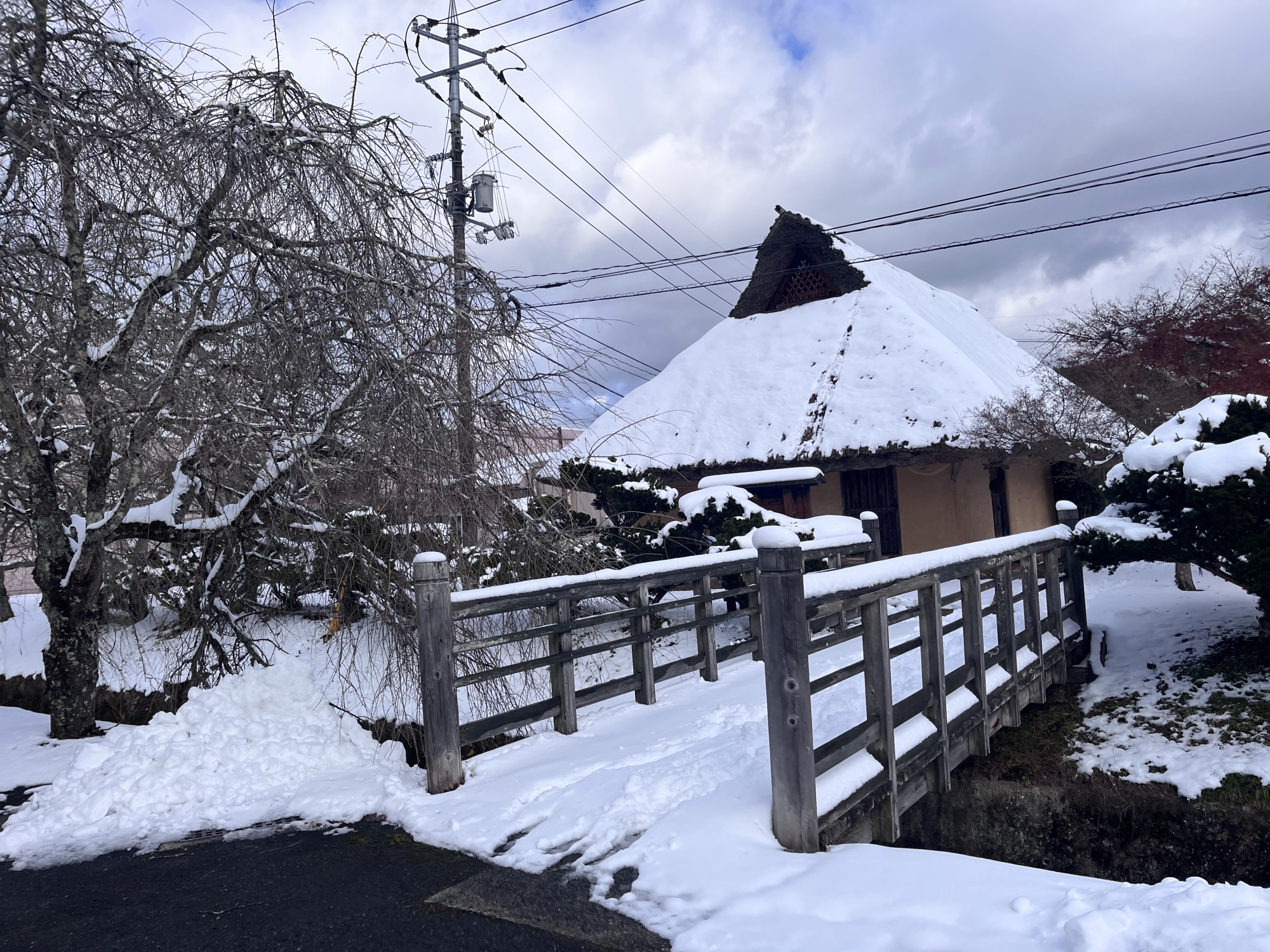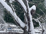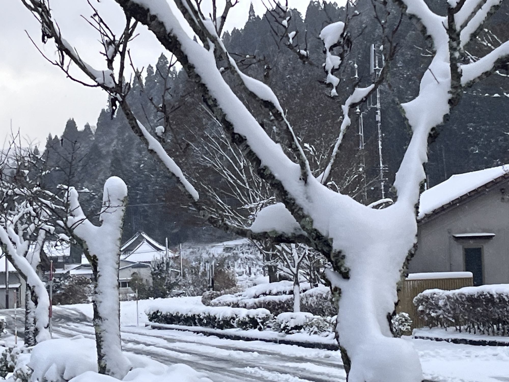 さて、昼は郵便局へ……名残りの紅葉にも雪が積もっていました.