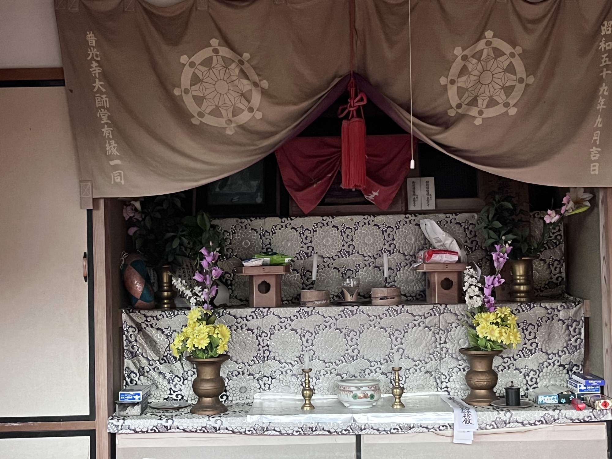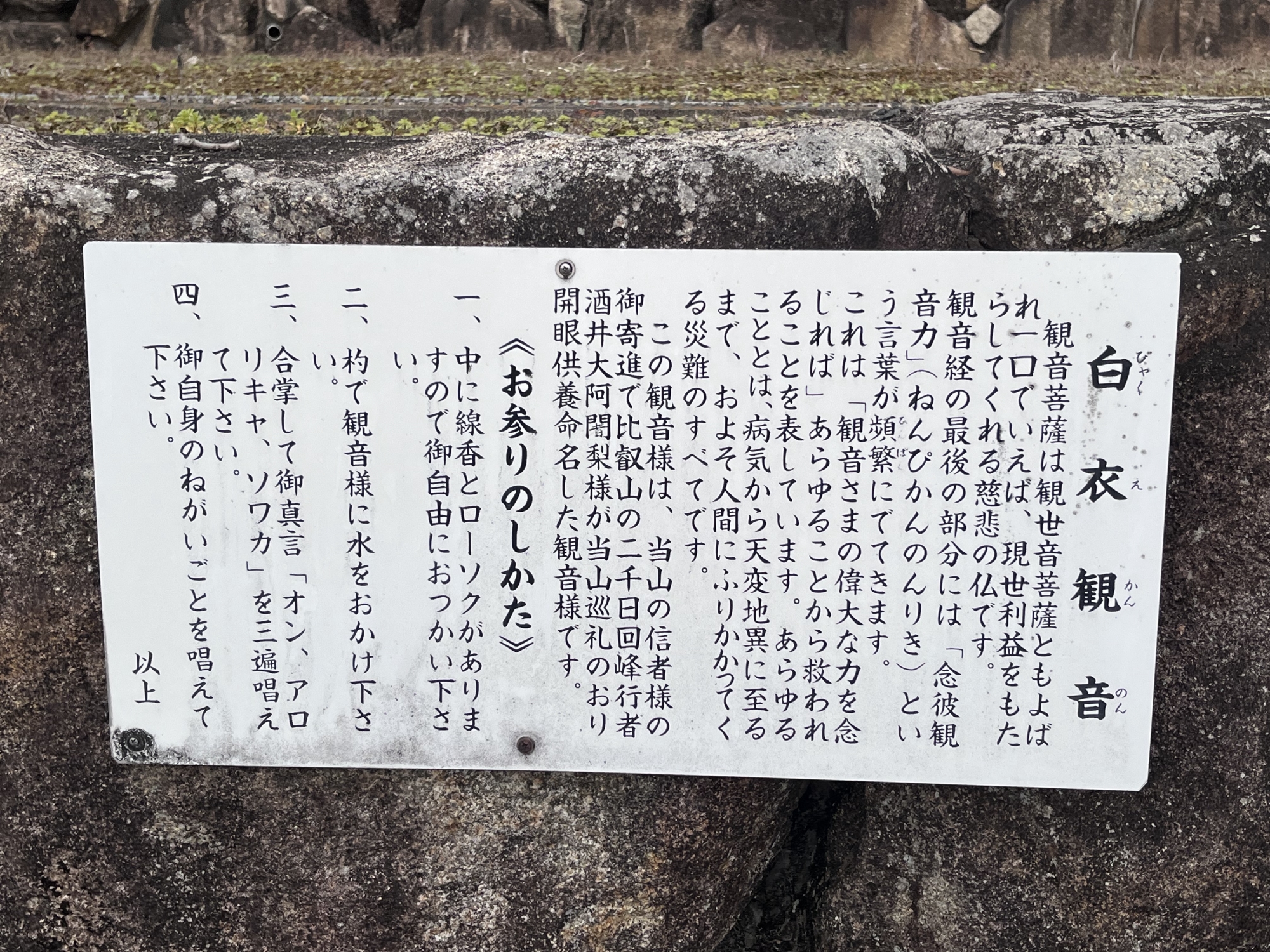 【このとき欅の古木に白雲が覆い、一条の光明が放つを見た。行基菩薩は大いに歓喜し、これは我が有縁の地であると悟り、彼の古木をもって観世音菩薩像を刻み、一寺を建立して白雲山普光寺と号したのが創まりという。】