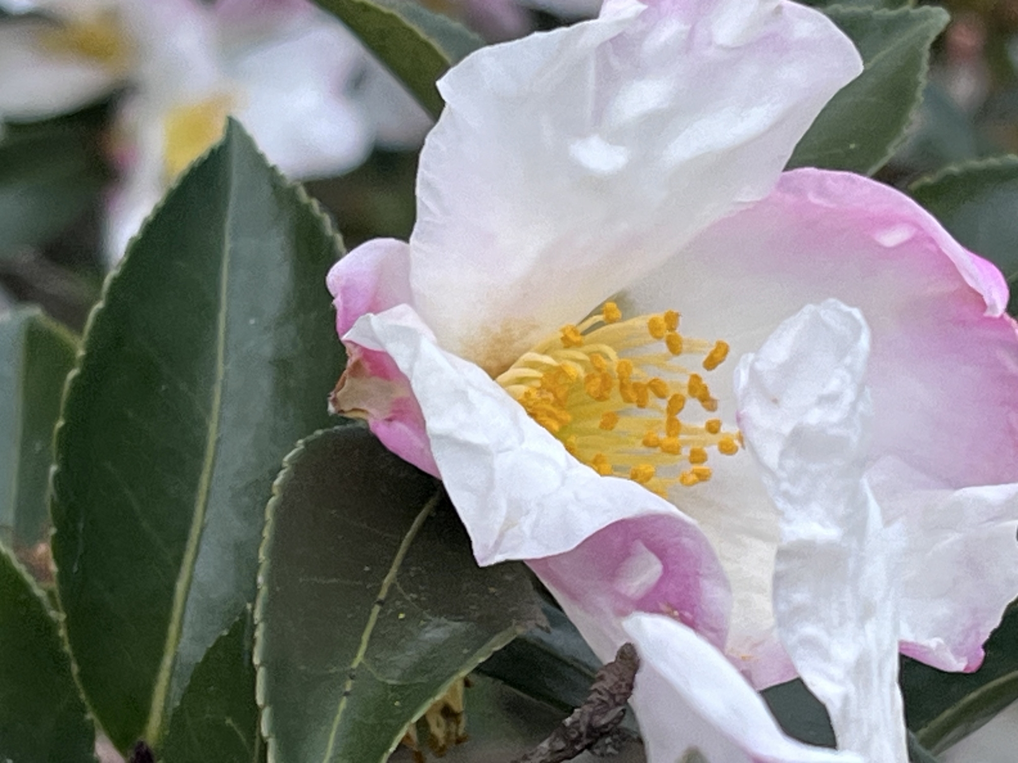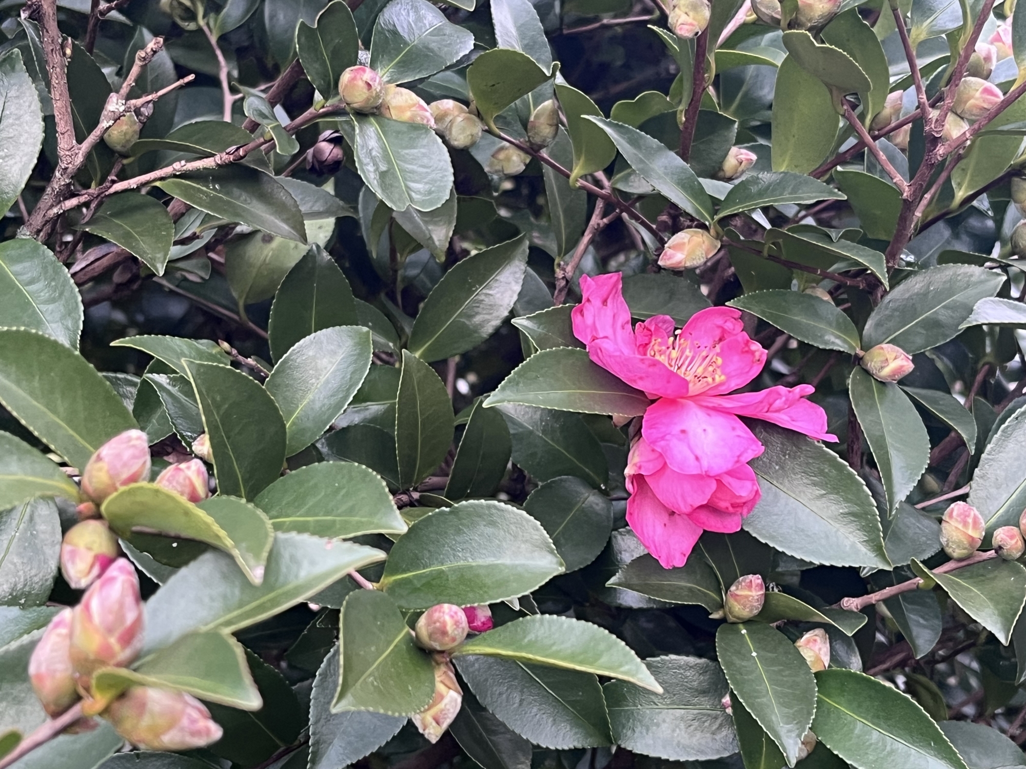 さて、車の方に戻ると……山茶花、山茶花咲いた道……です、.