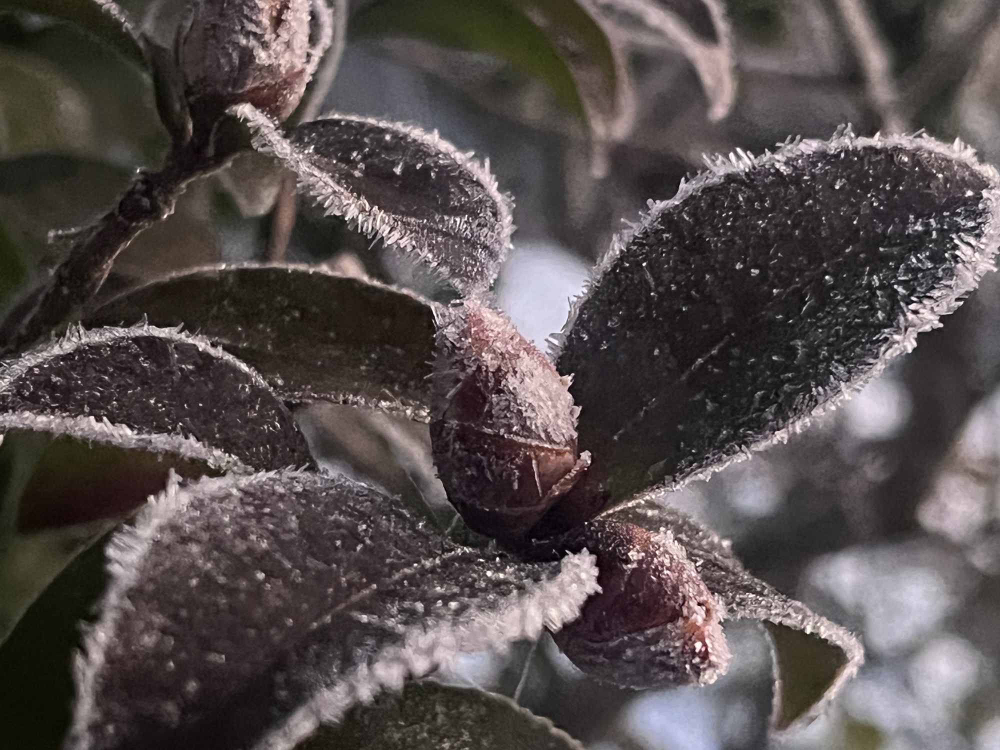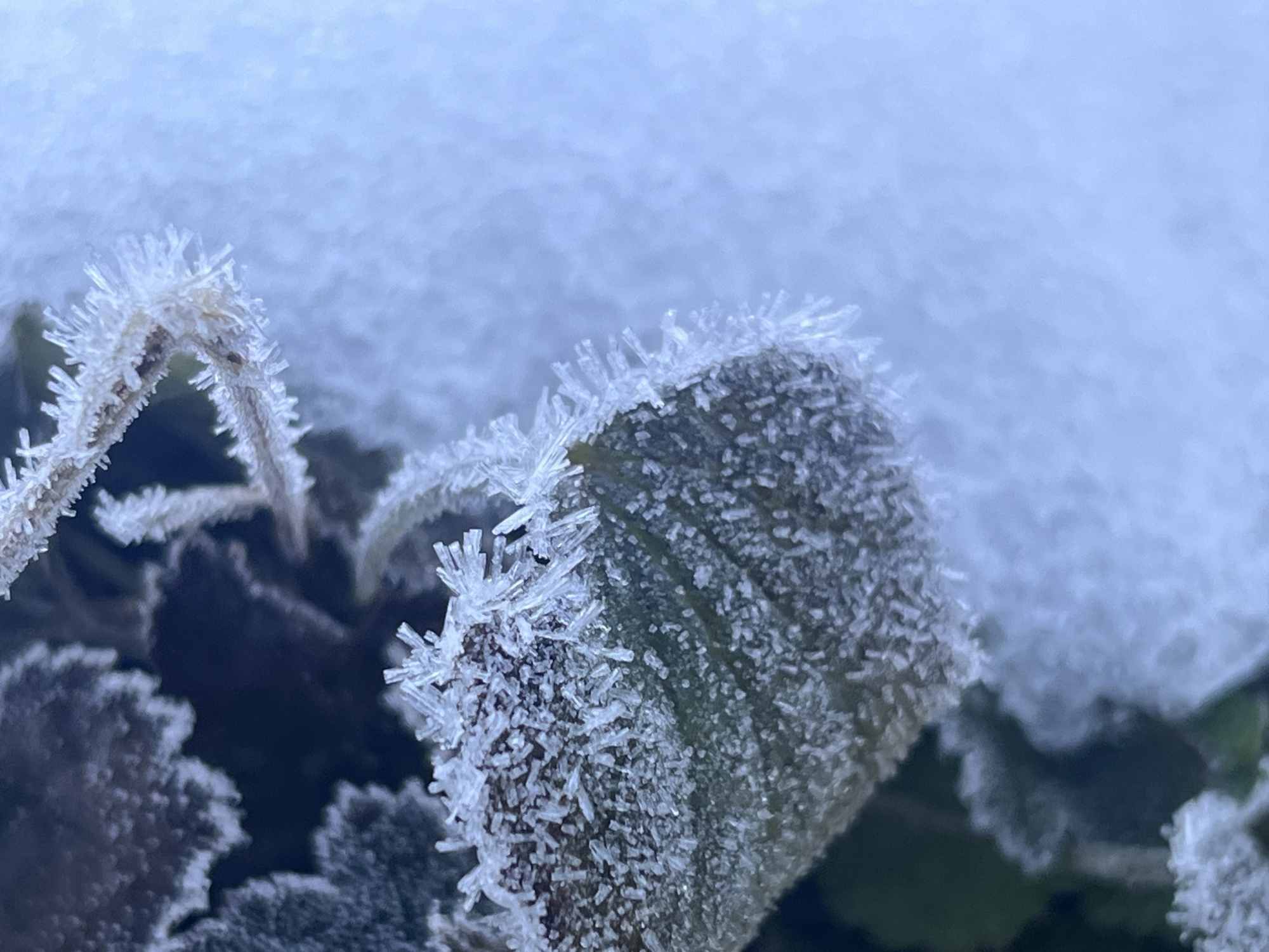 夜明け前……なんだか冷えて、霜.