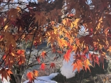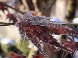 散り忘れている紅葉にも霜.