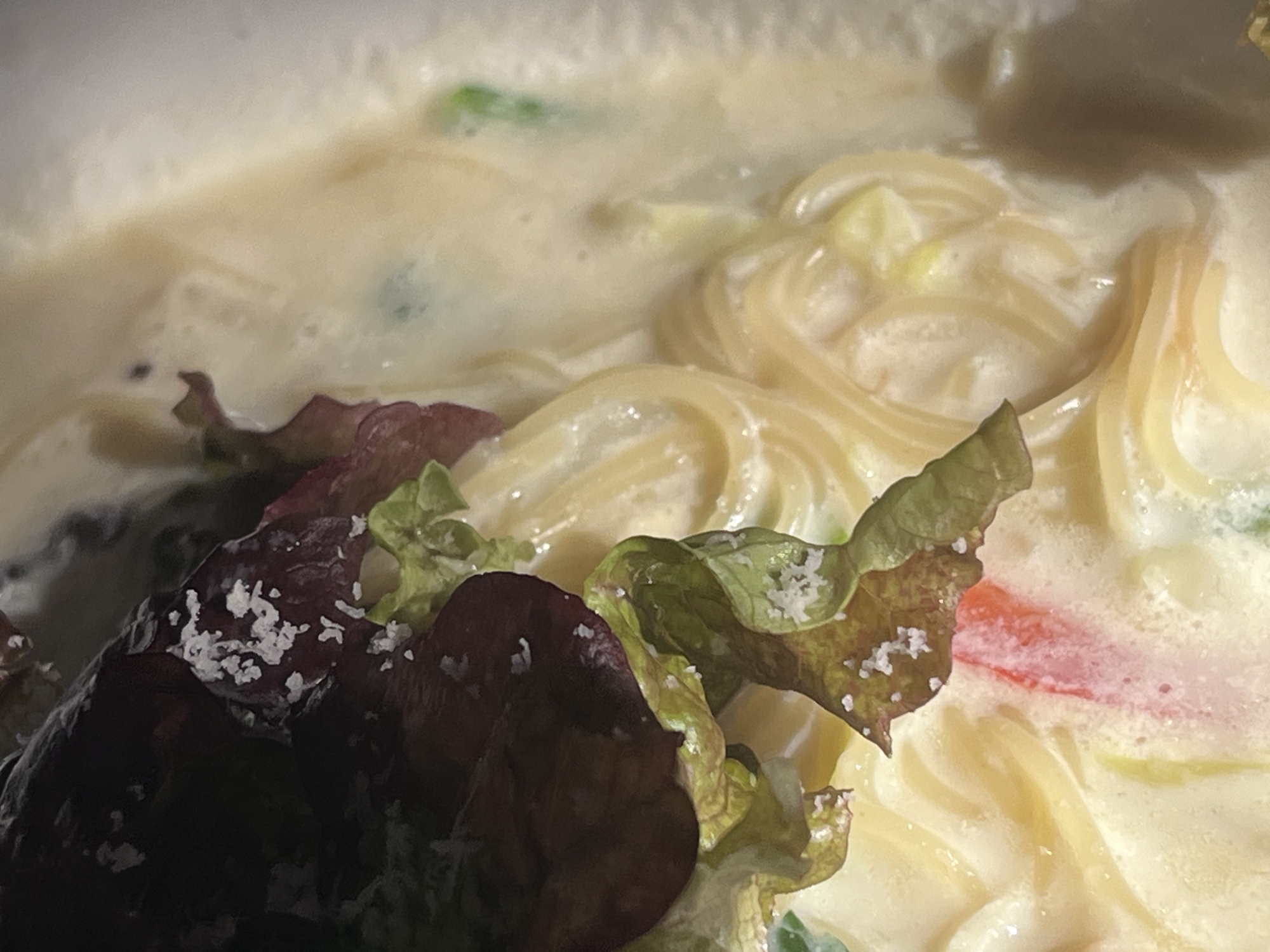 今日は、豆乳スープパスタ……なんだか、お腹いっぱい.