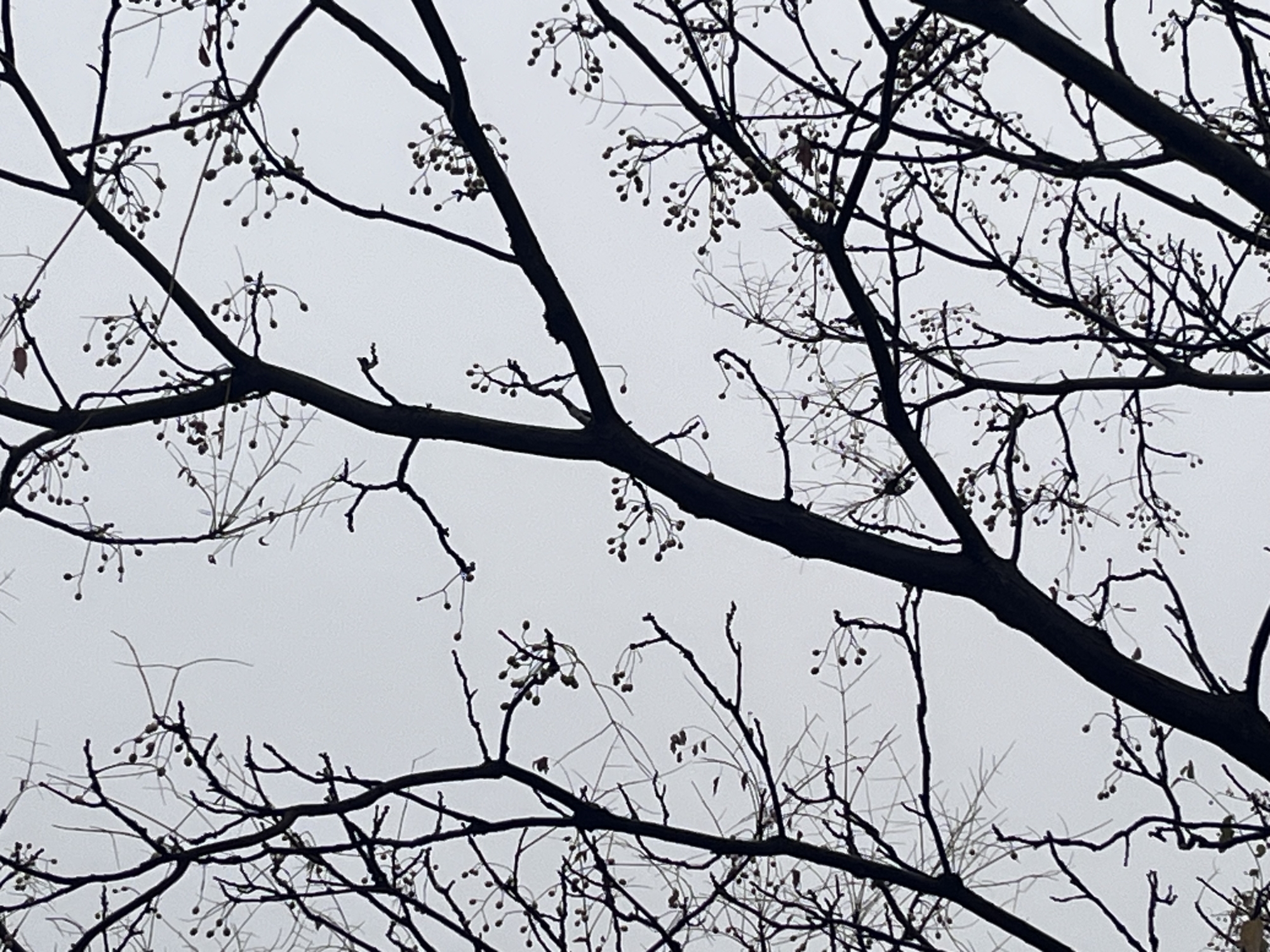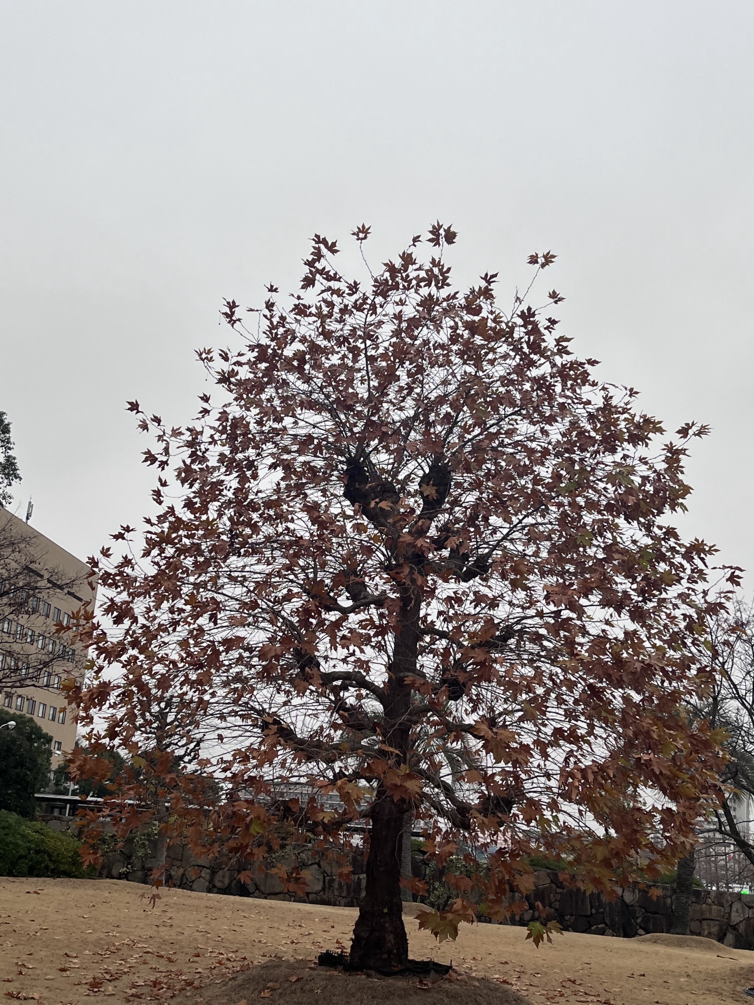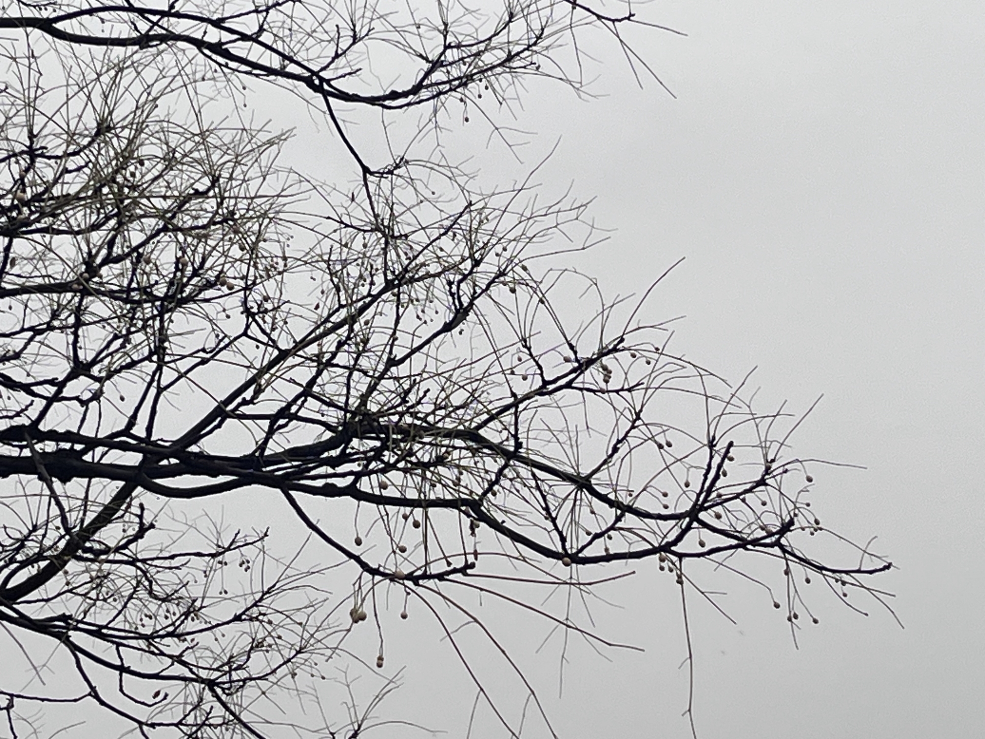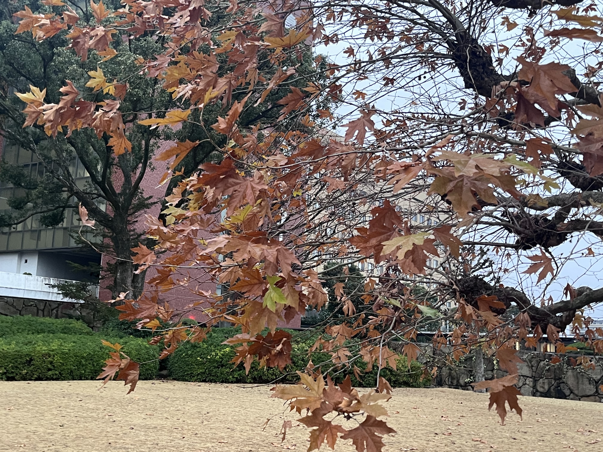 ヒポクラテスの木(プラタナス)は……東側は実だけ、西は、枯葉だけ.