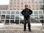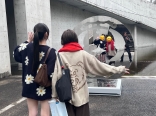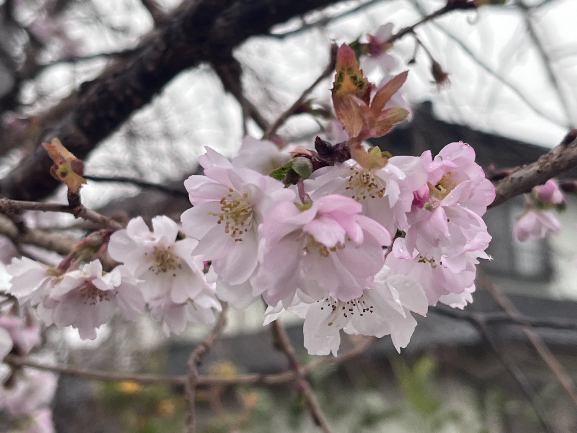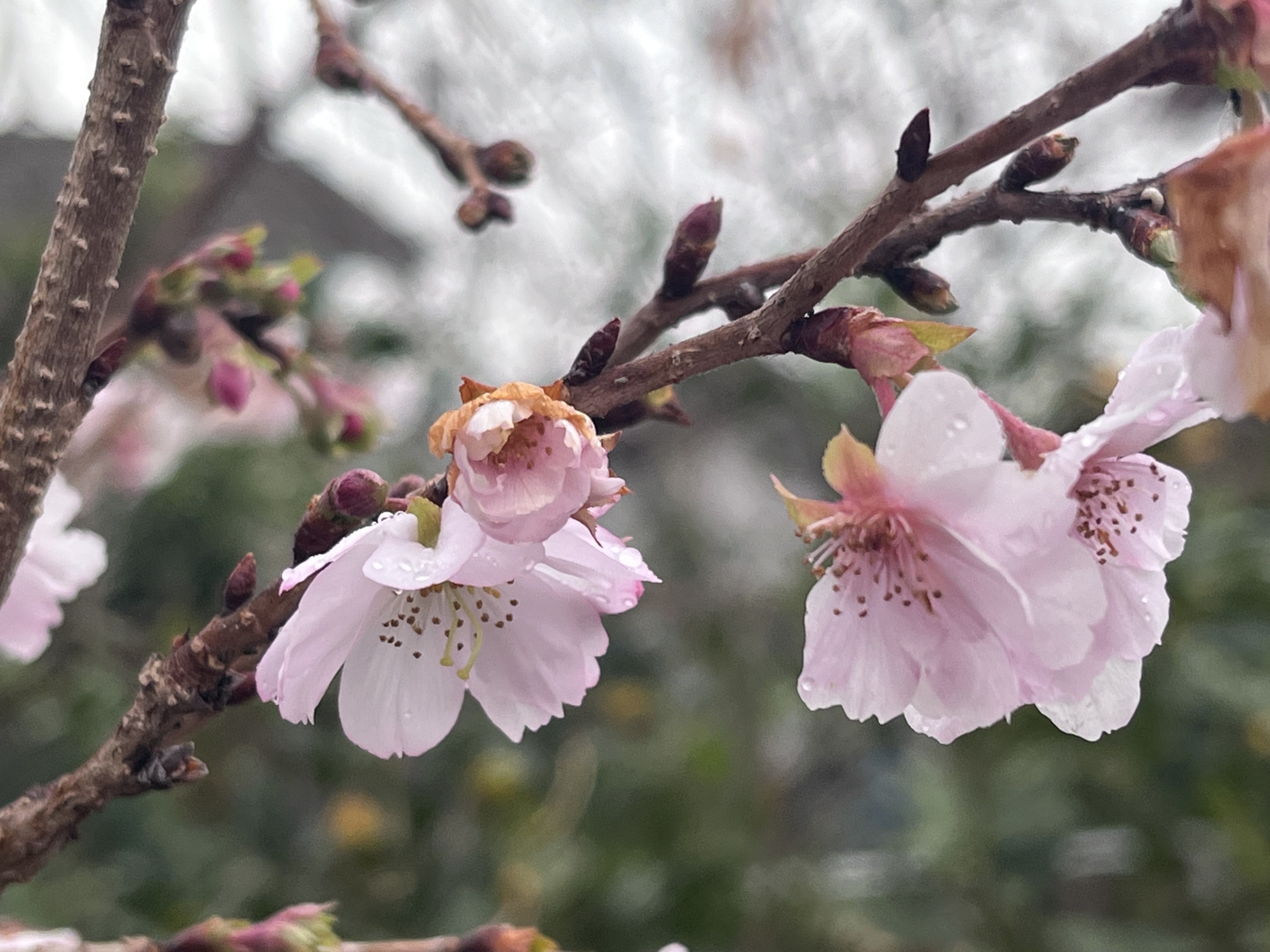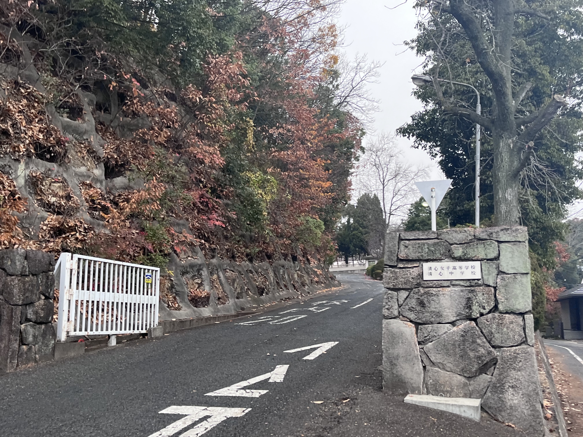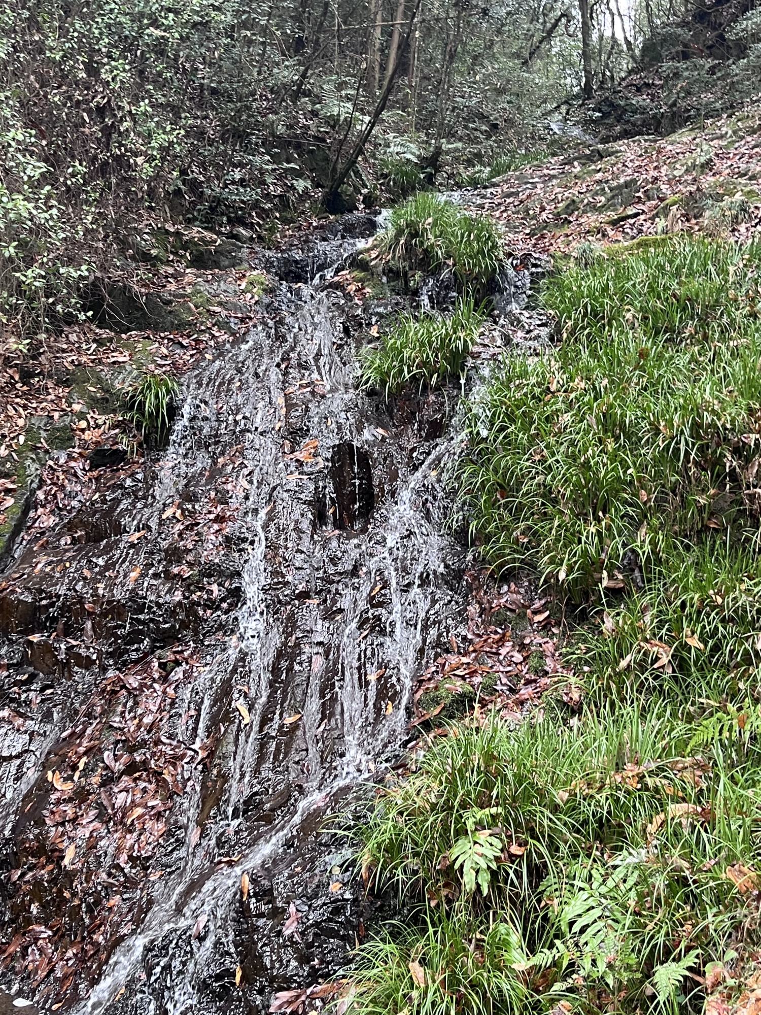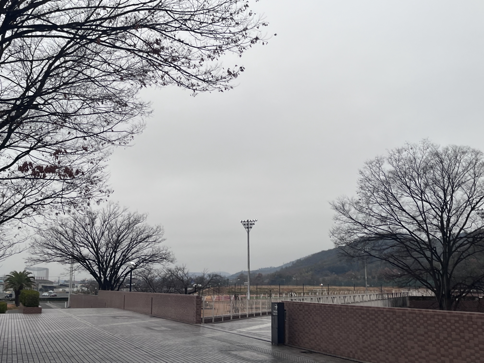 曇り空……小雨空で、タイルも濡れてて、結構、滑る.