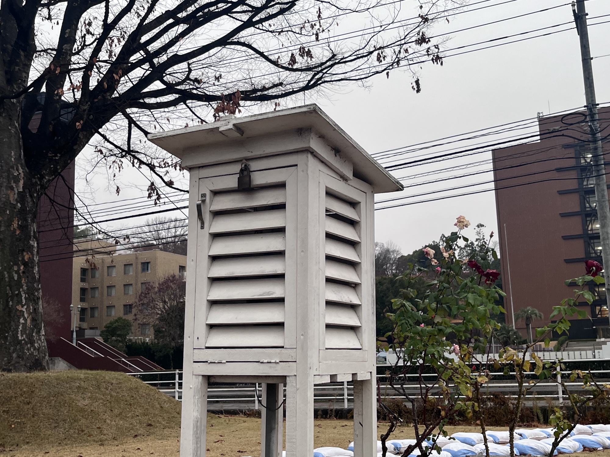 向こうは、大学と病院……痩せぎすな百葉箱.