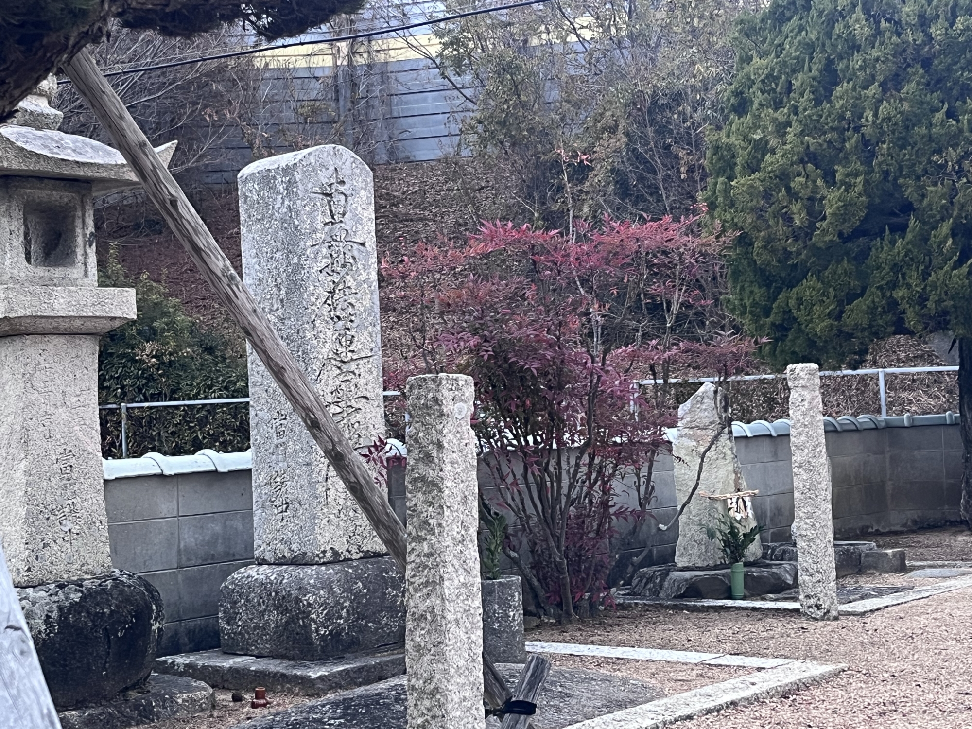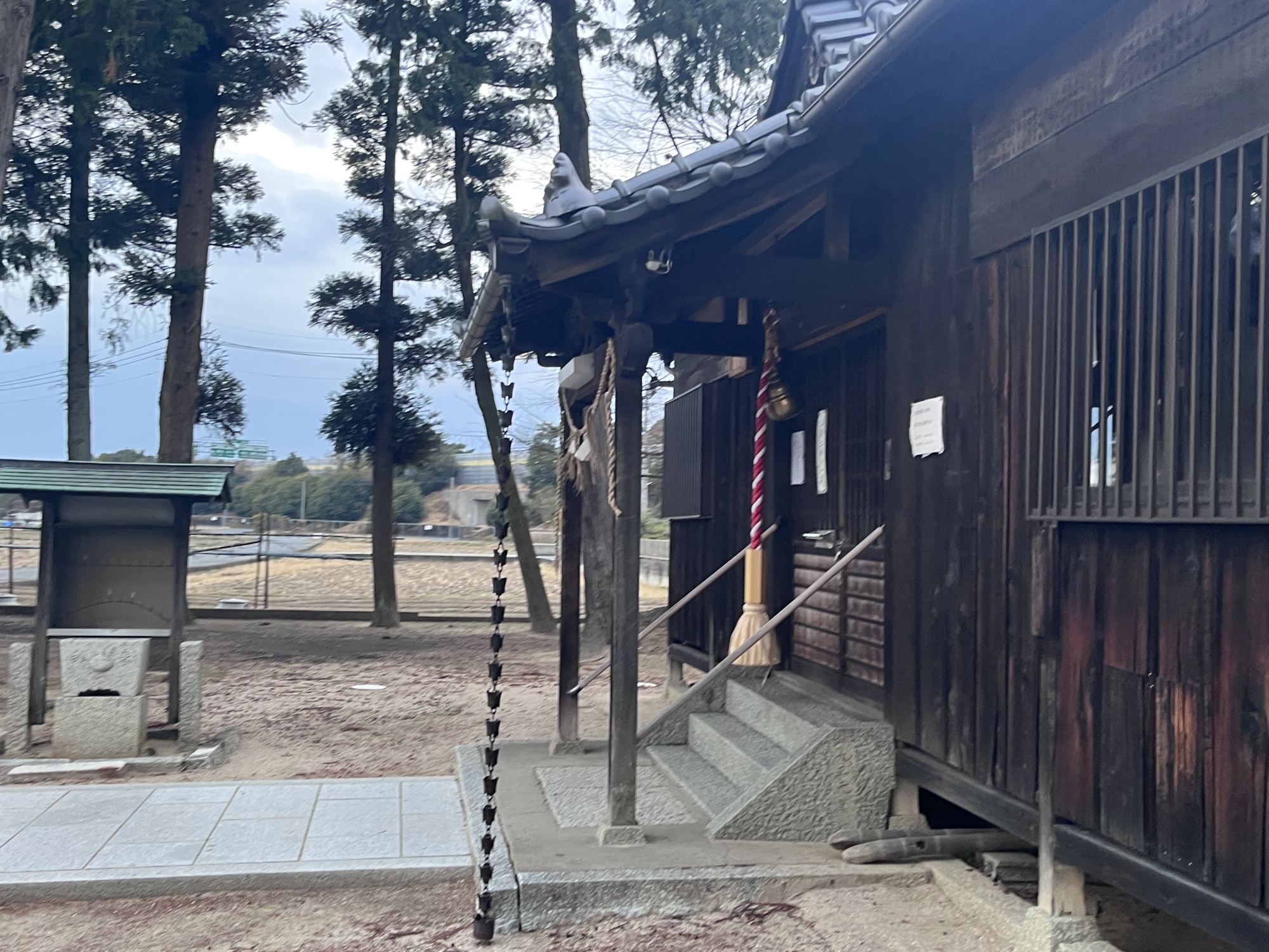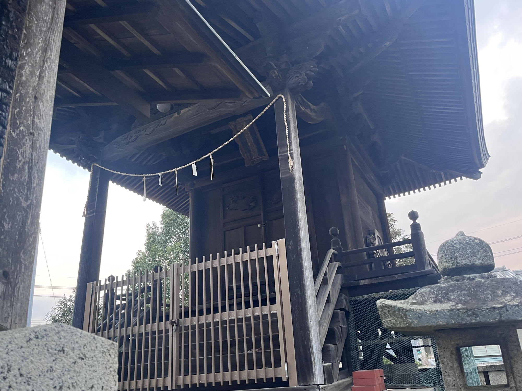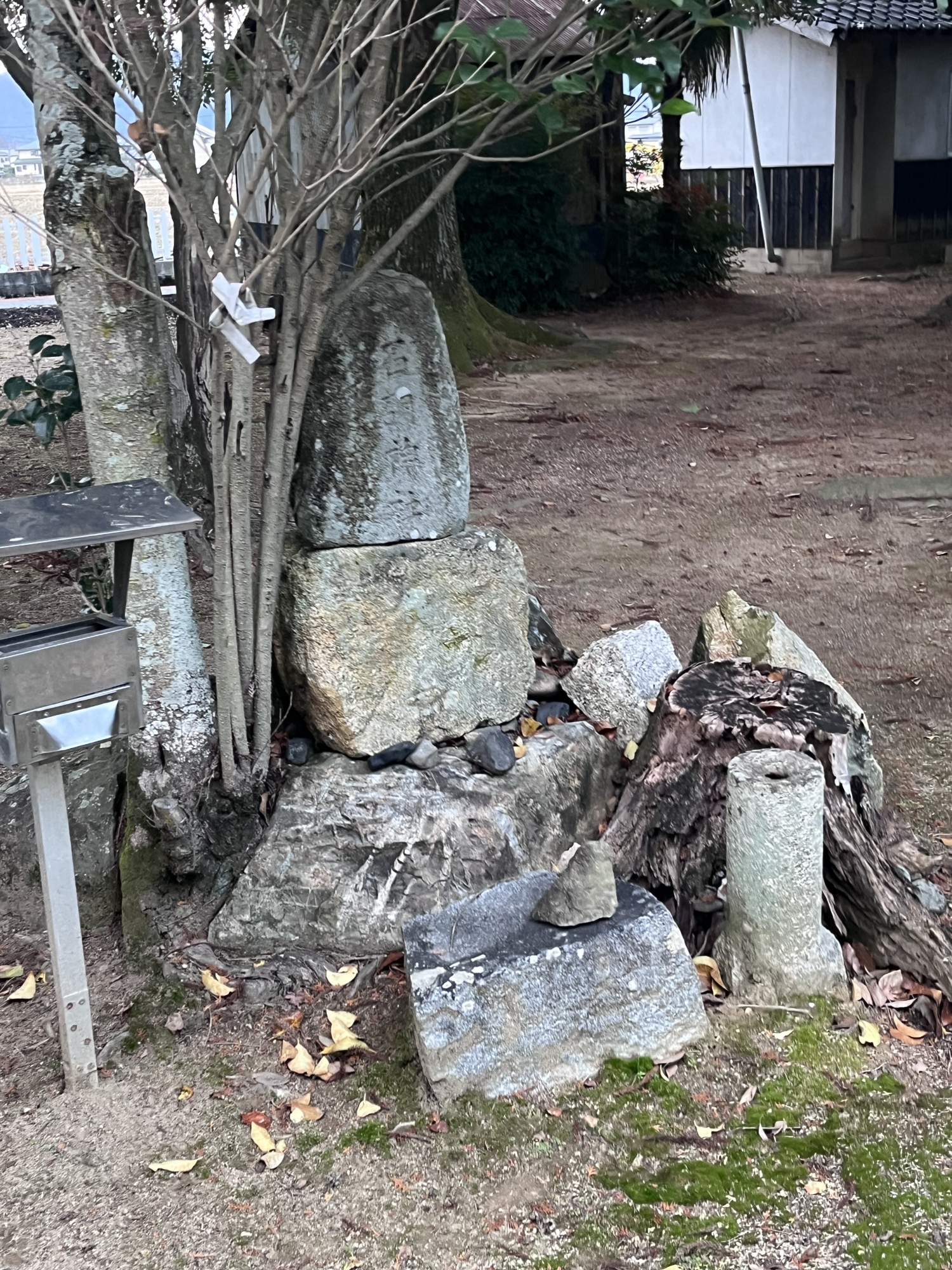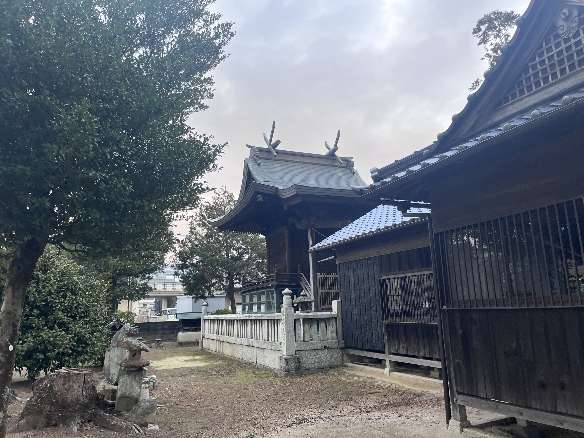 近くの住居の裏手に祠……そして、遠くに加茂神社.