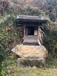 そして、参道的な所があったので、降りて行ったら、下の集落:東栗坂でした……地理院のmapでは、道路は西栗坂に降りる筈だったのに.