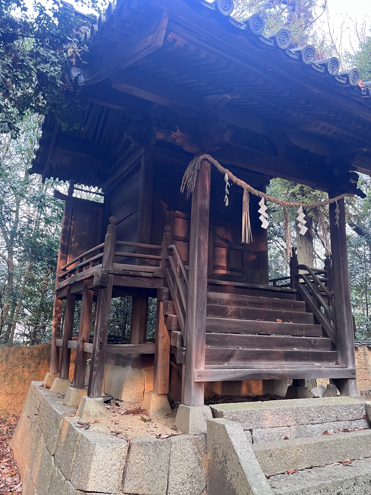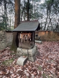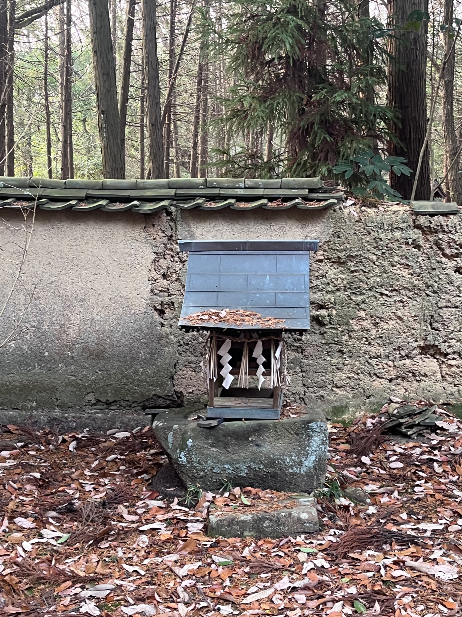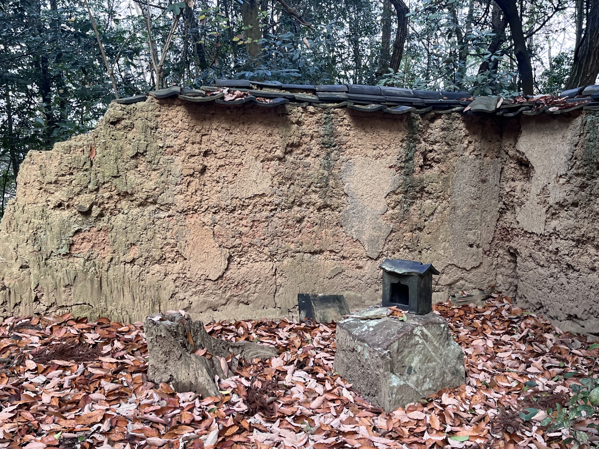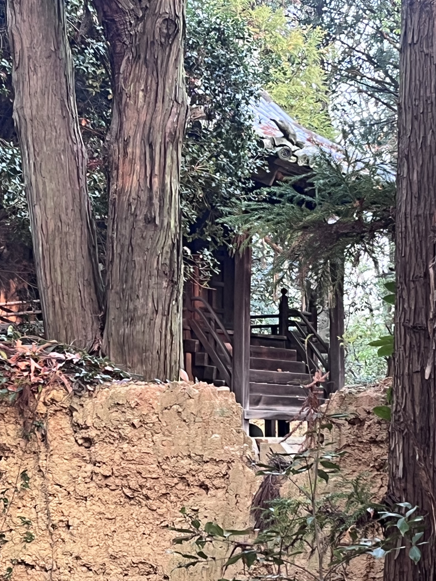 土塀の囲いの外にも摂社と、そして、その近くの摂社には、鳥居.
