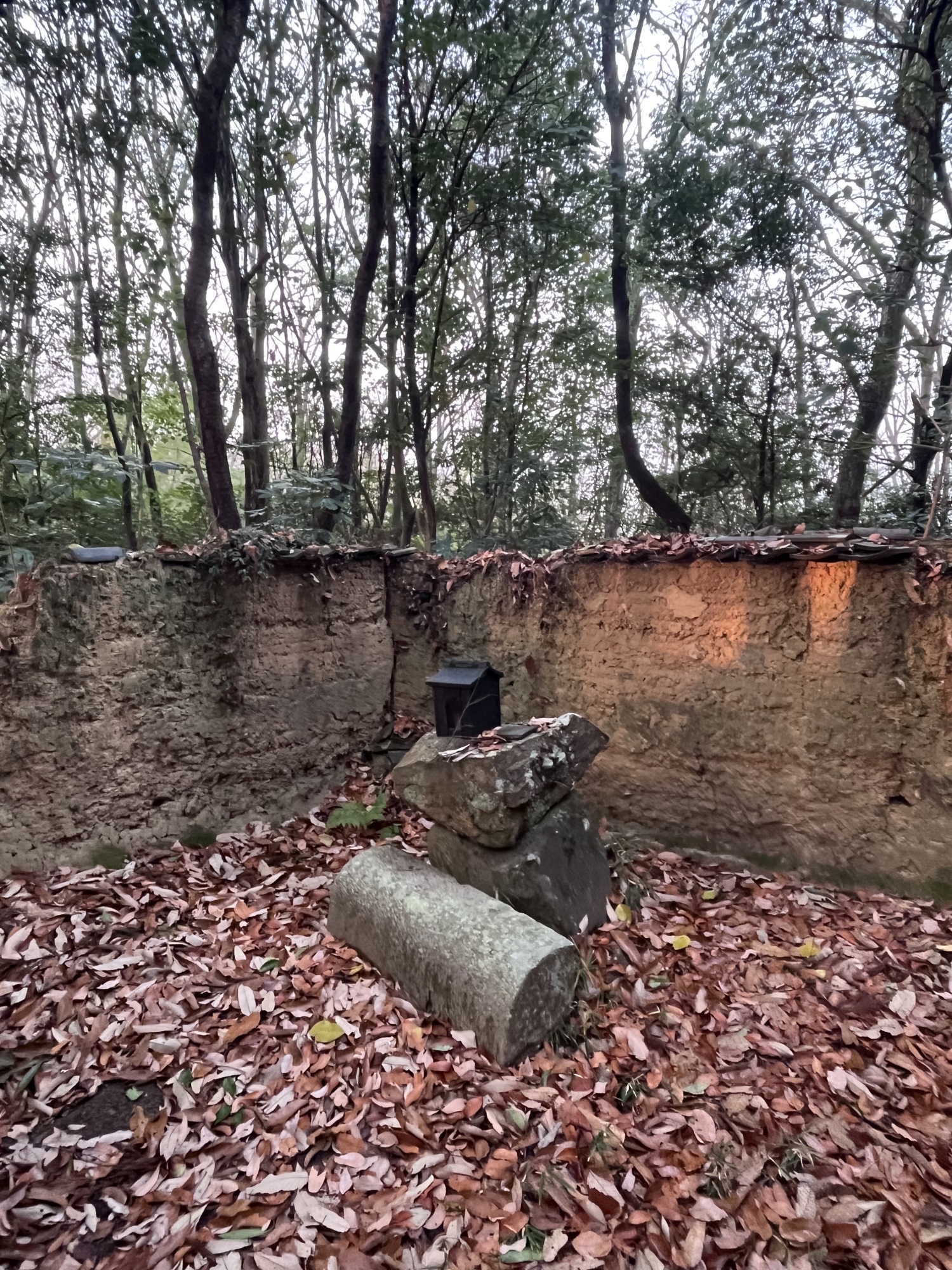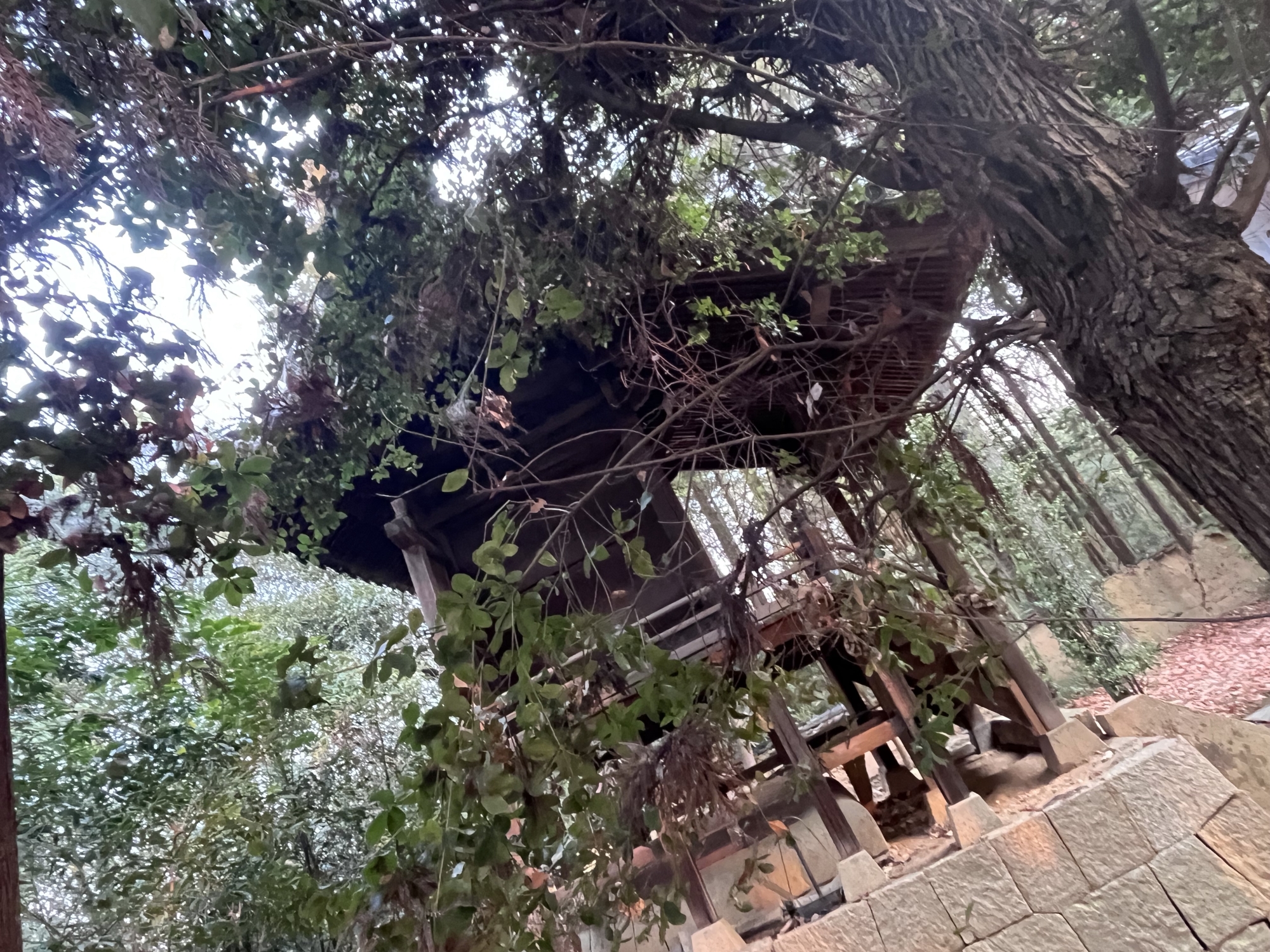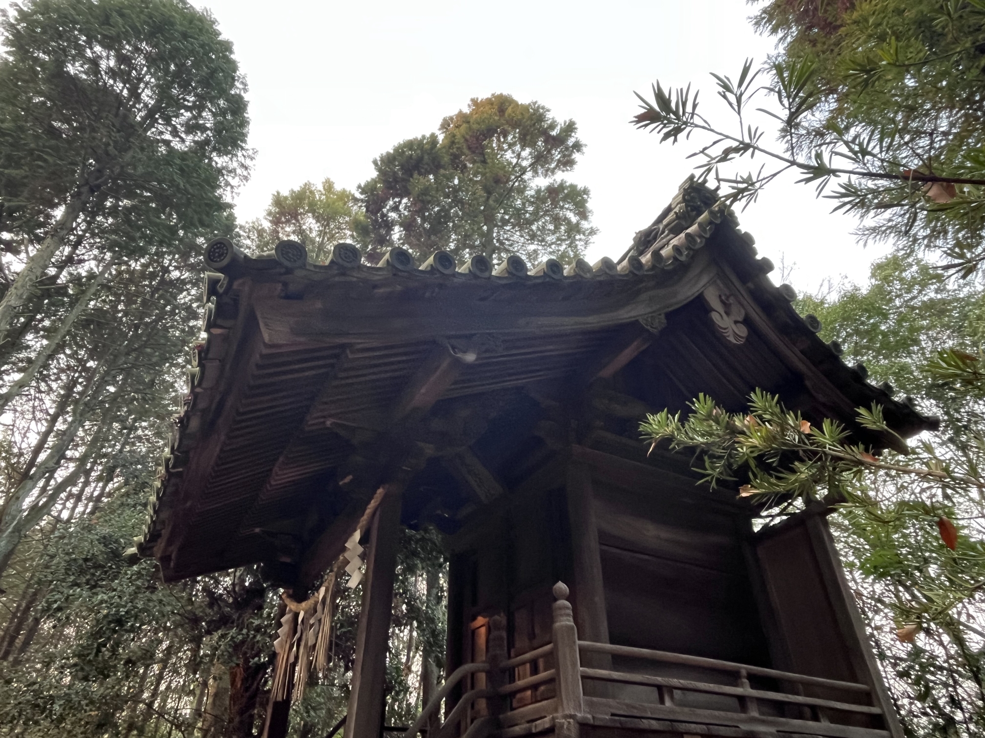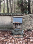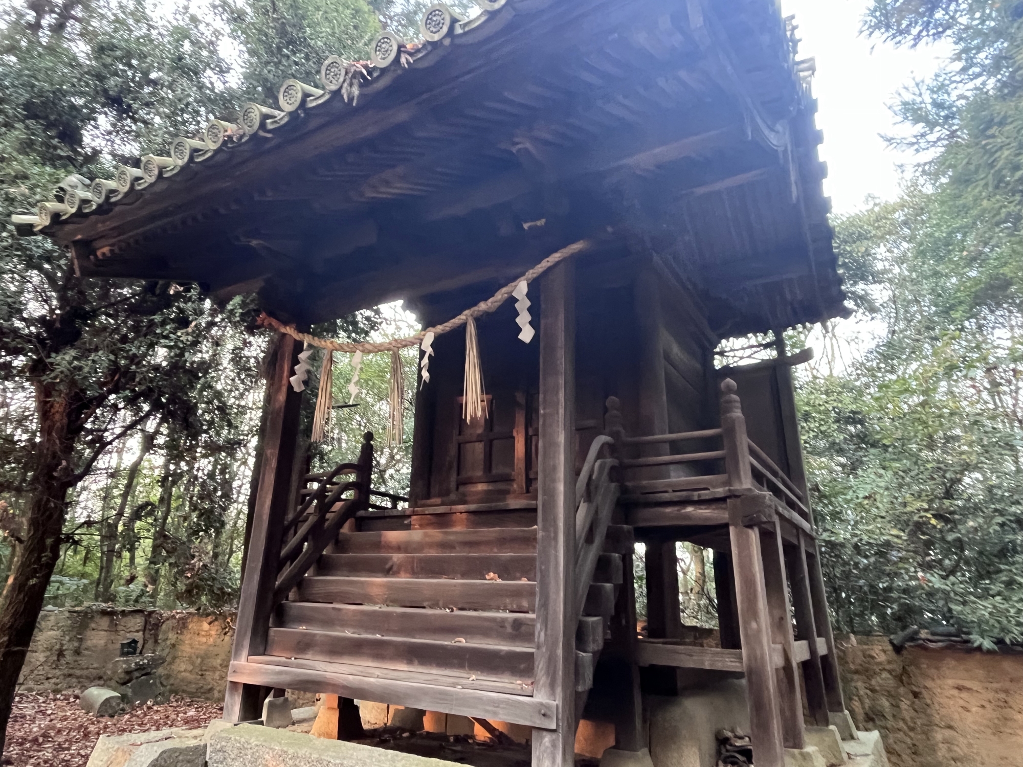 土塀の囲いの外にも摂社と、そして、その近くの摂社には、鳥居.