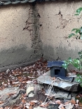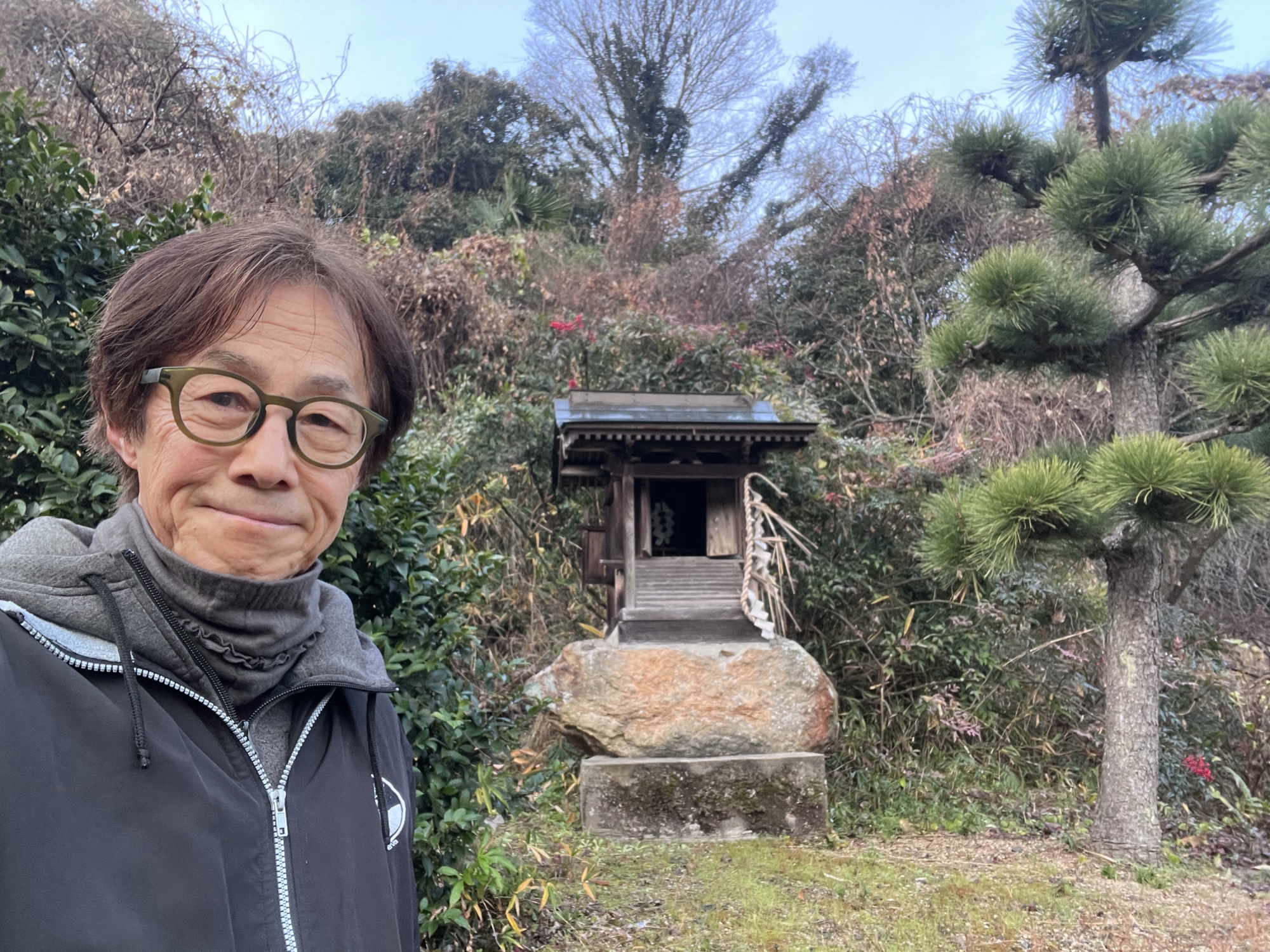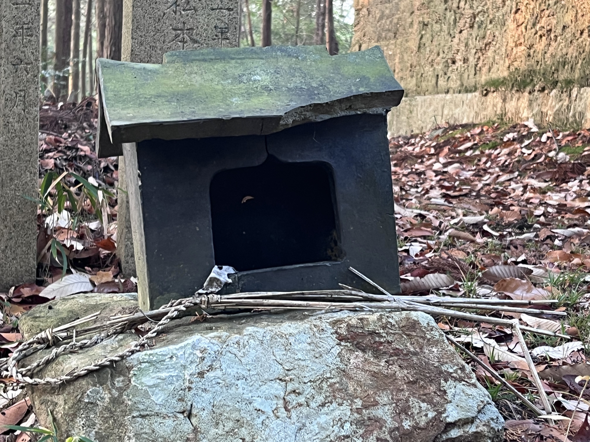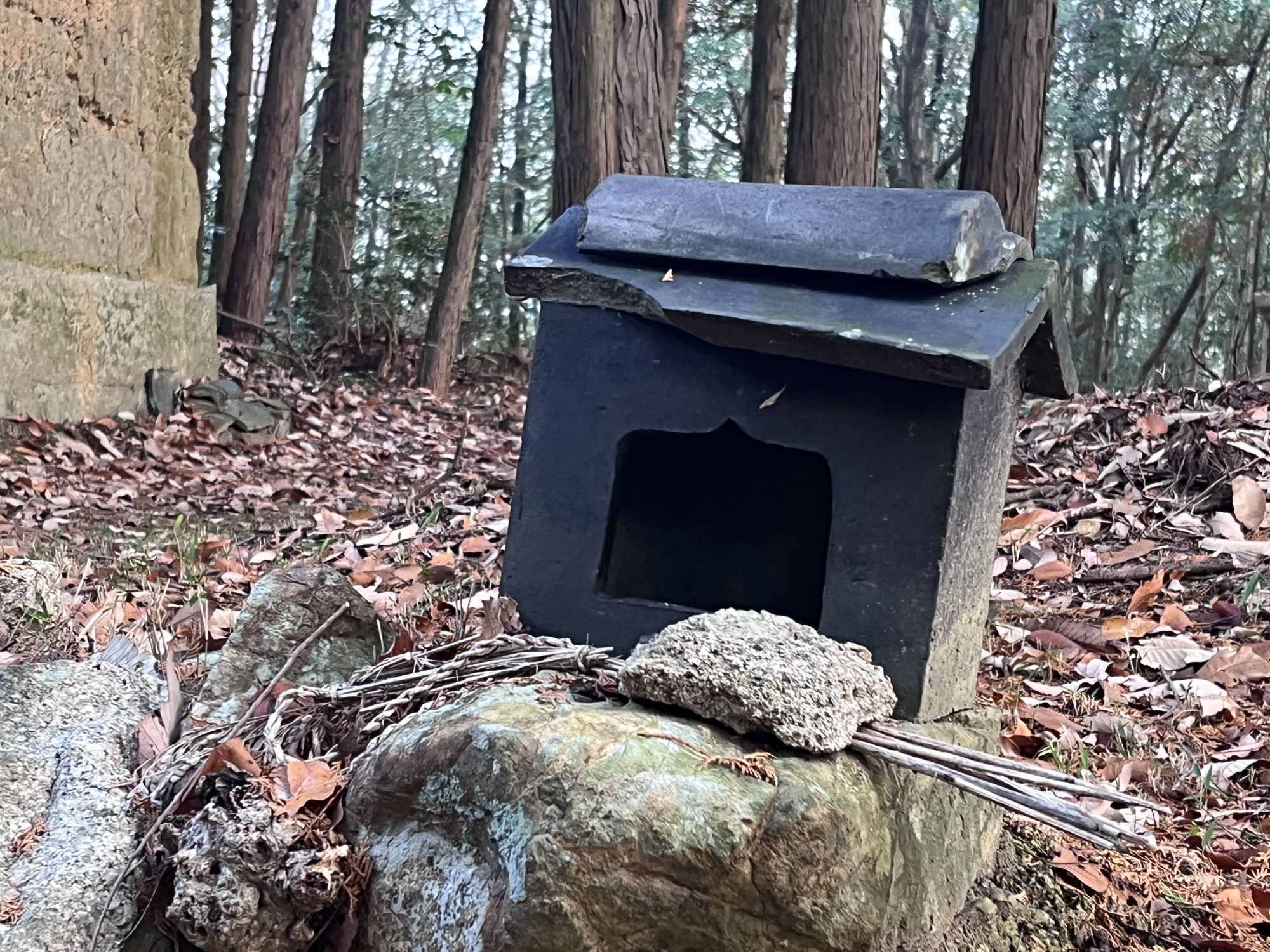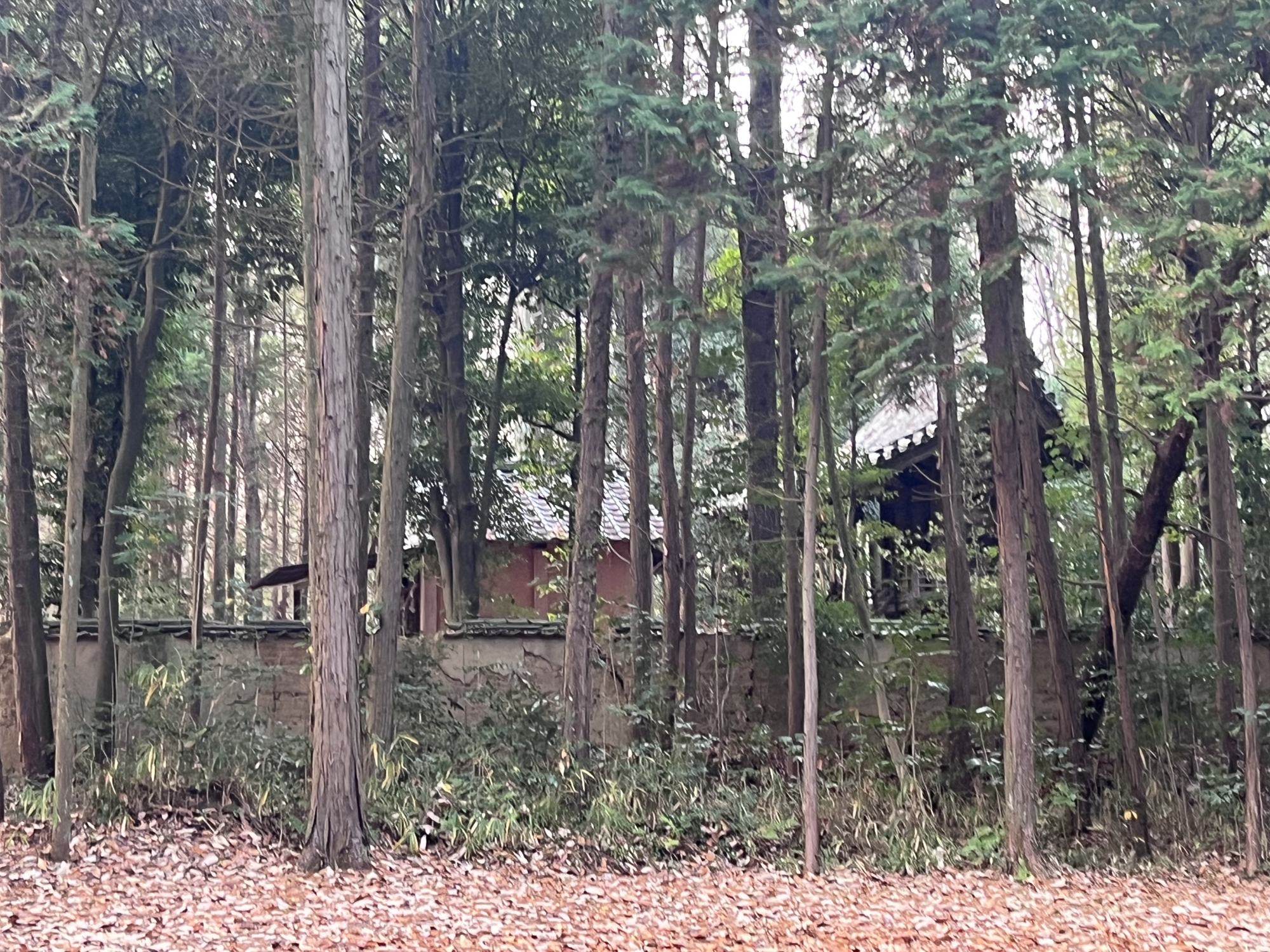 土塀の囲いの外にも摂社と、そして、その近くの摂社には、鳥居.