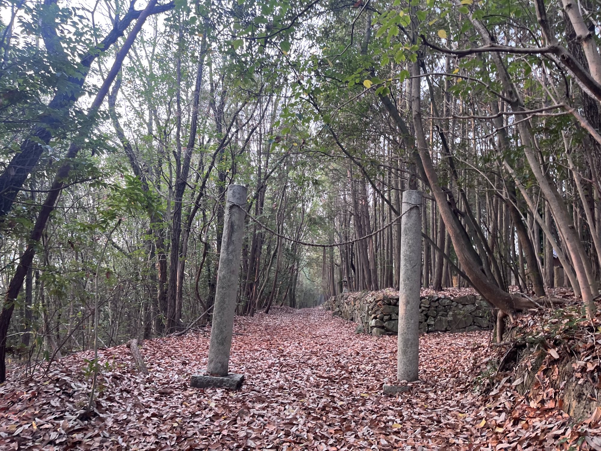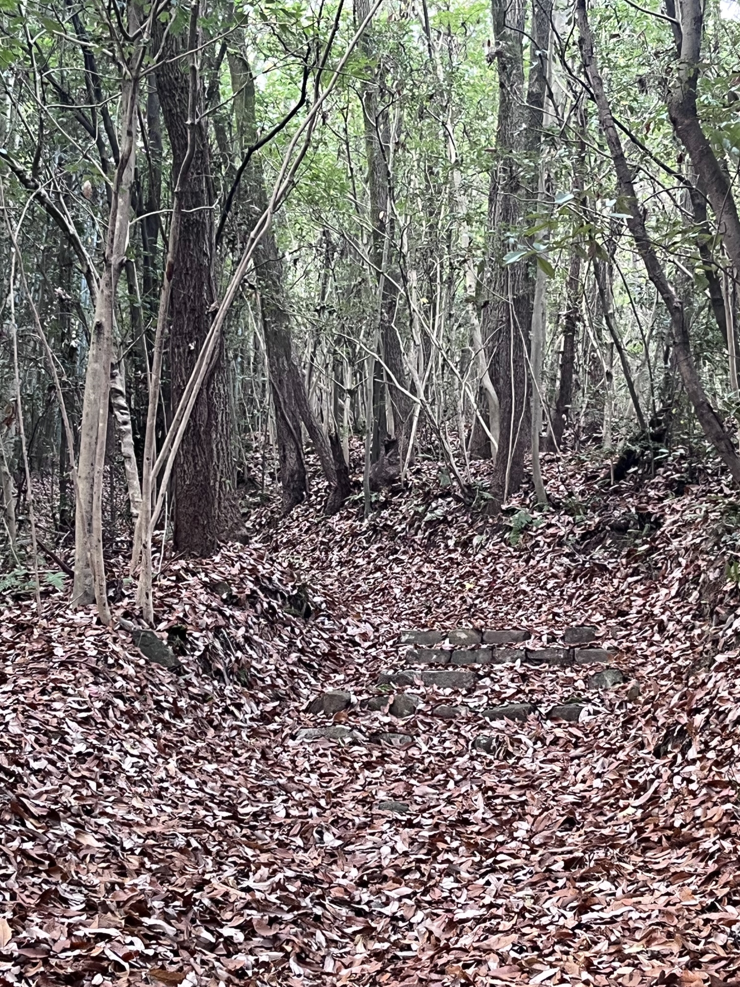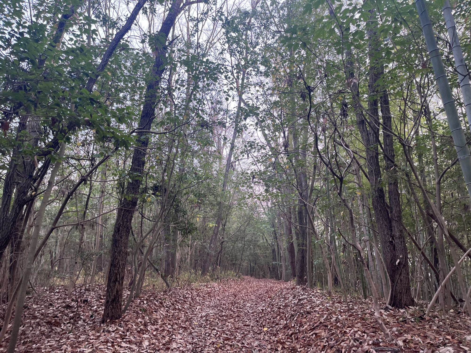 そして、落葉一杯の道を逆戻りで北向きに進みます.