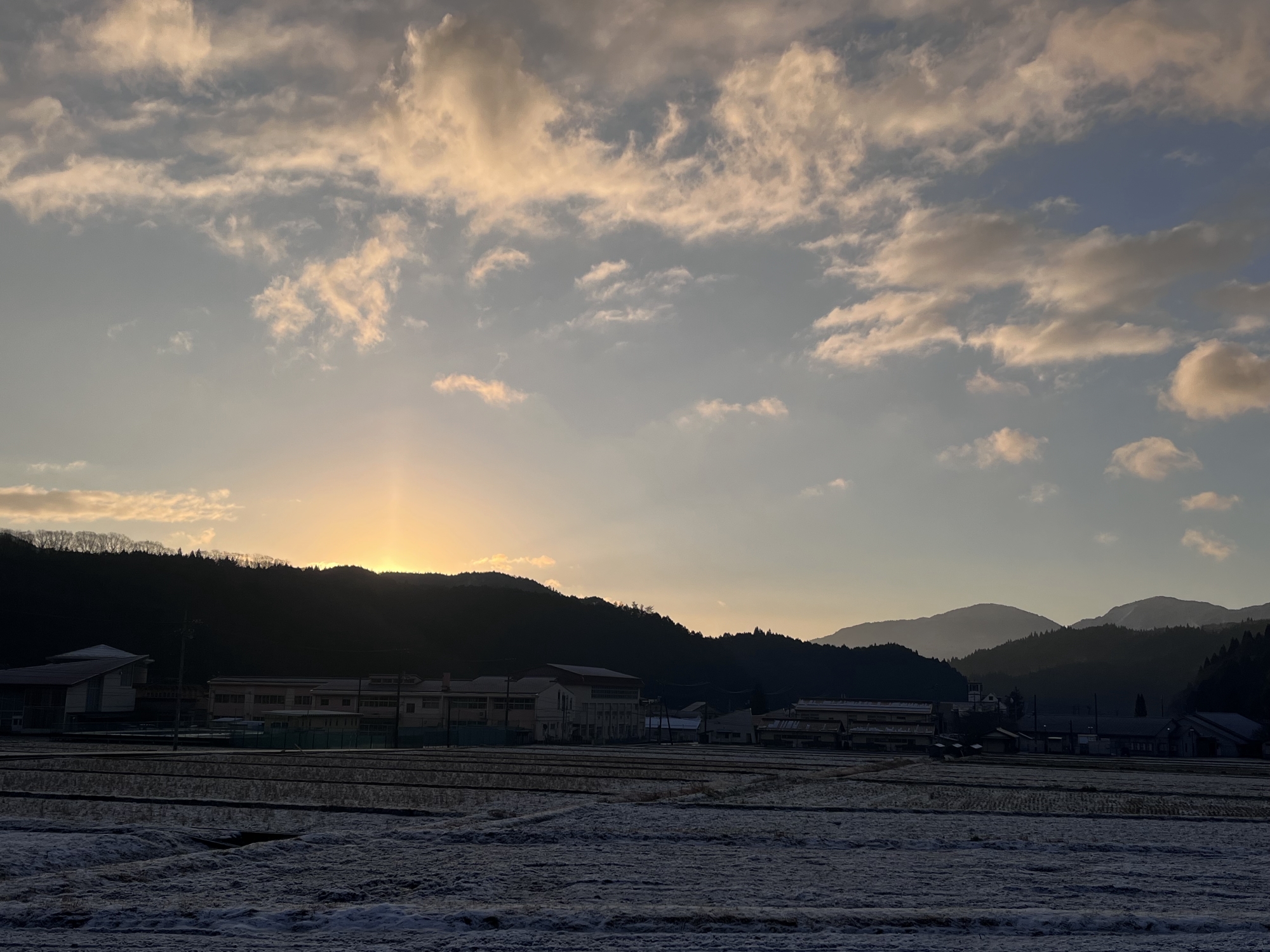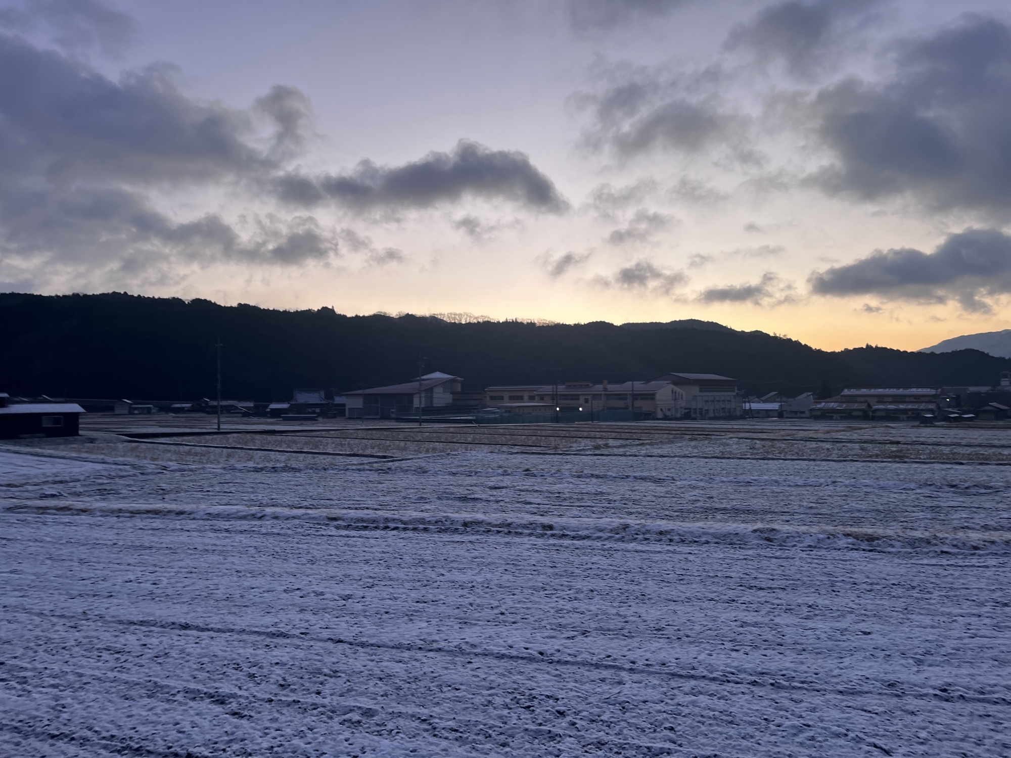 さて、出勤……田圃も白い.