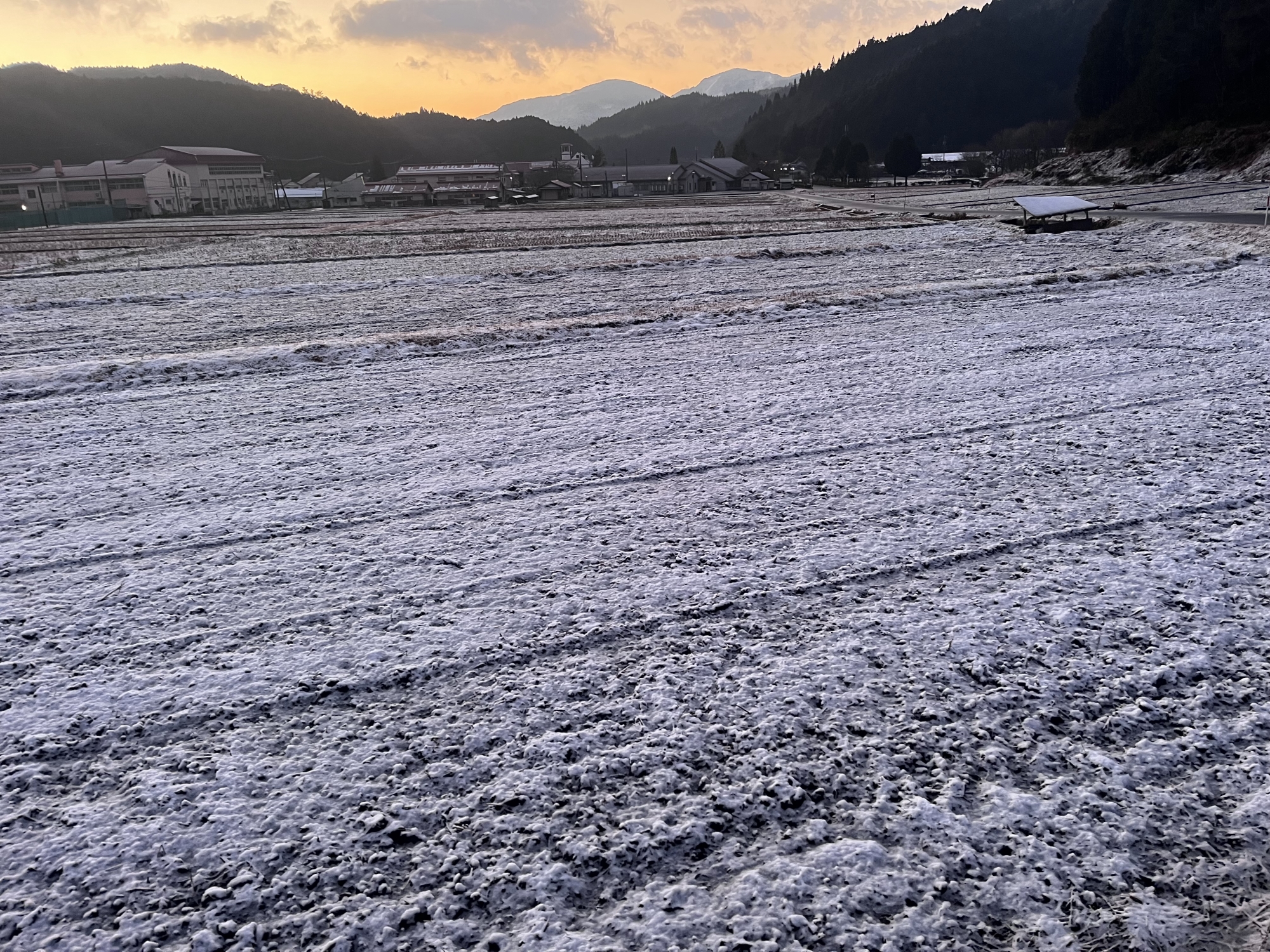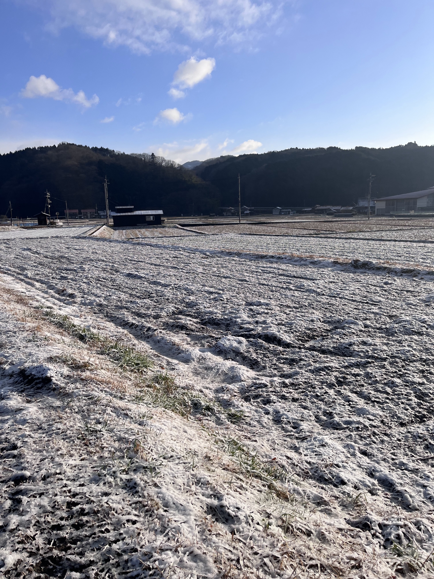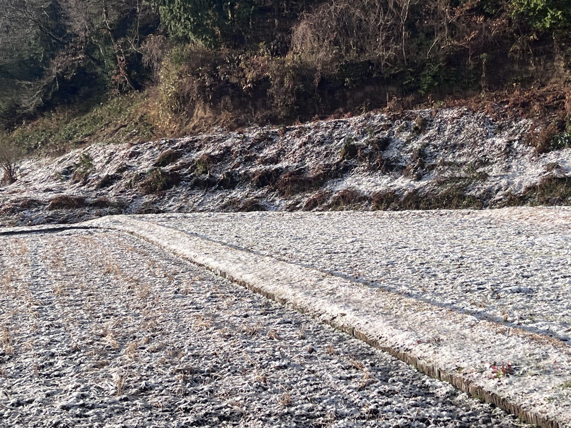 田圃は白い……でも、シャーベット状態.