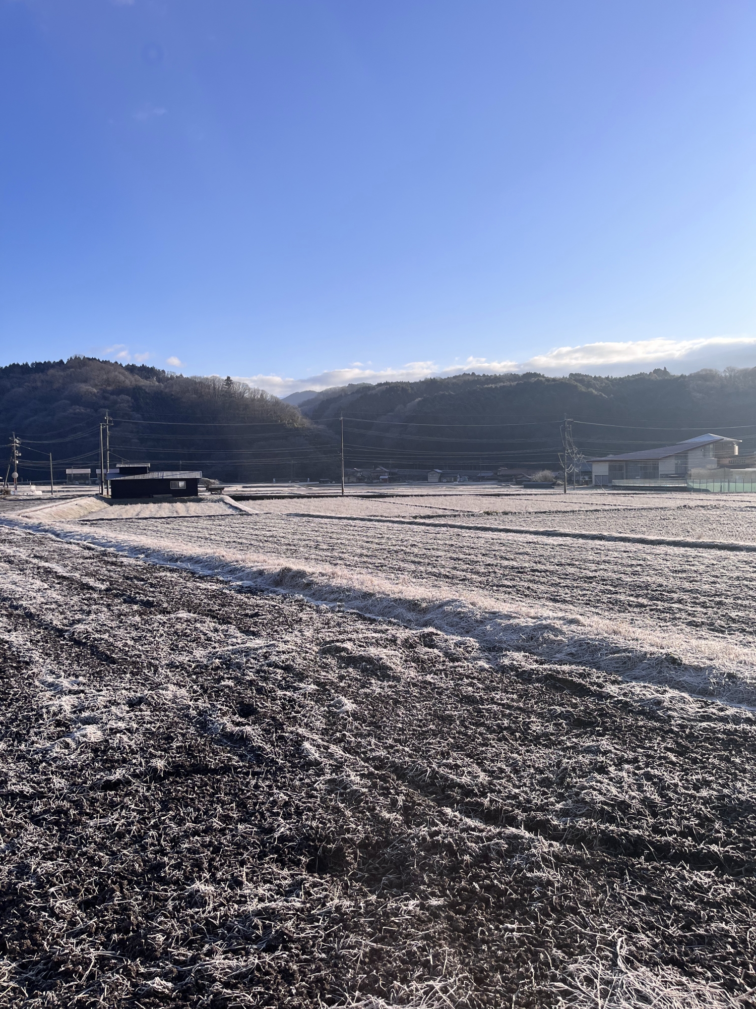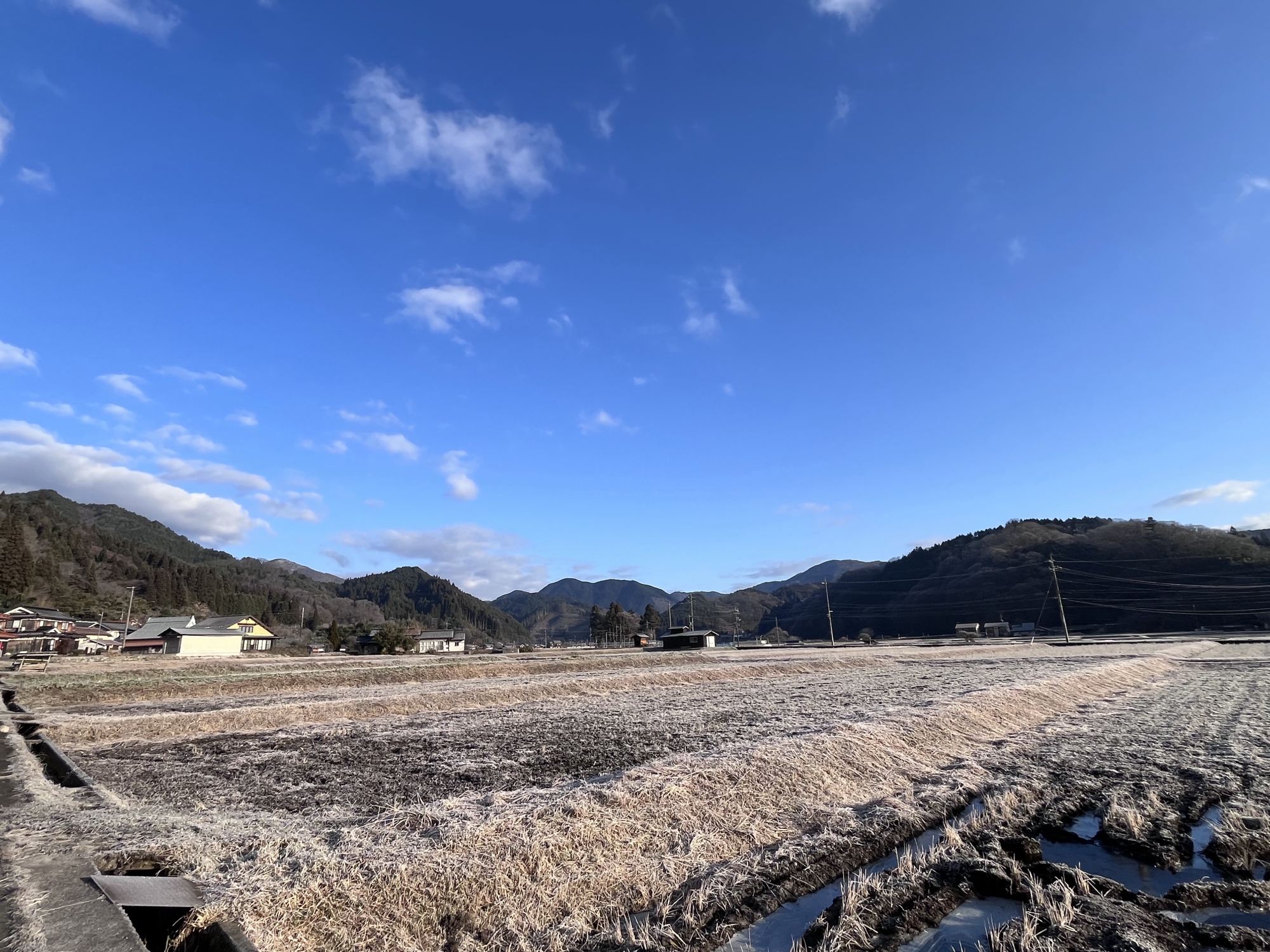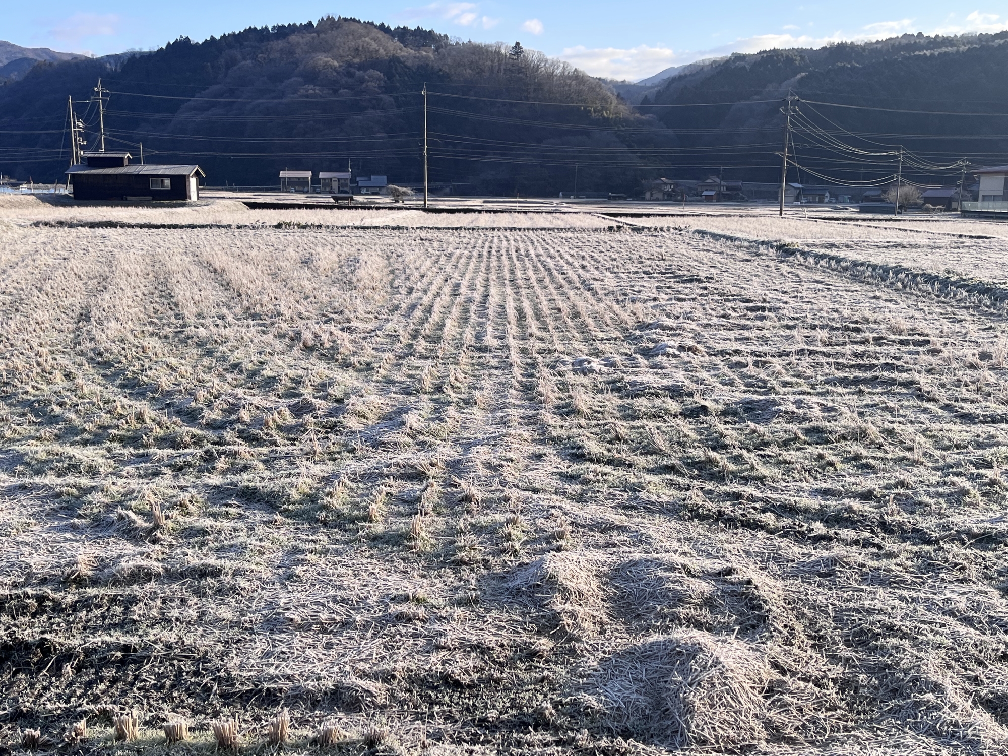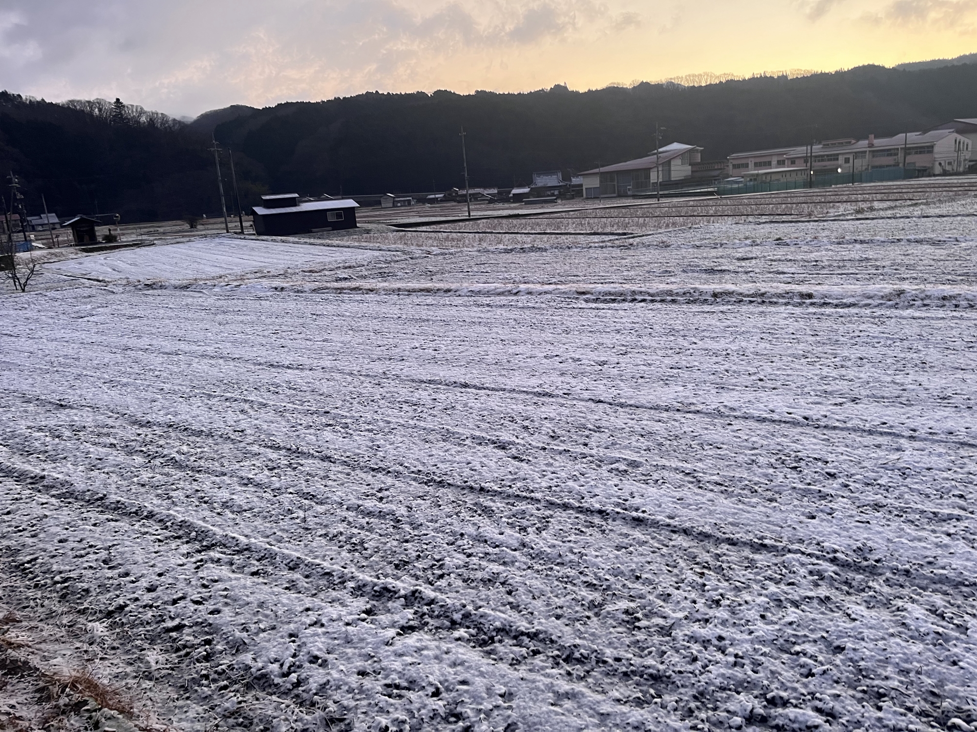 田圃は白い……でも、シャーベット状態.