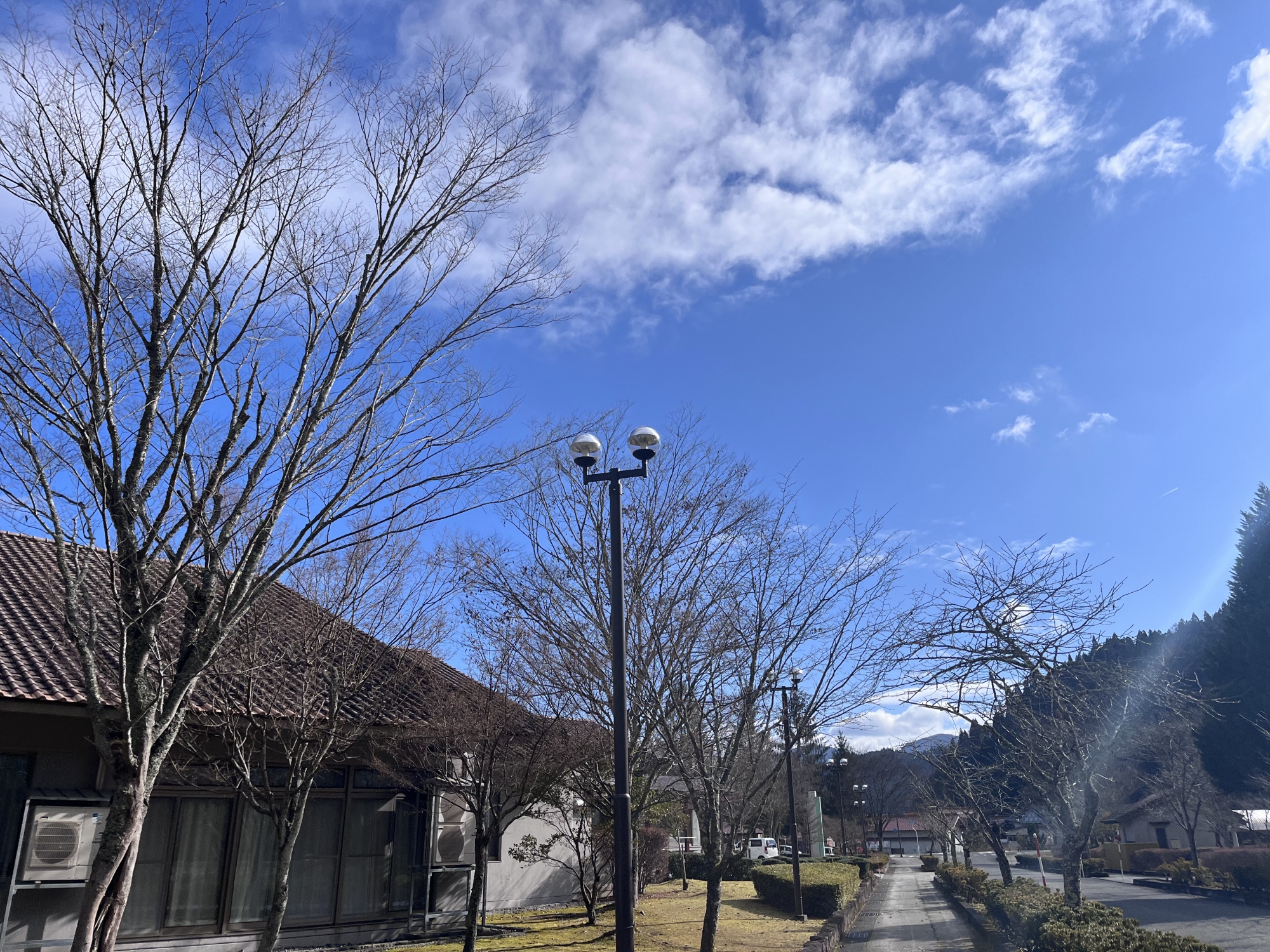 向かいが役場ですが……まずは、がいせん桜とおりへ.