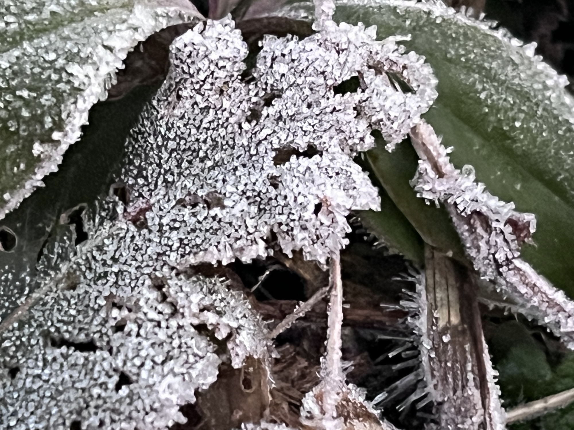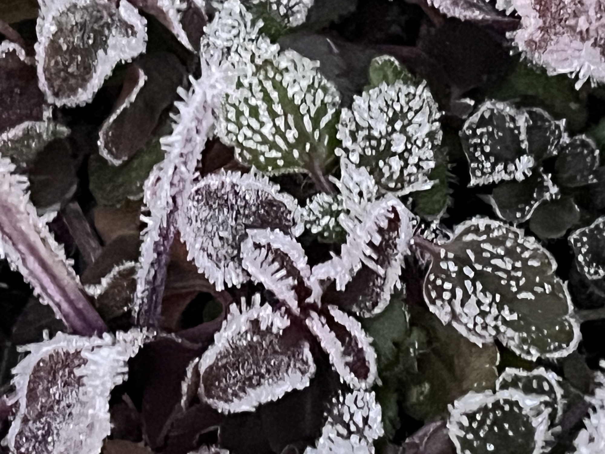 それぞれの葉で、異なる霜.
