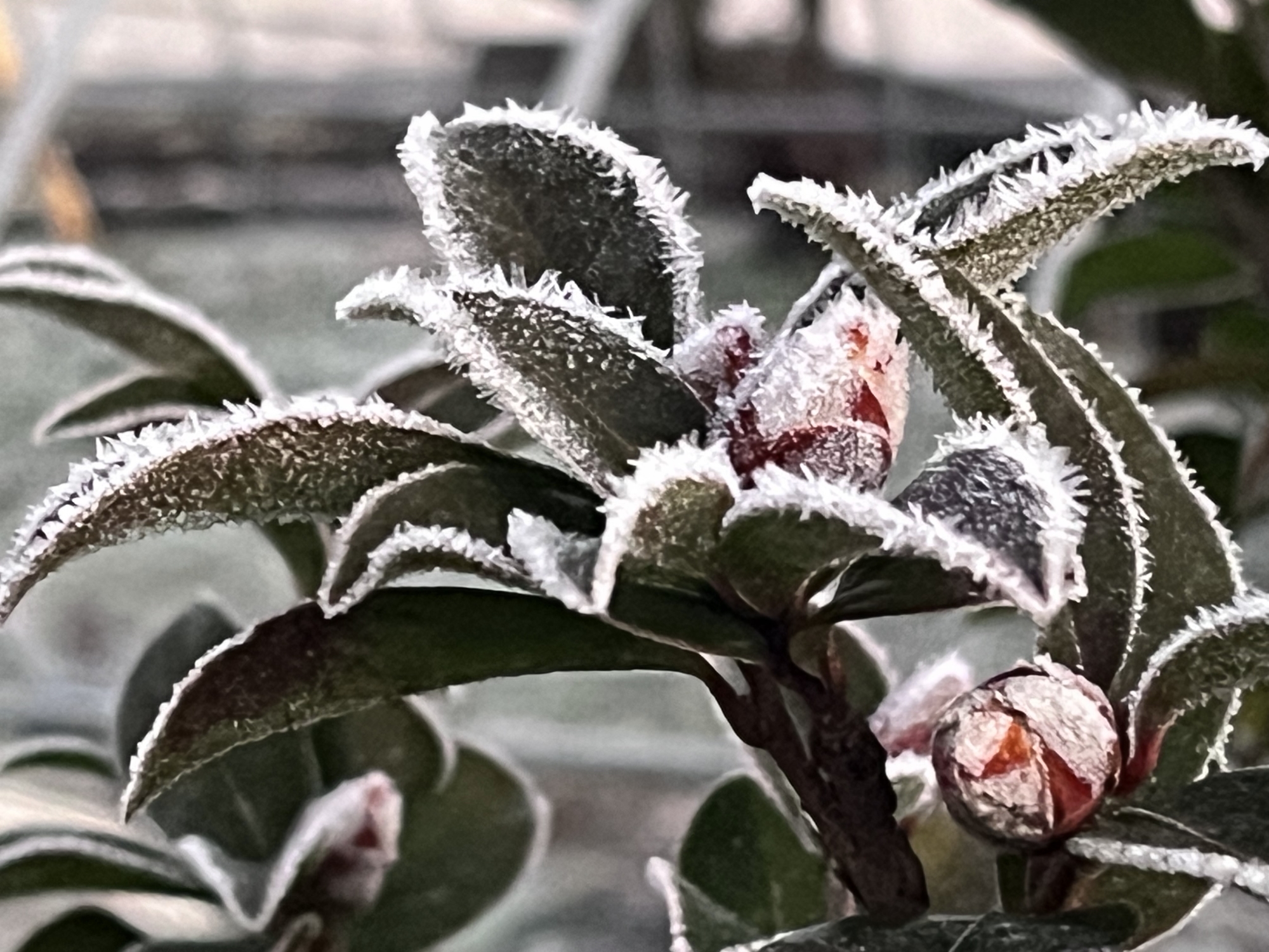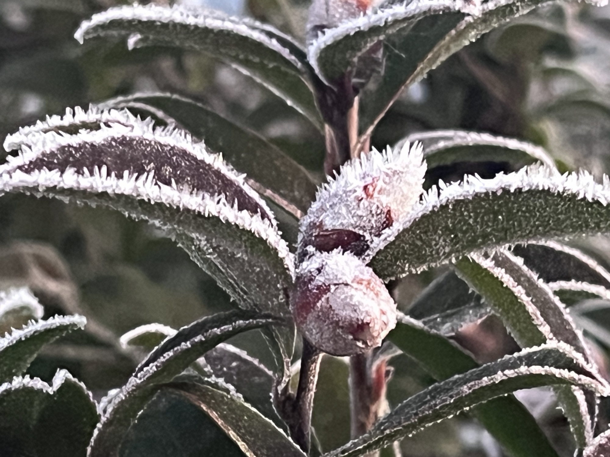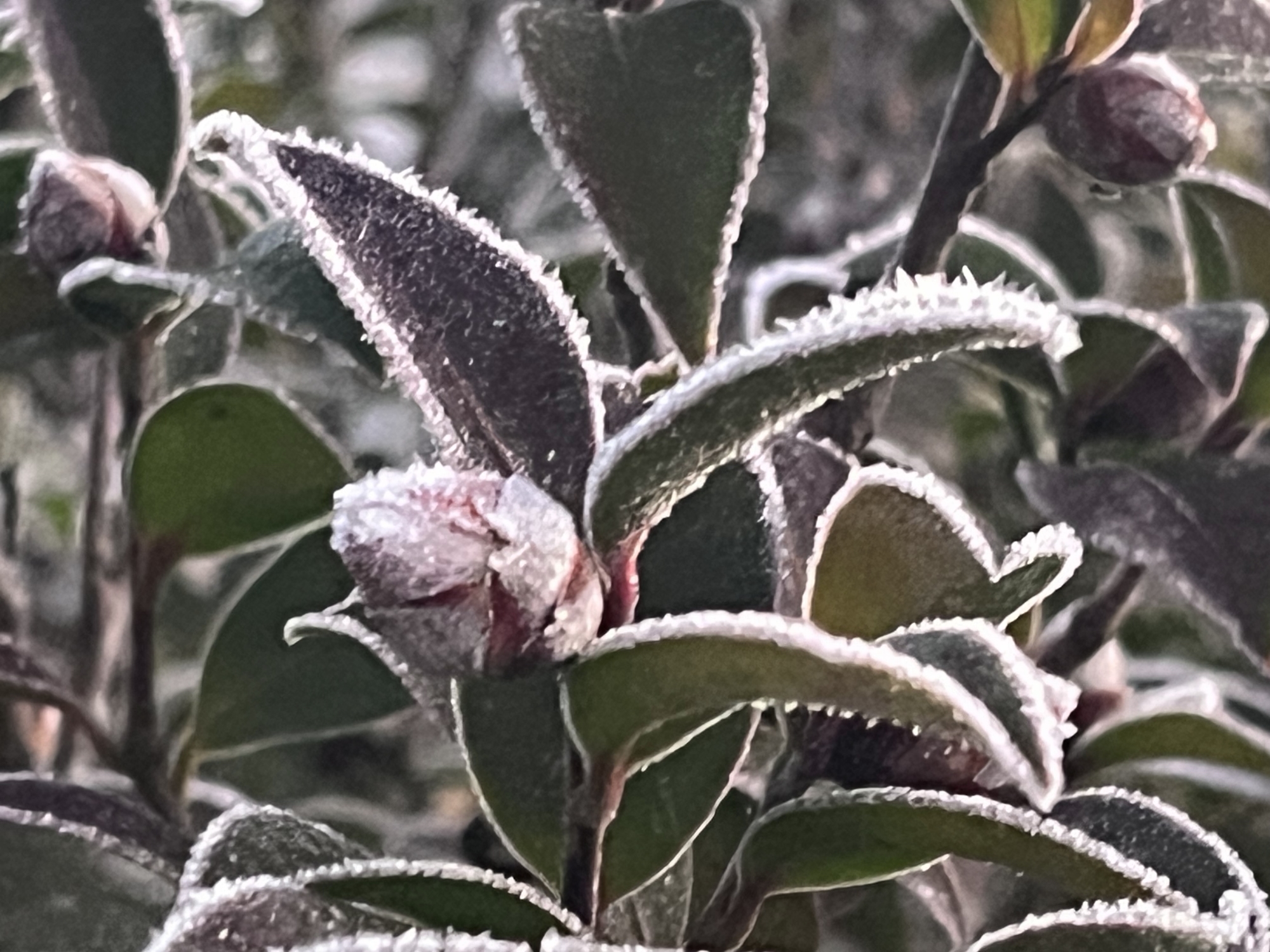 山茶花かな?蕾も霜.
