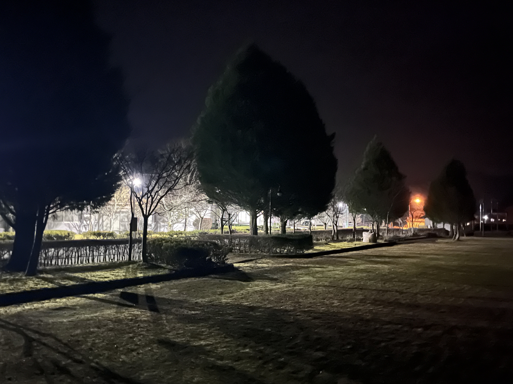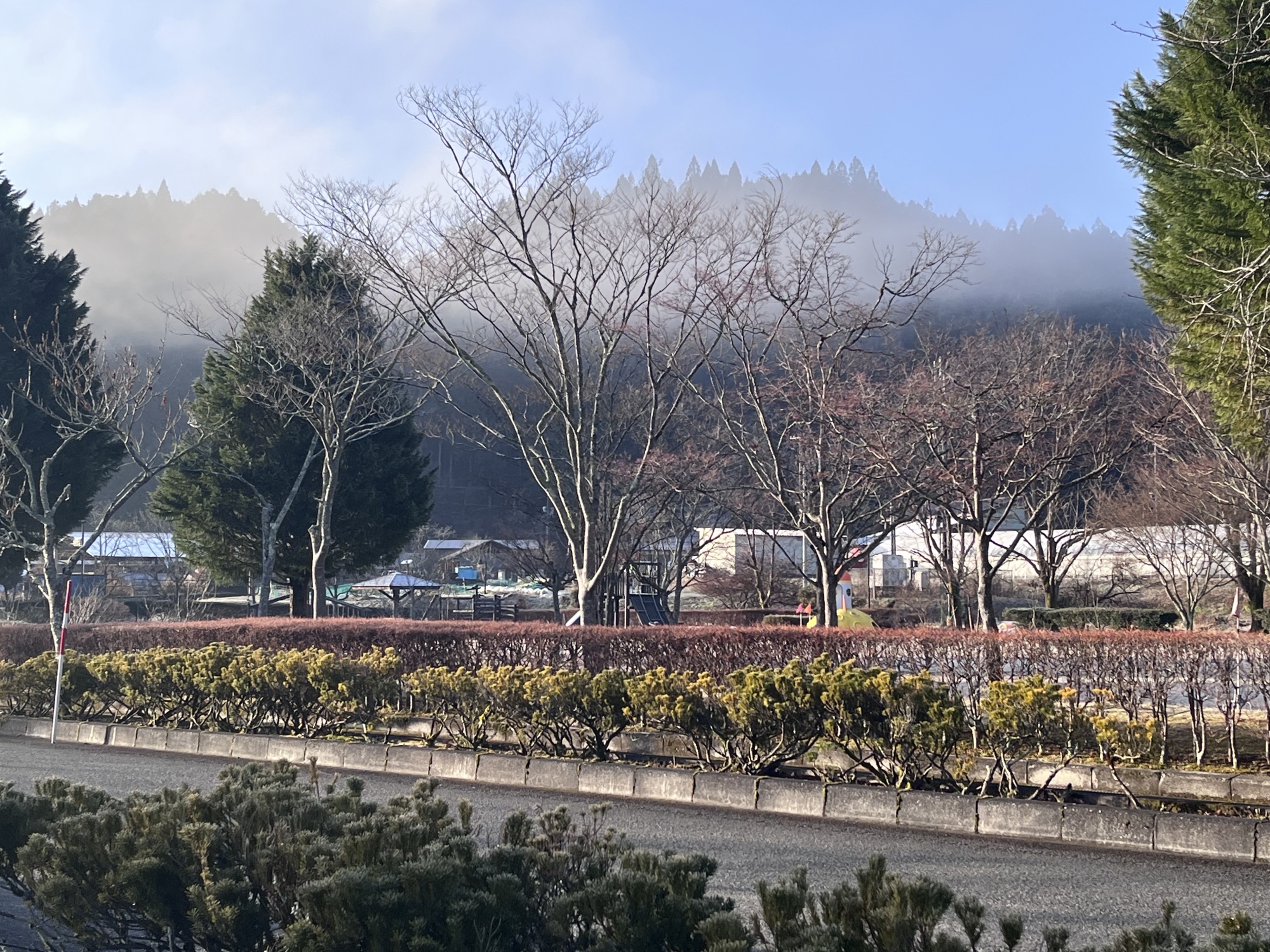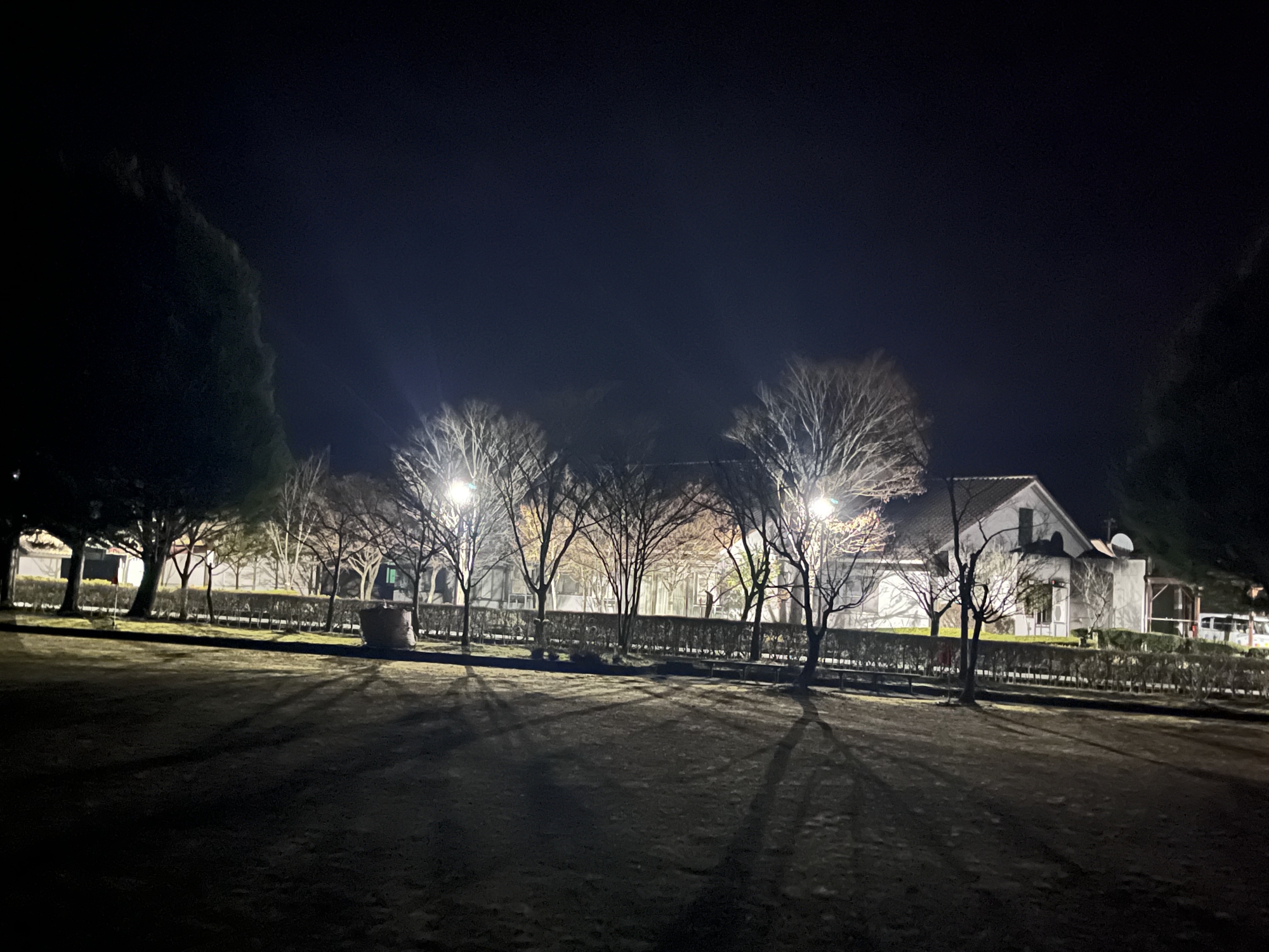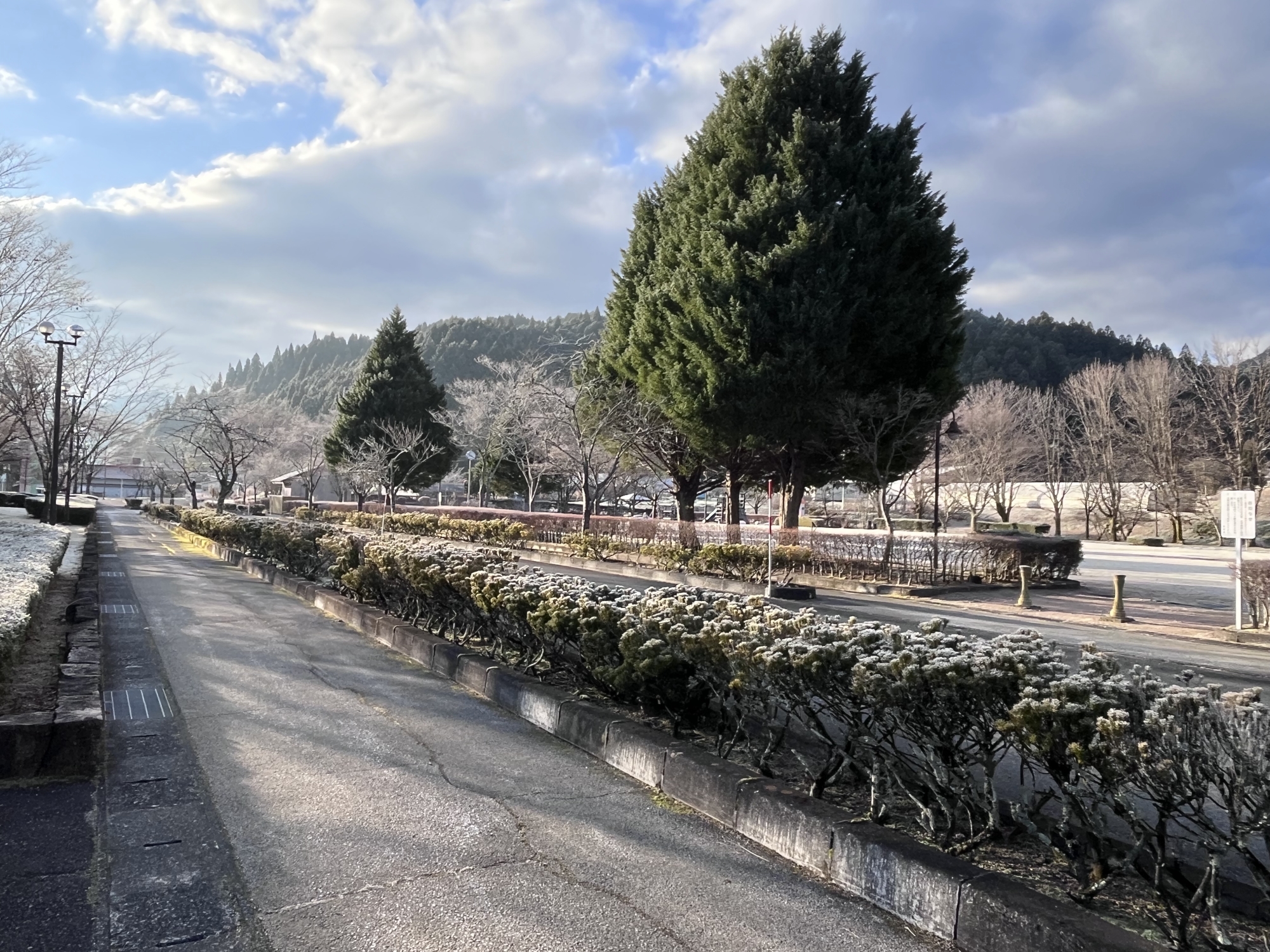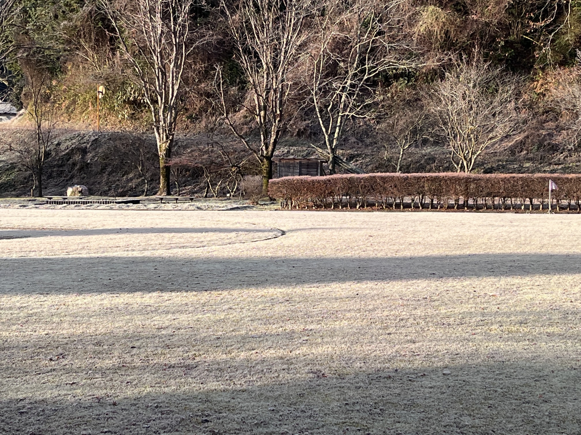 ふれあい公園も霜で白い!!