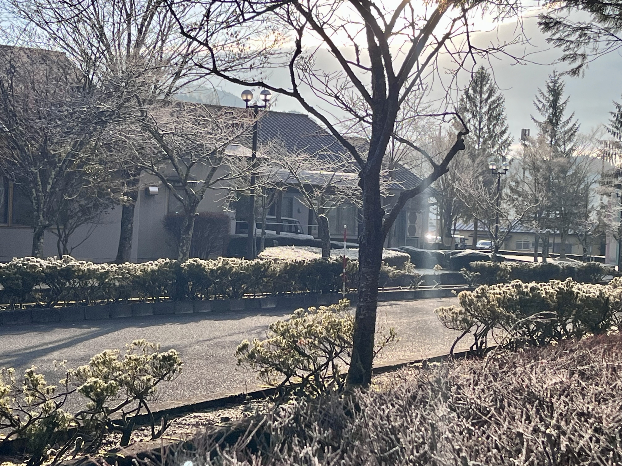 朝の山は白かった!!!