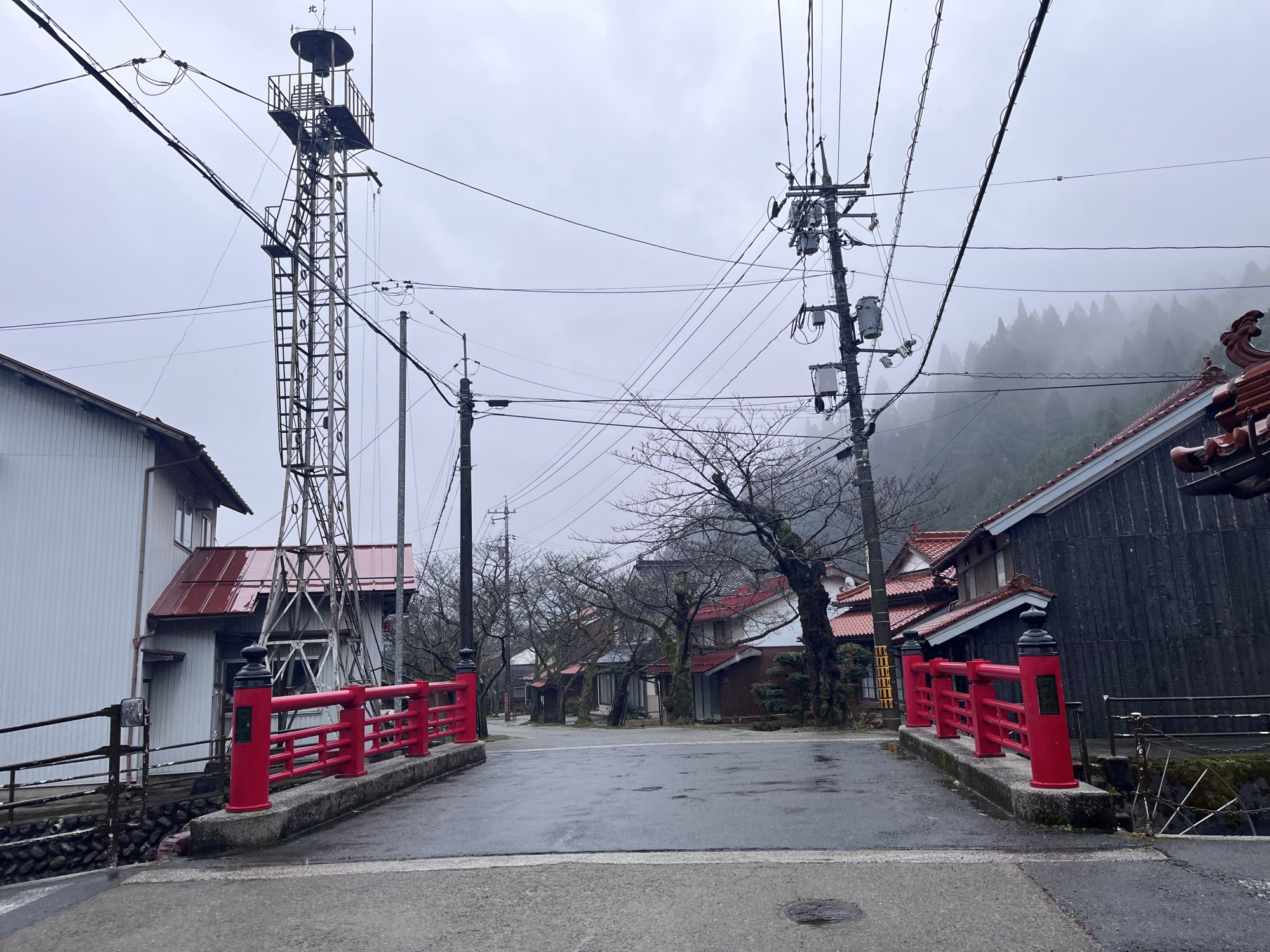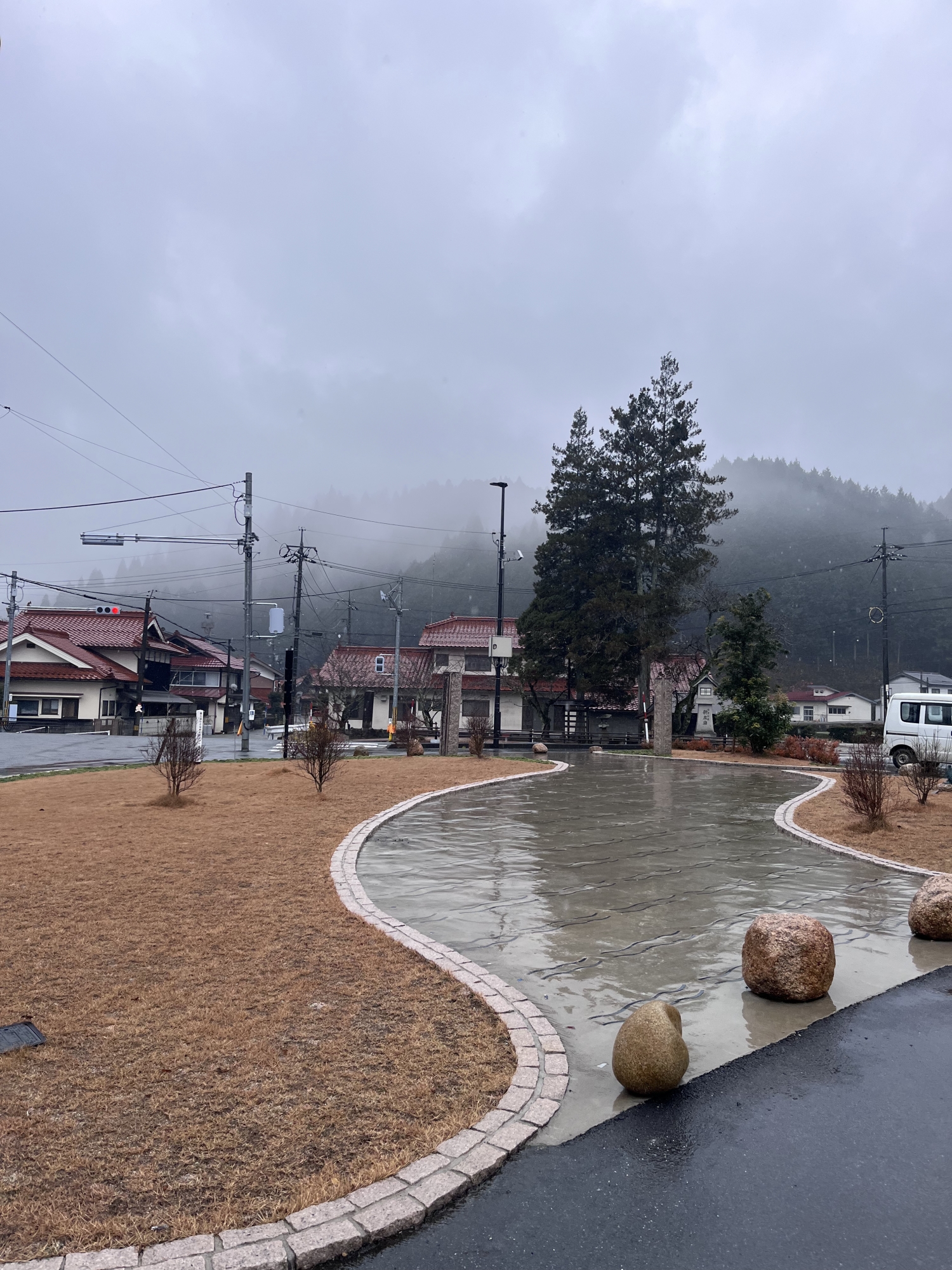 昼……郵便局から役場へ……あら、雨.