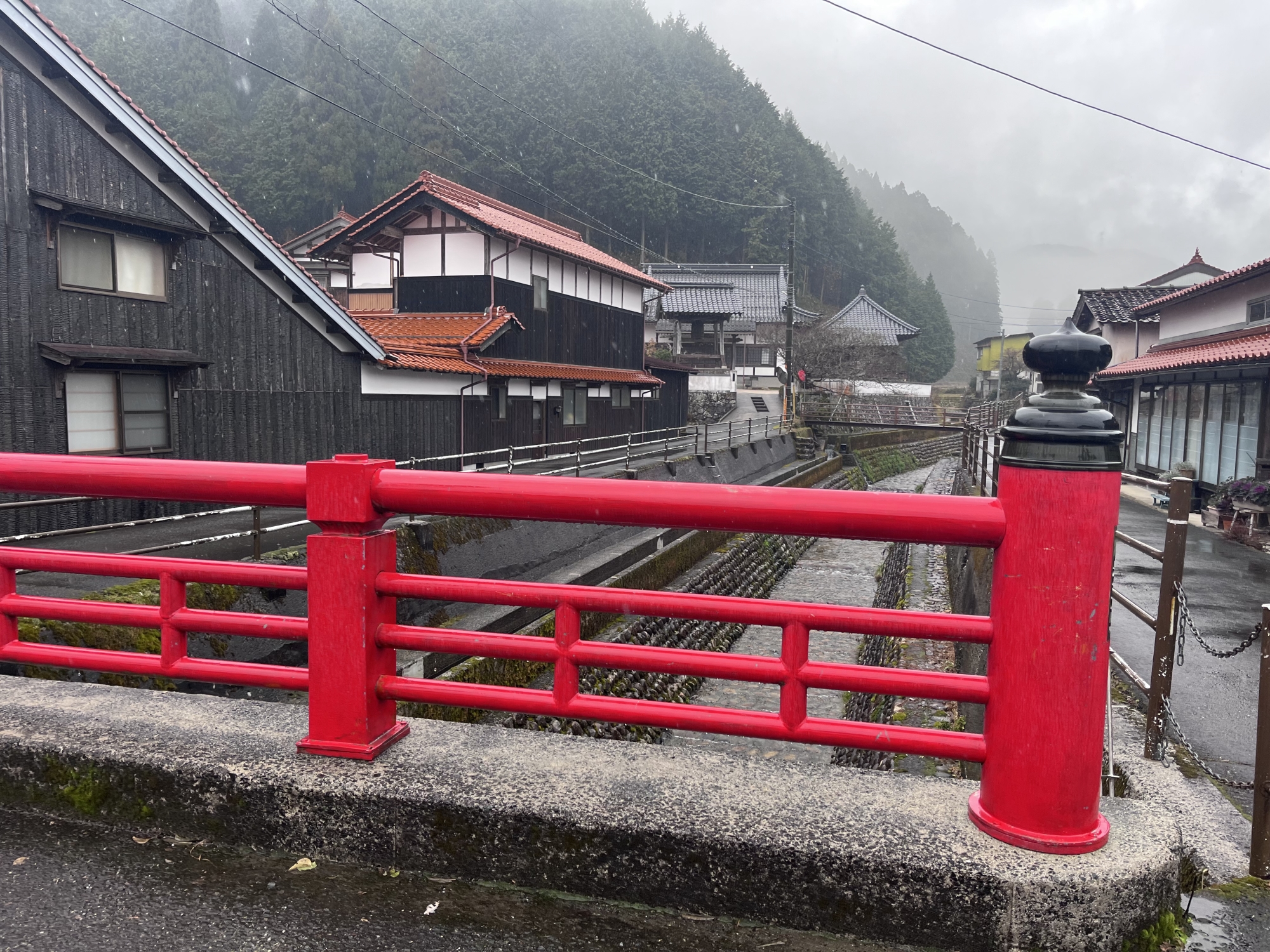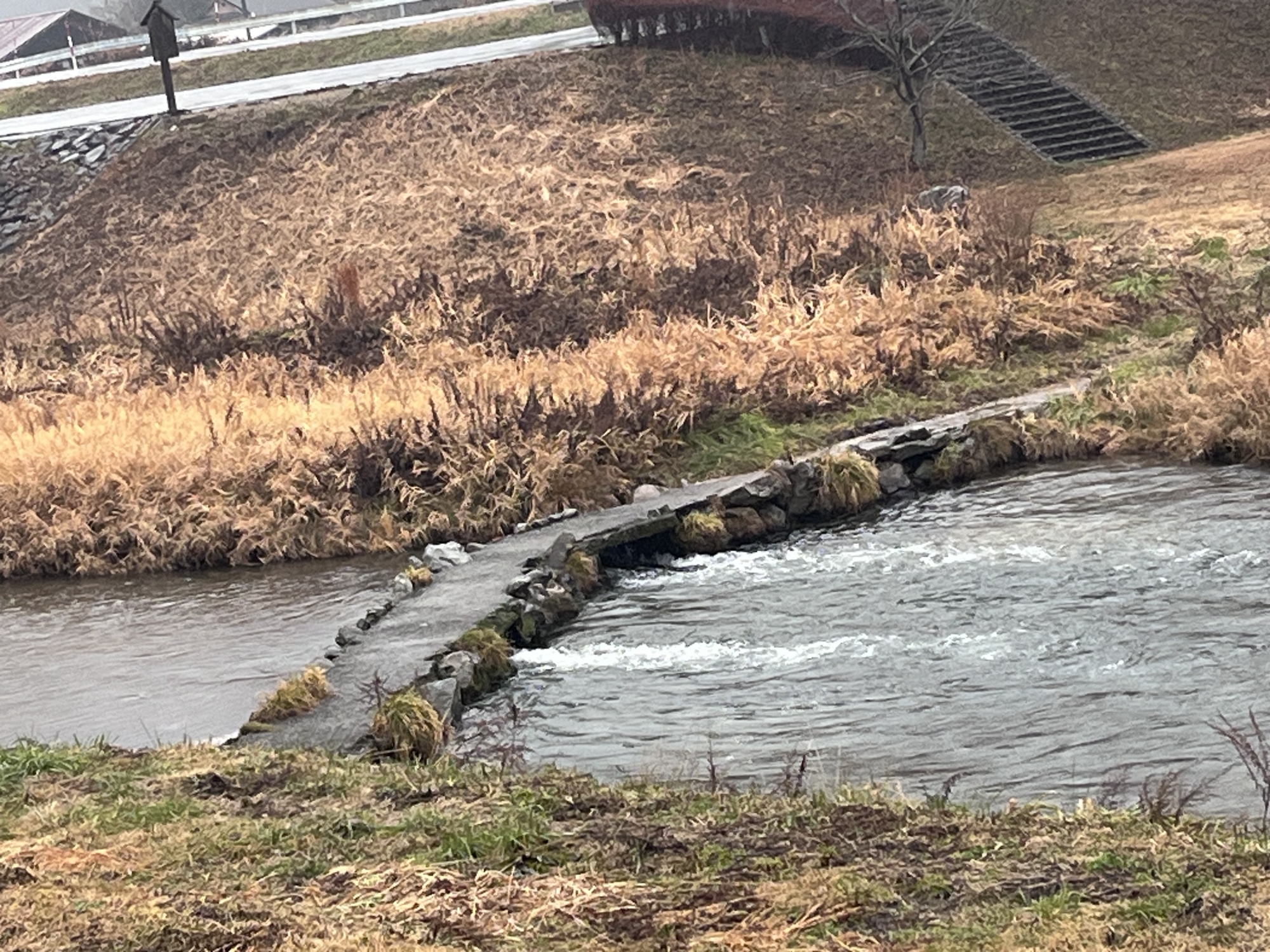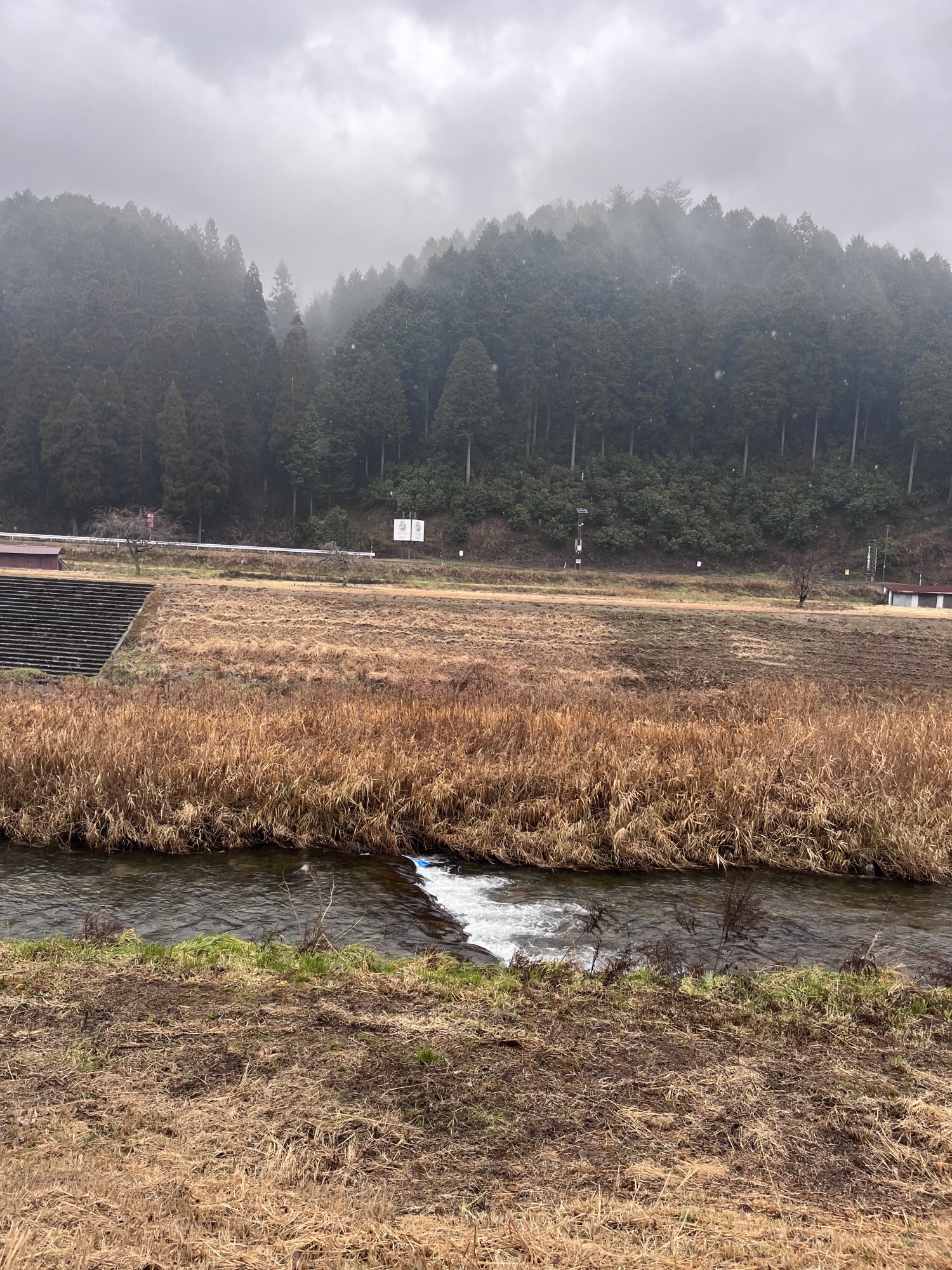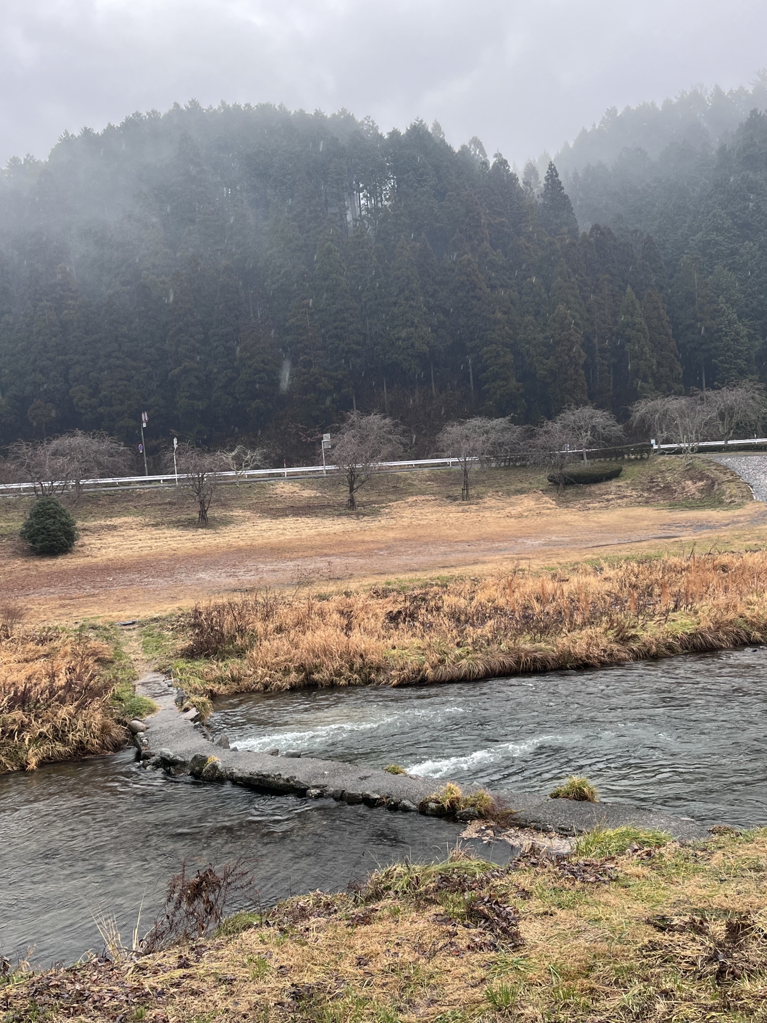 新庄川も雨の中.