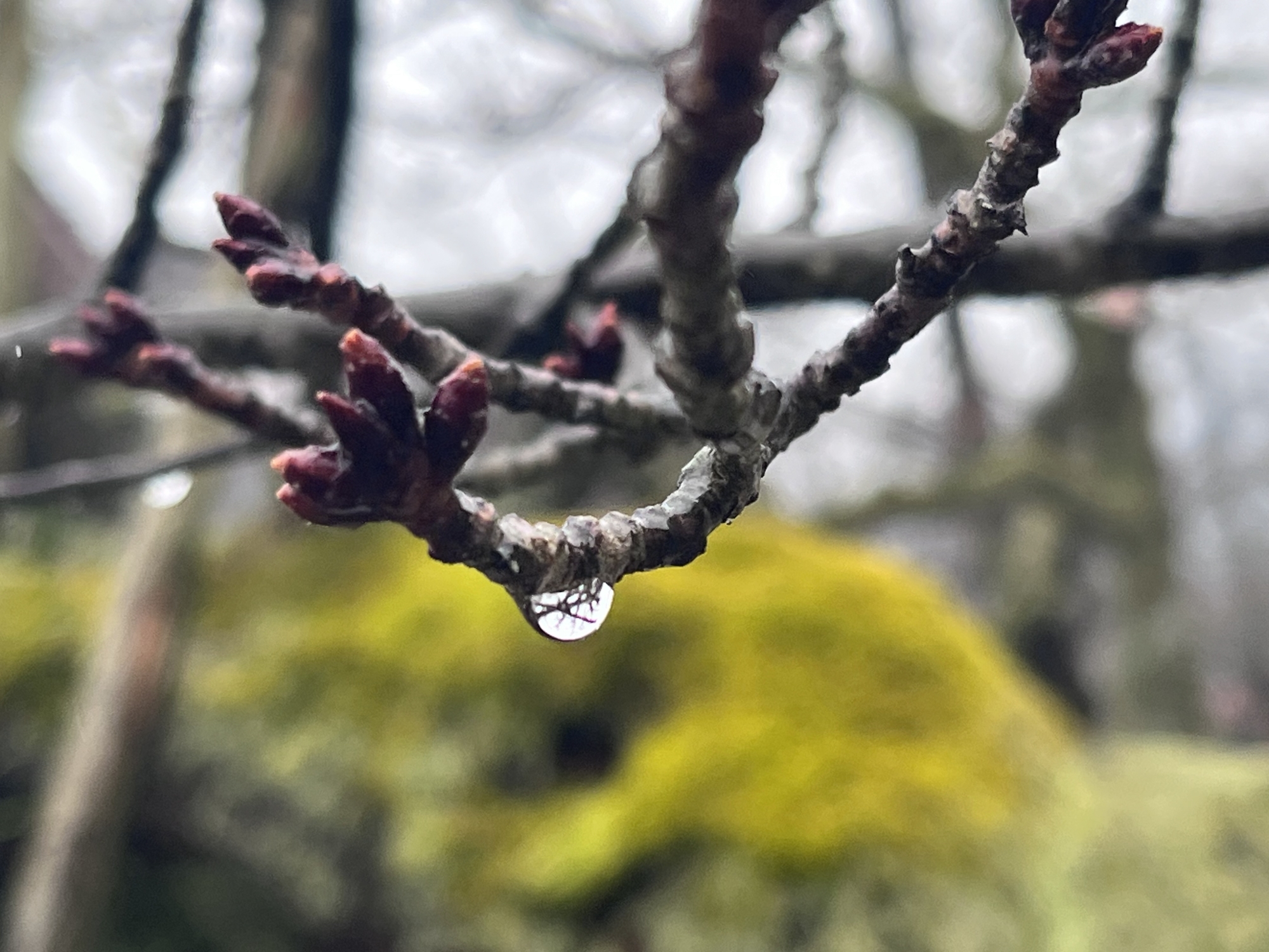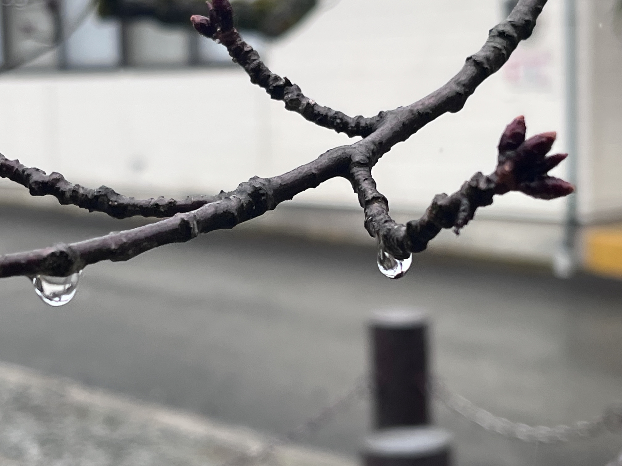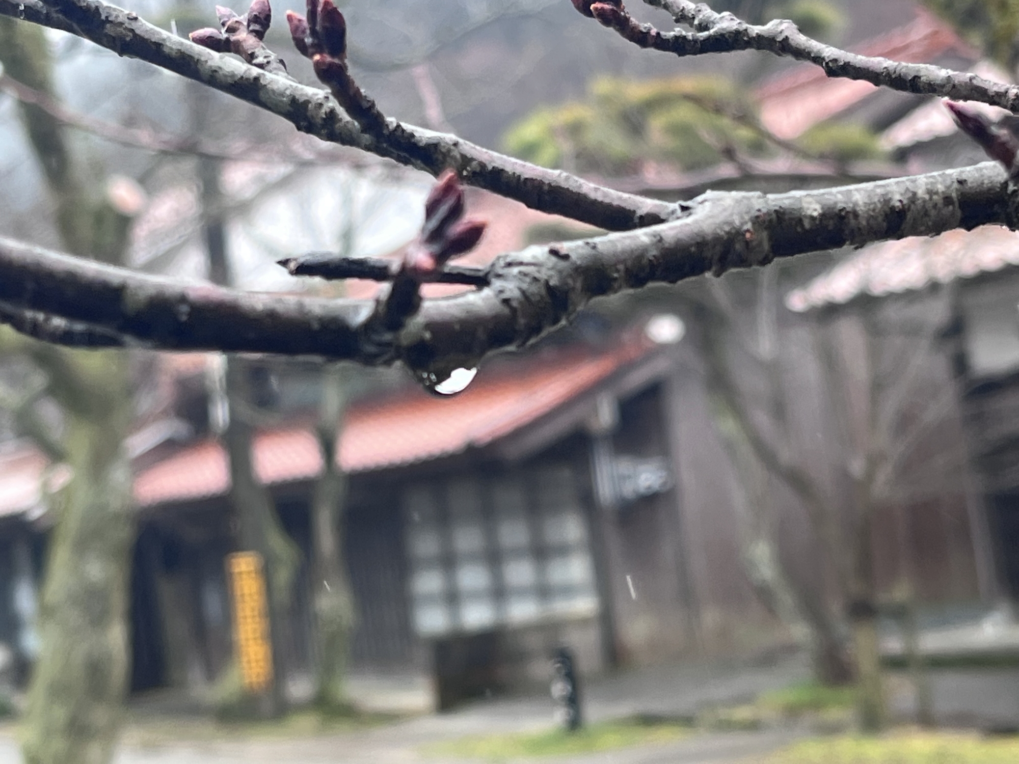 桜の木にも雨粒.