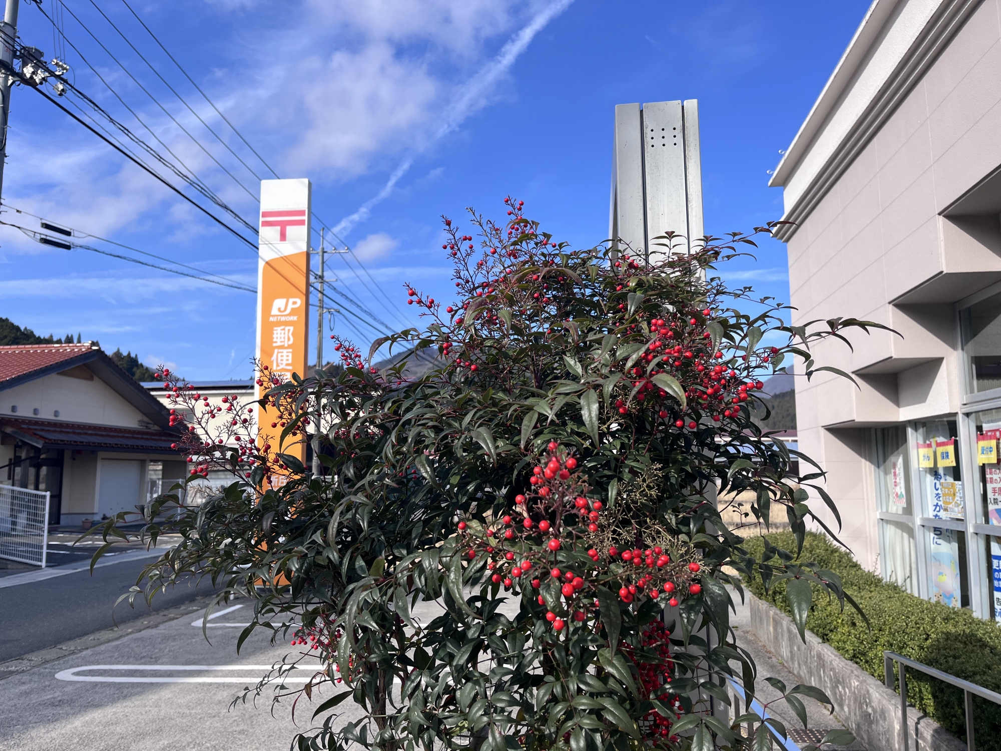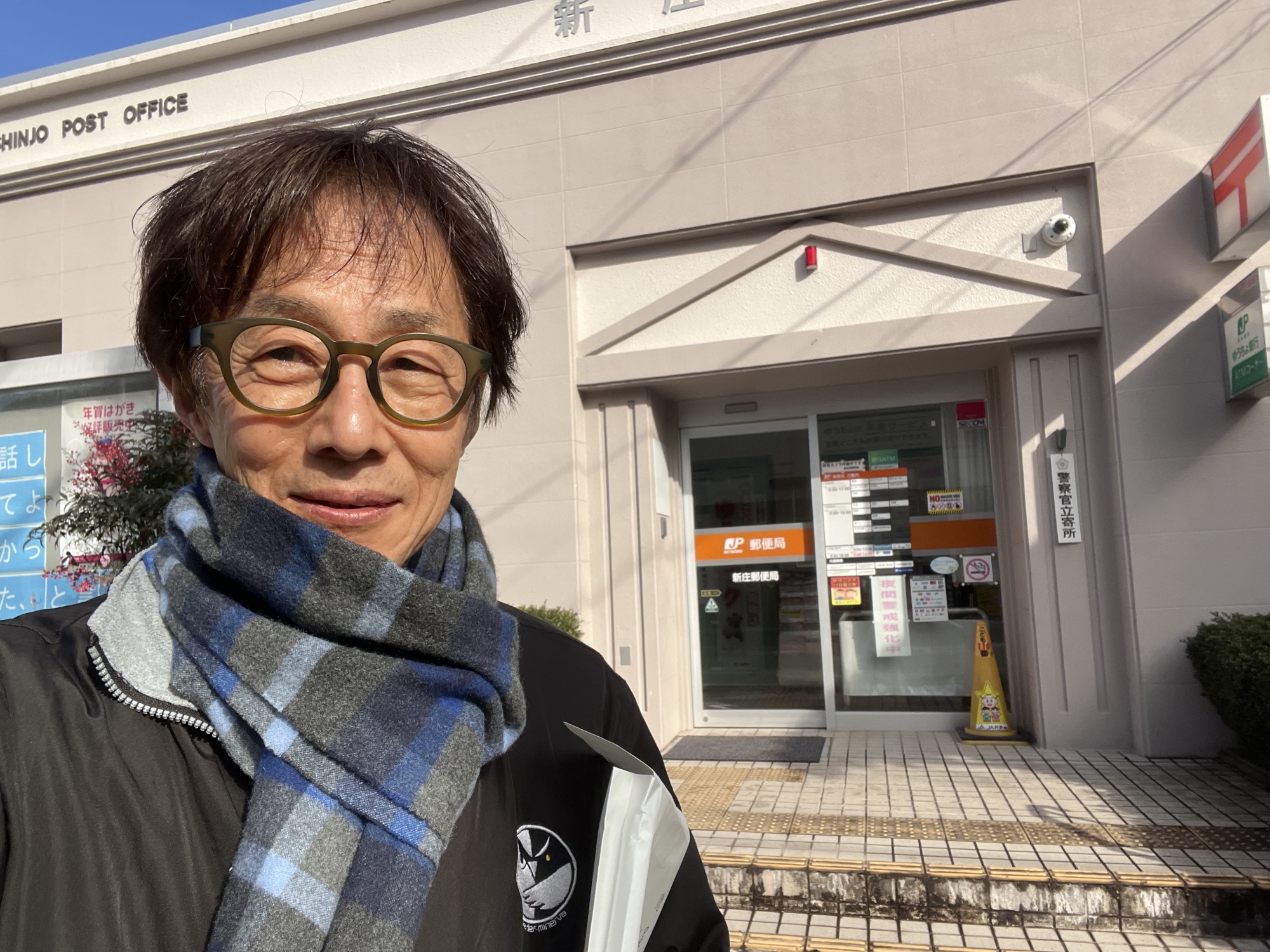 しっかり防寒・・・郵便局.