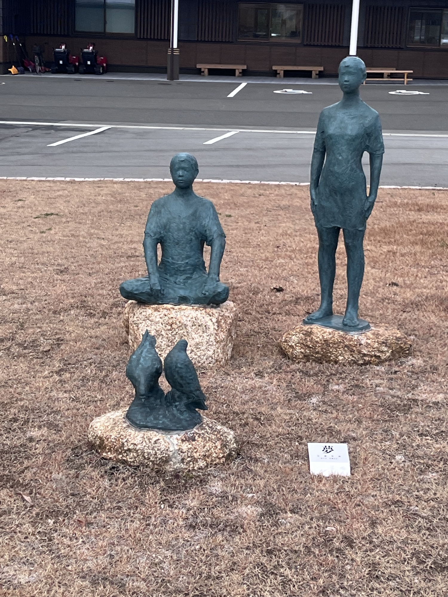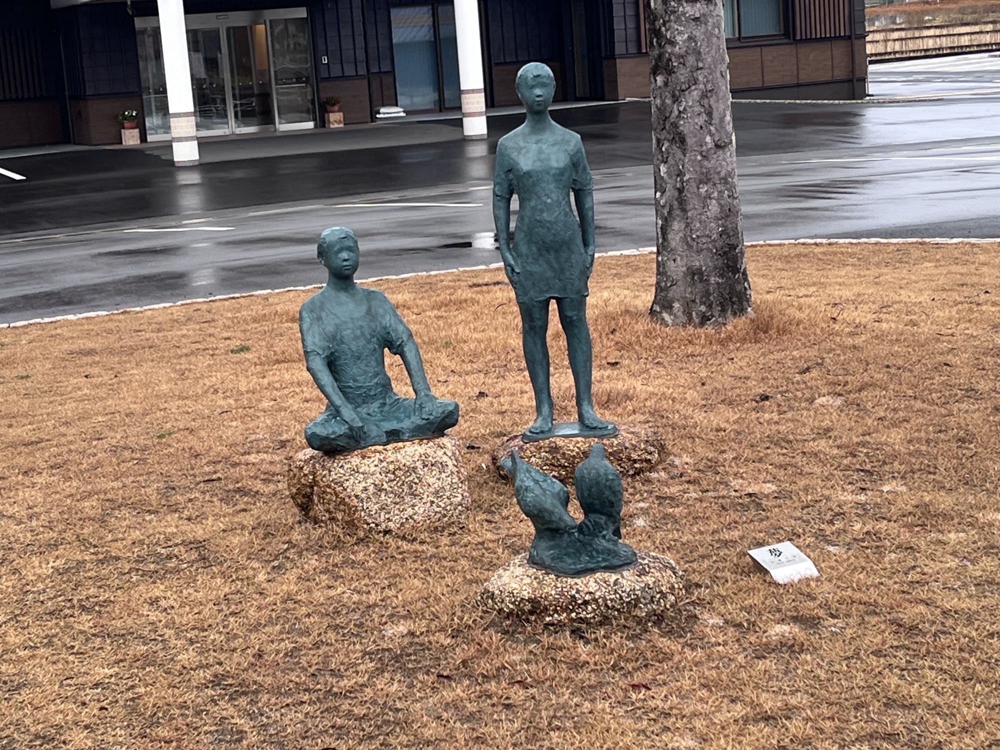 ふれあいホールの横は、小さなキノコの芝生.
