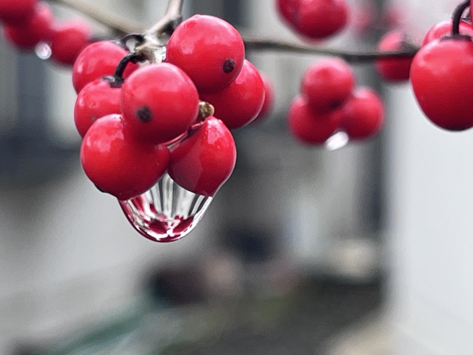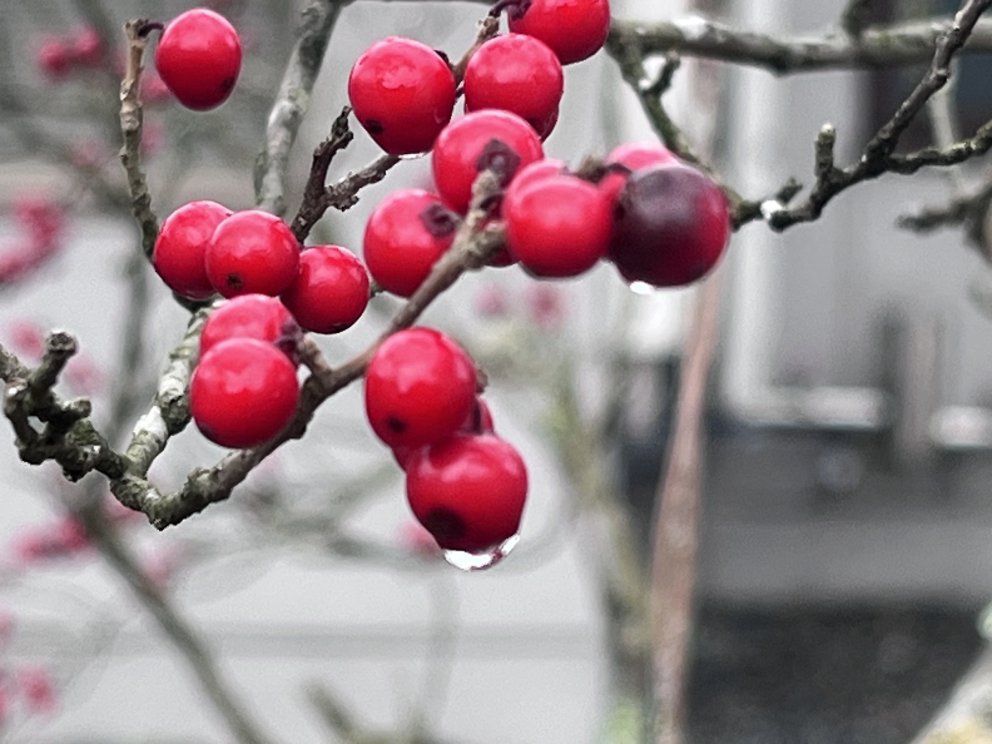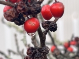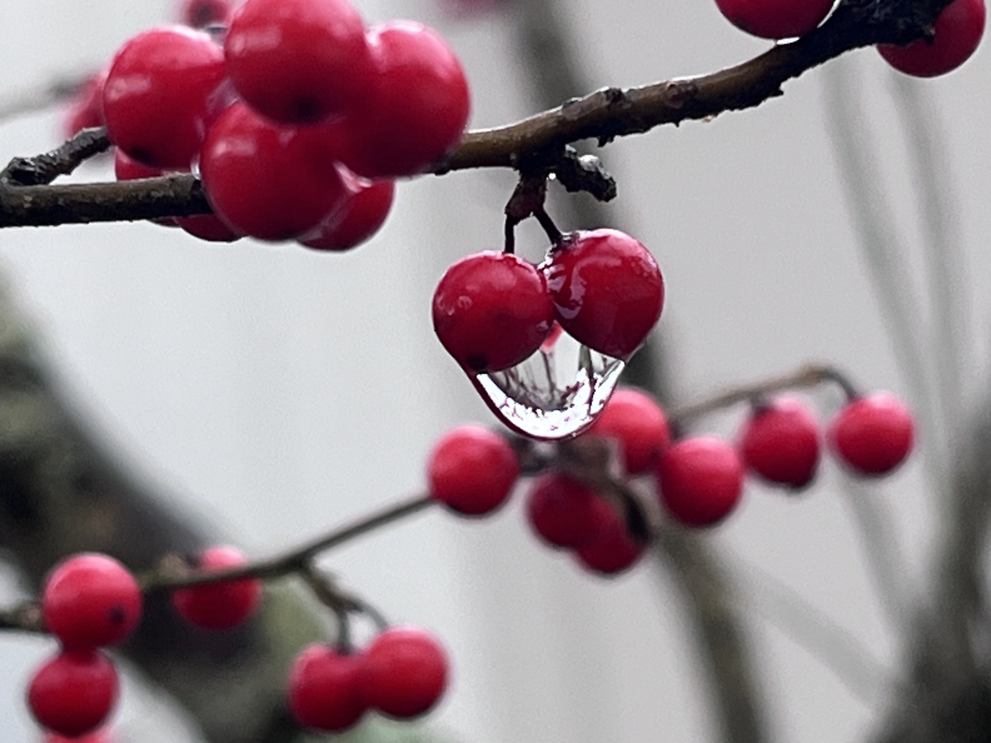 紅い実に雨粒.