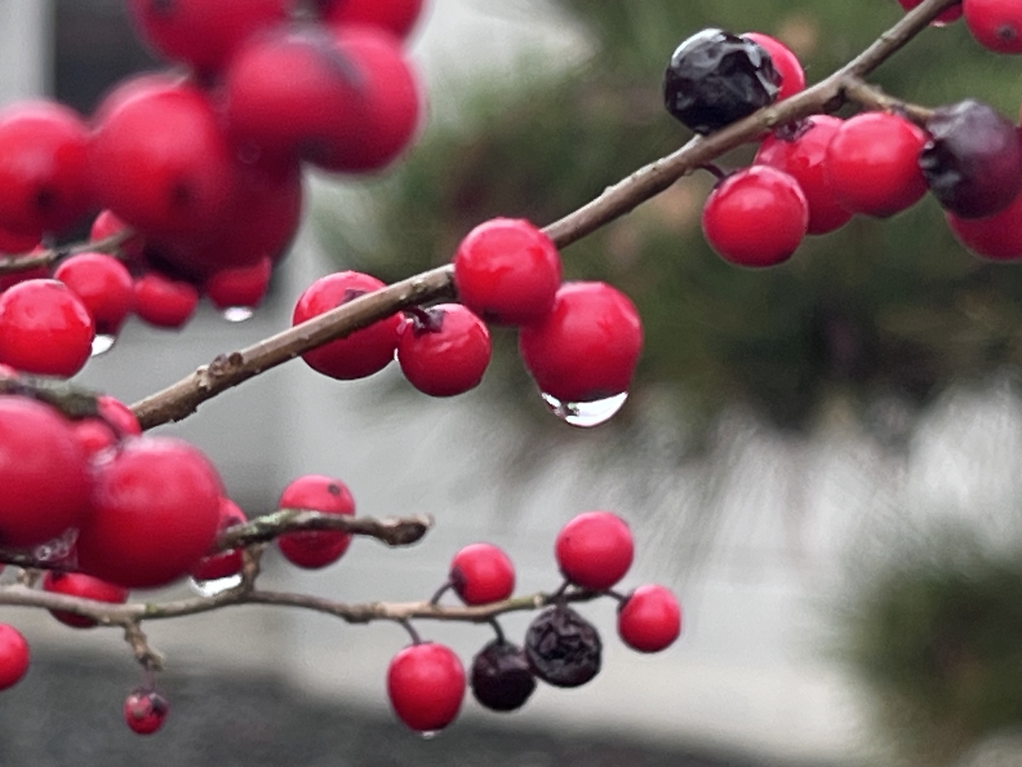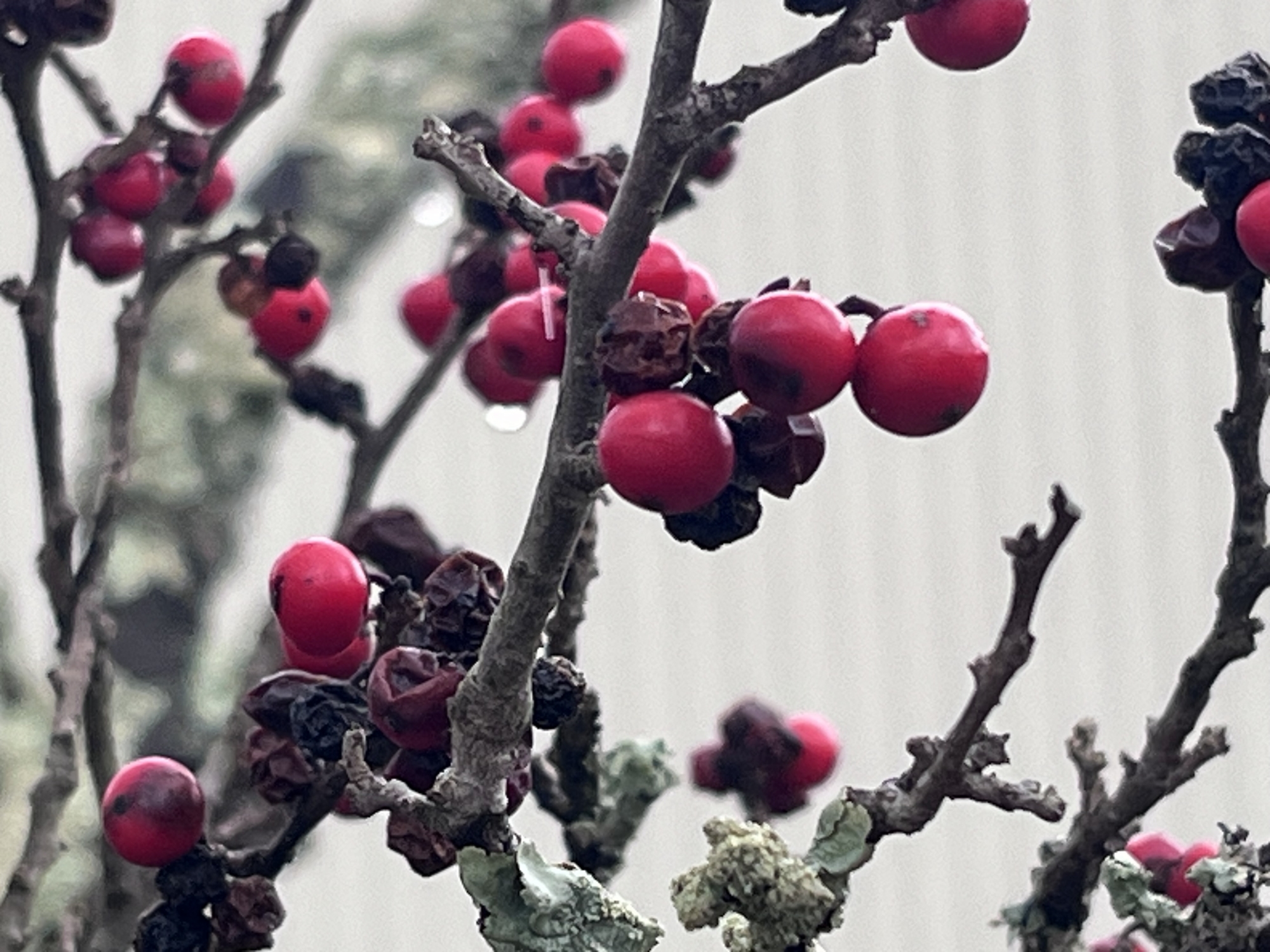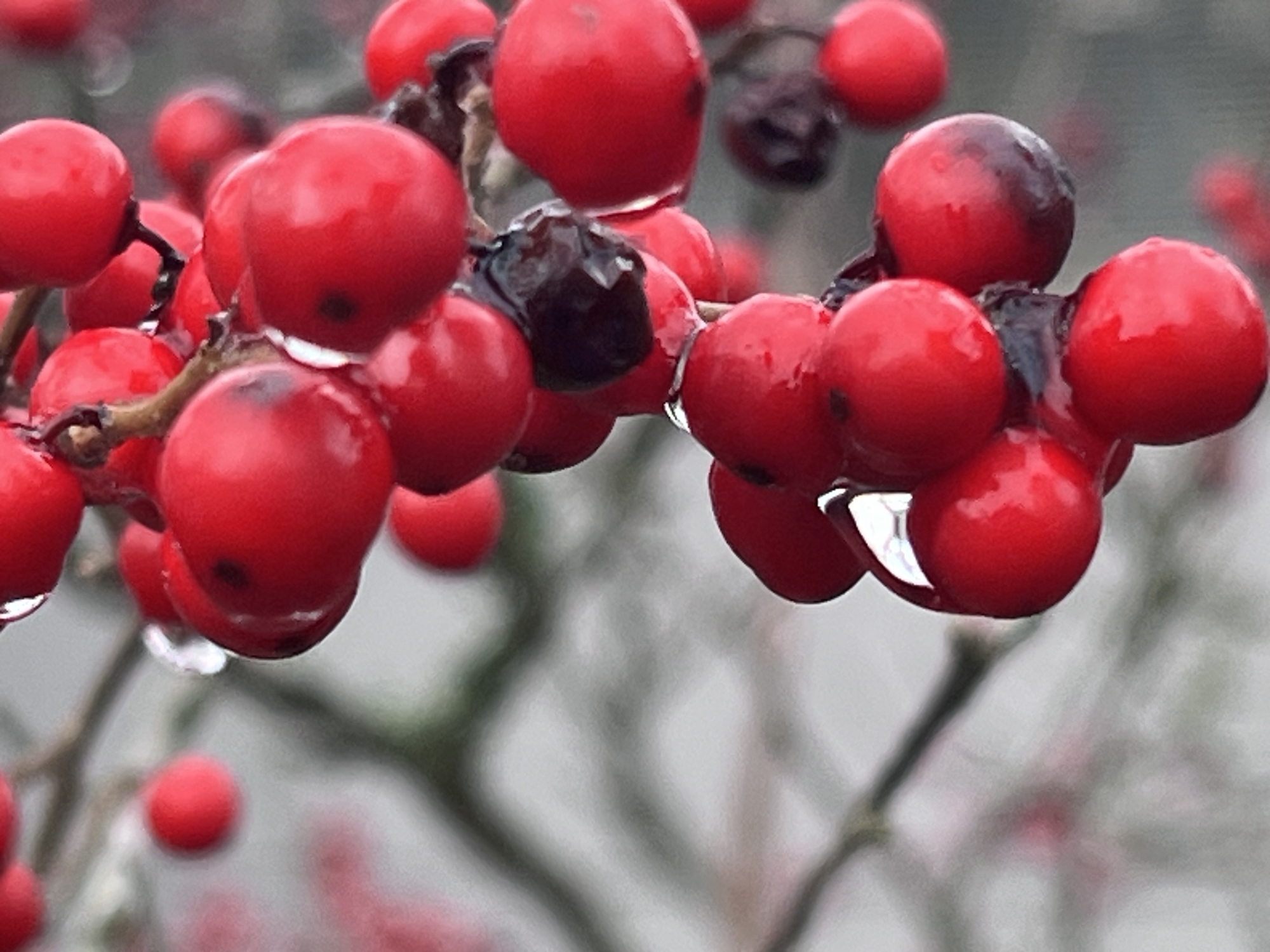 紅い実に雨粒.