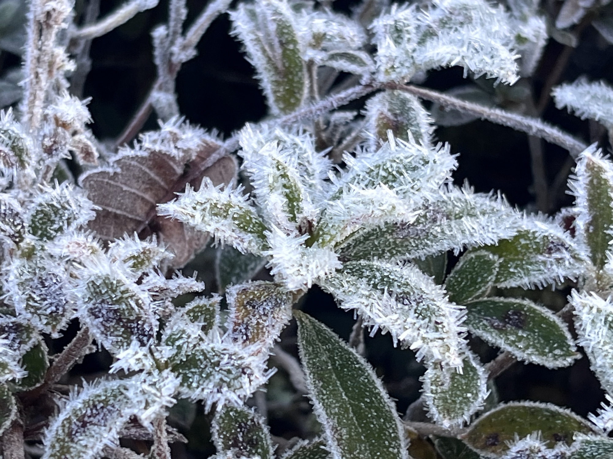 出勤の路もずっと霜.