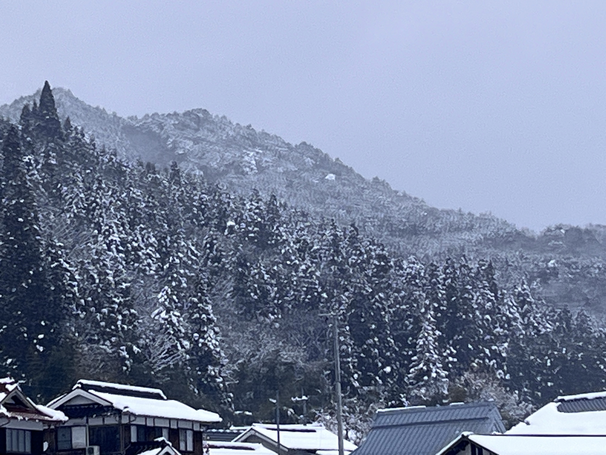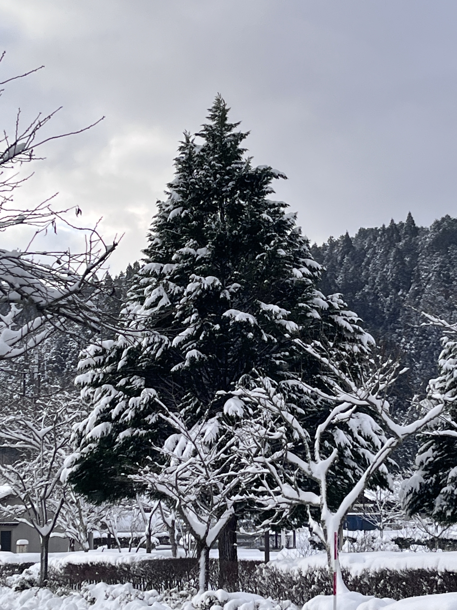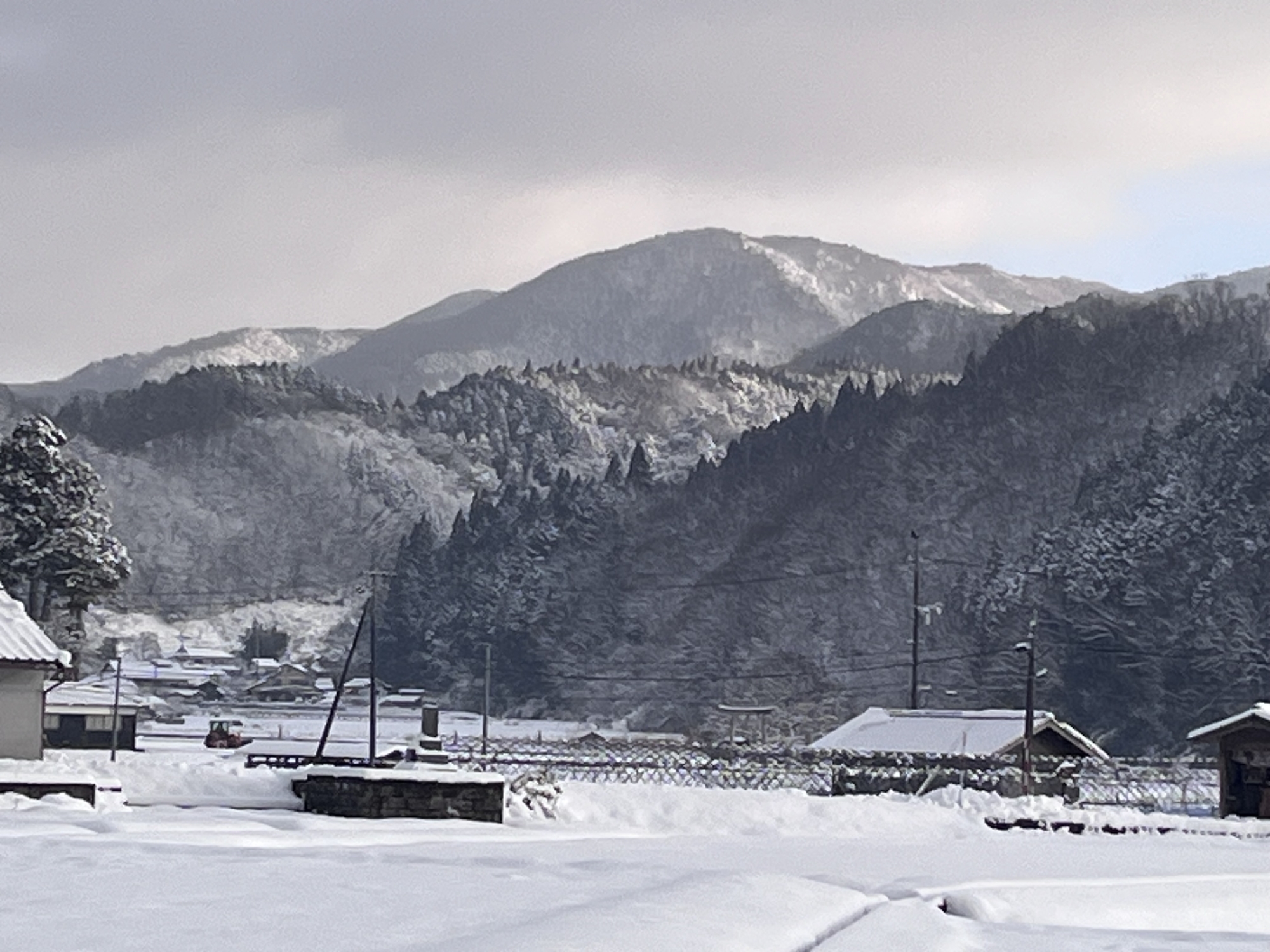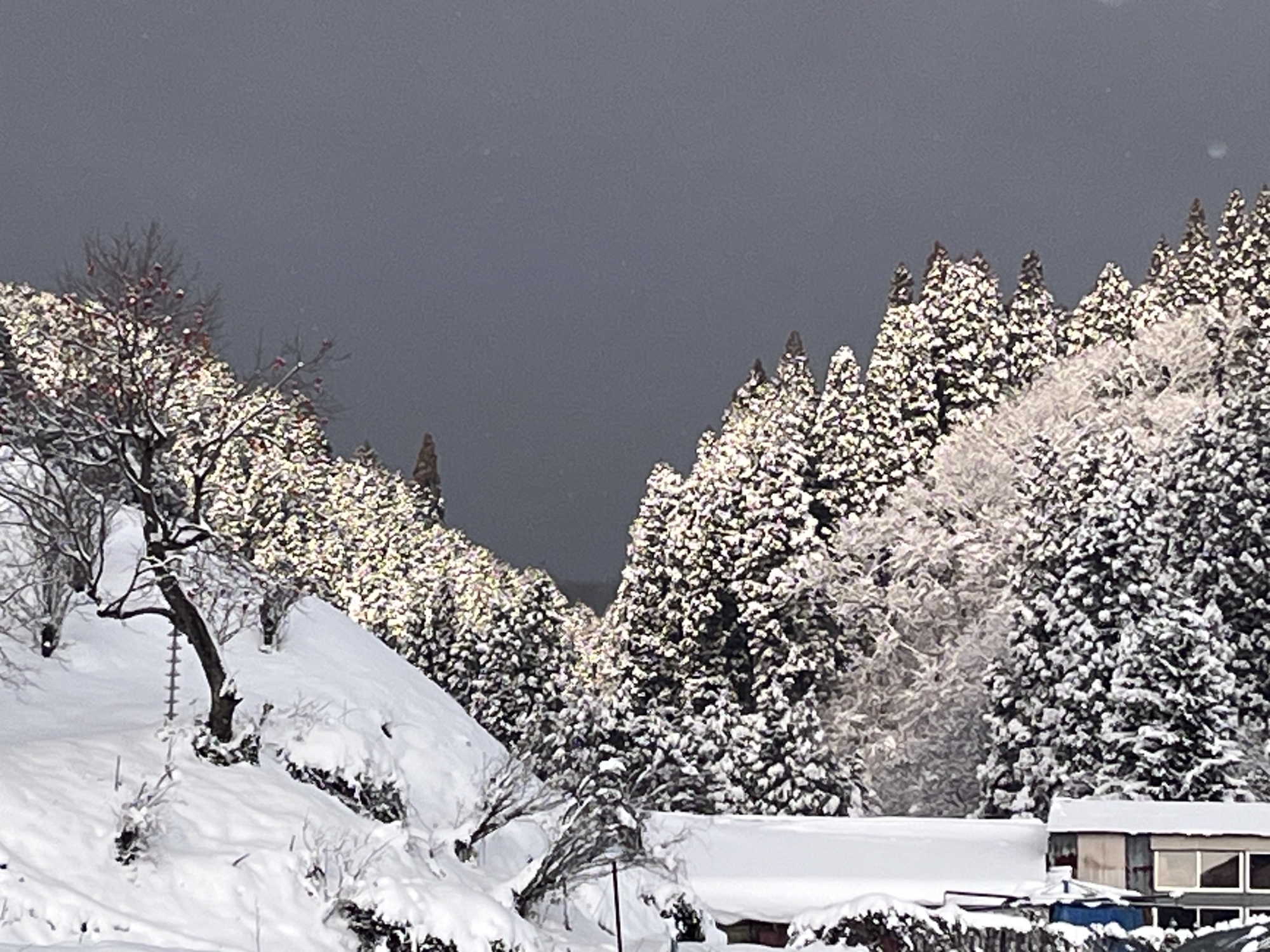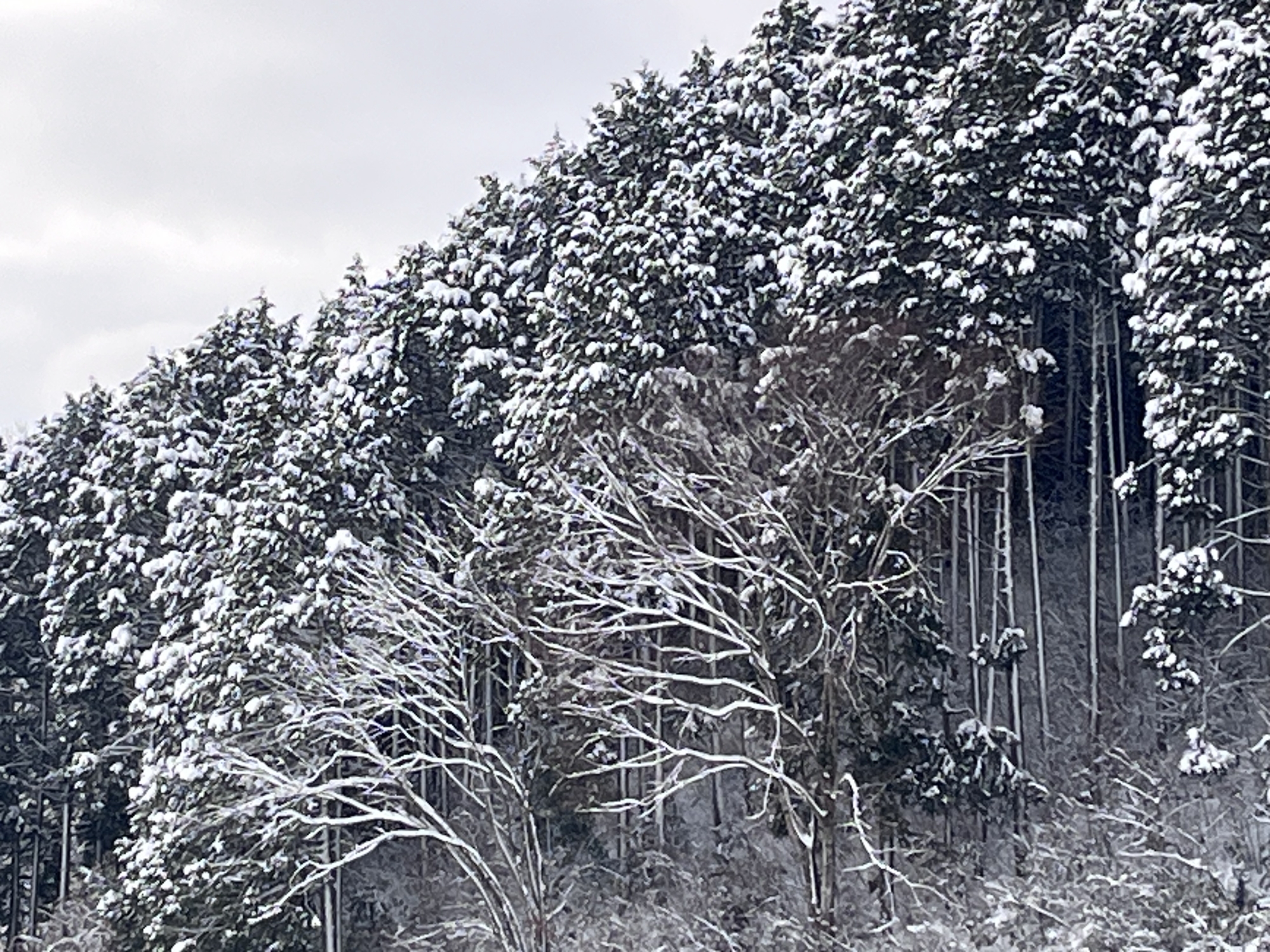 山の木々の枝々にも白い縁取り.