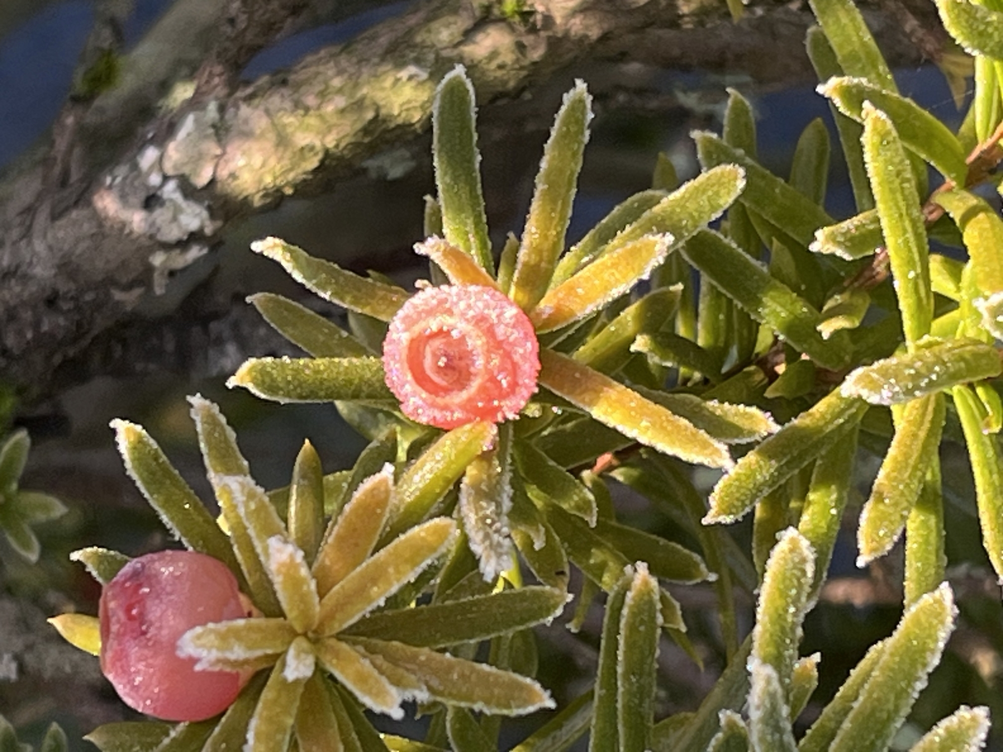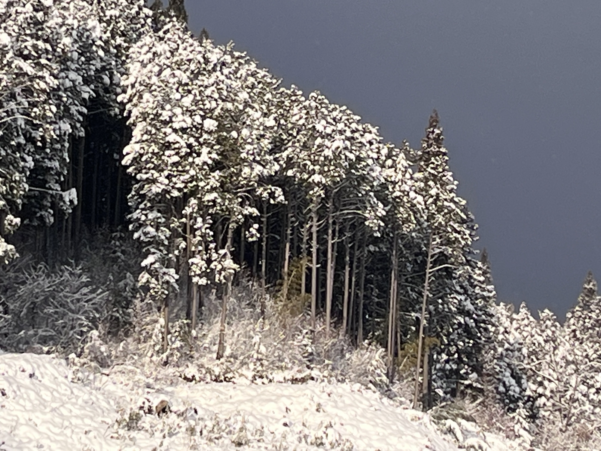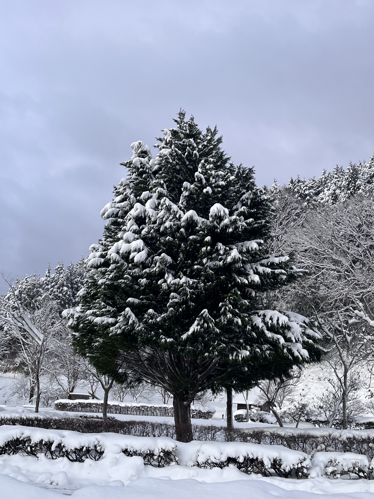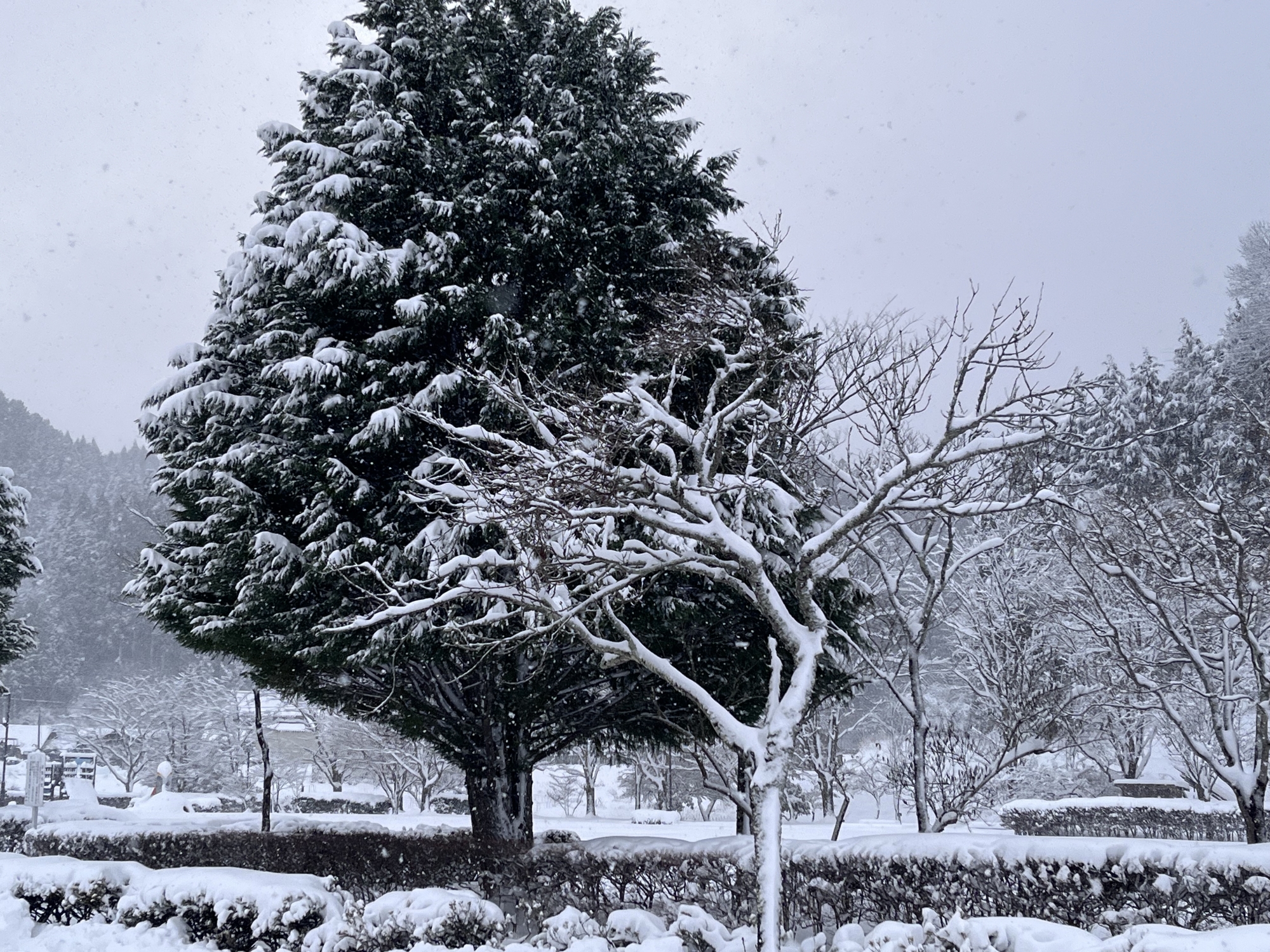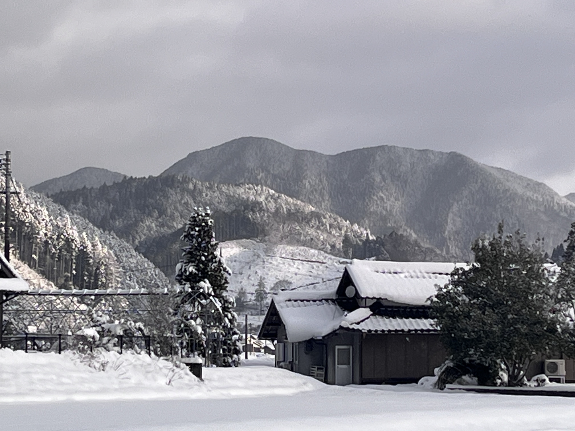 山の木々の枝々にも白い縁取り.