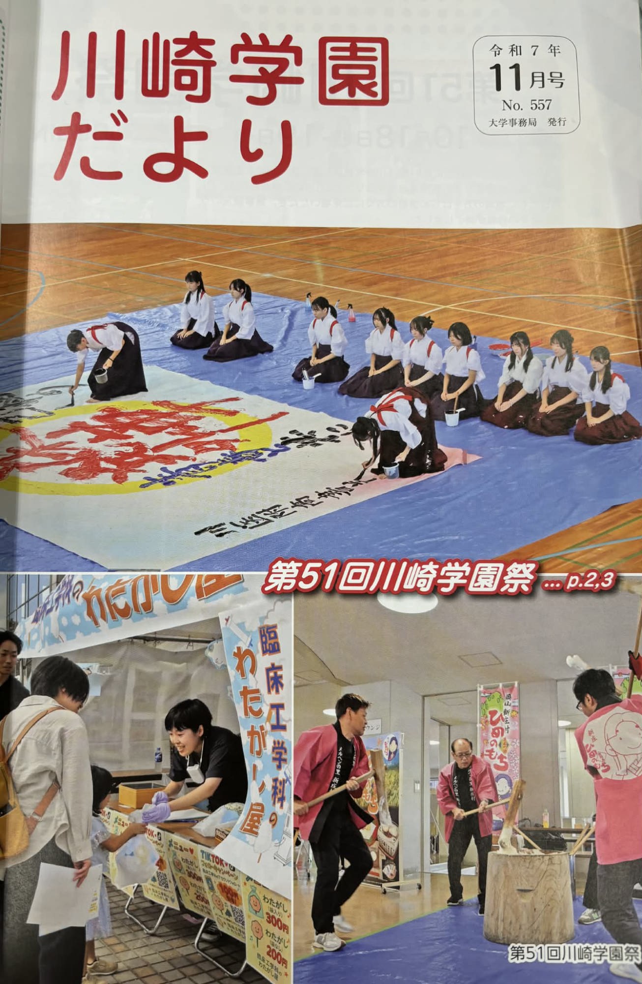それと、「学園だより」の表紙を餅搗き隊が飾ったとのことで、写メを頂戴しました、すごい!!!