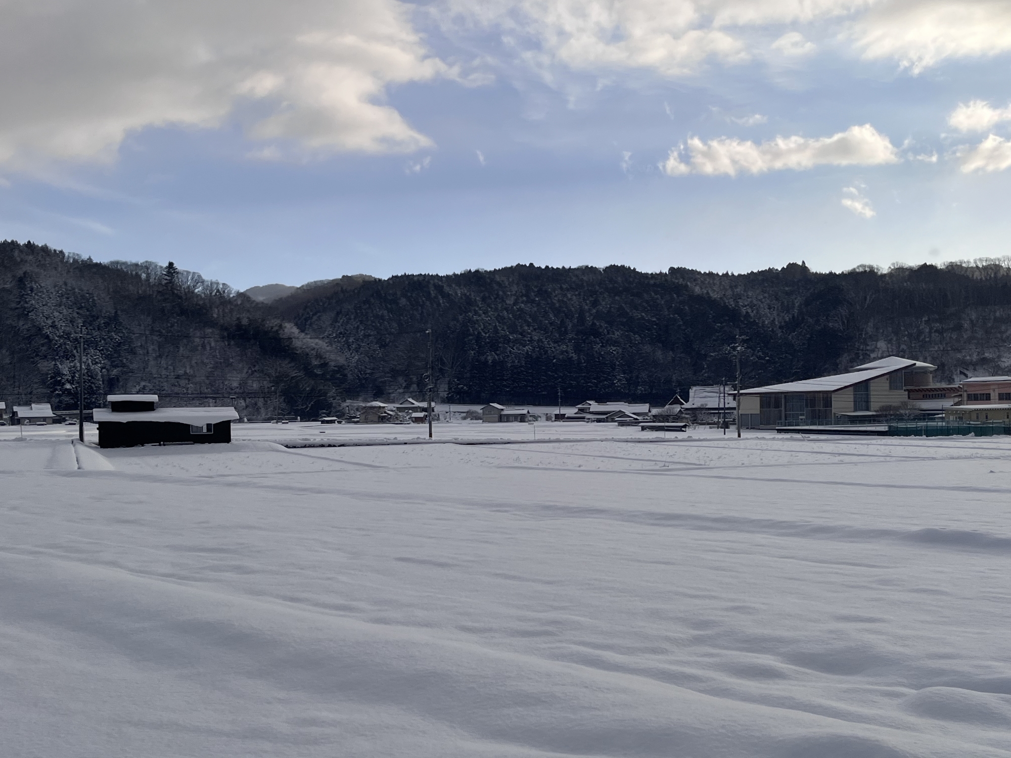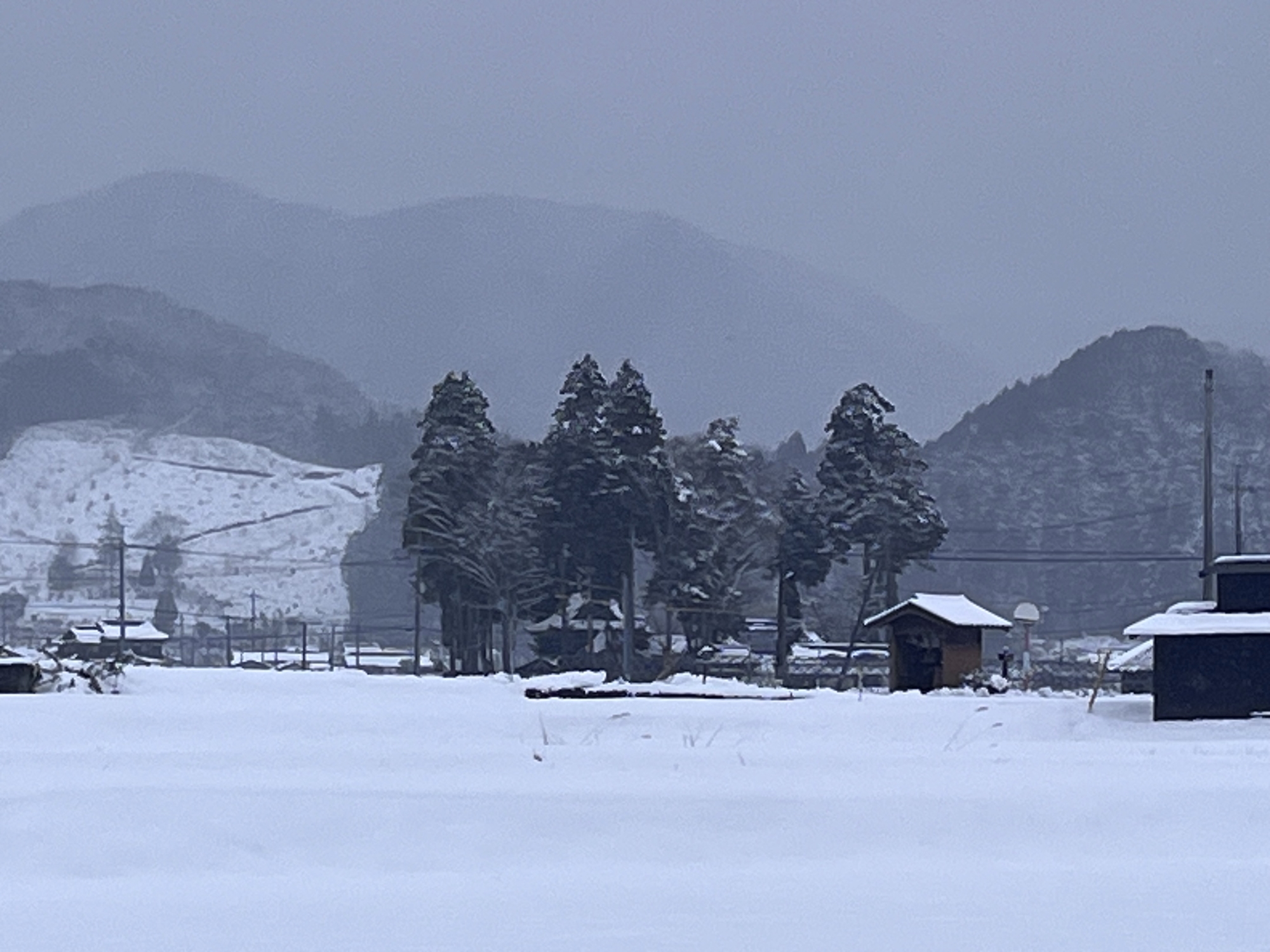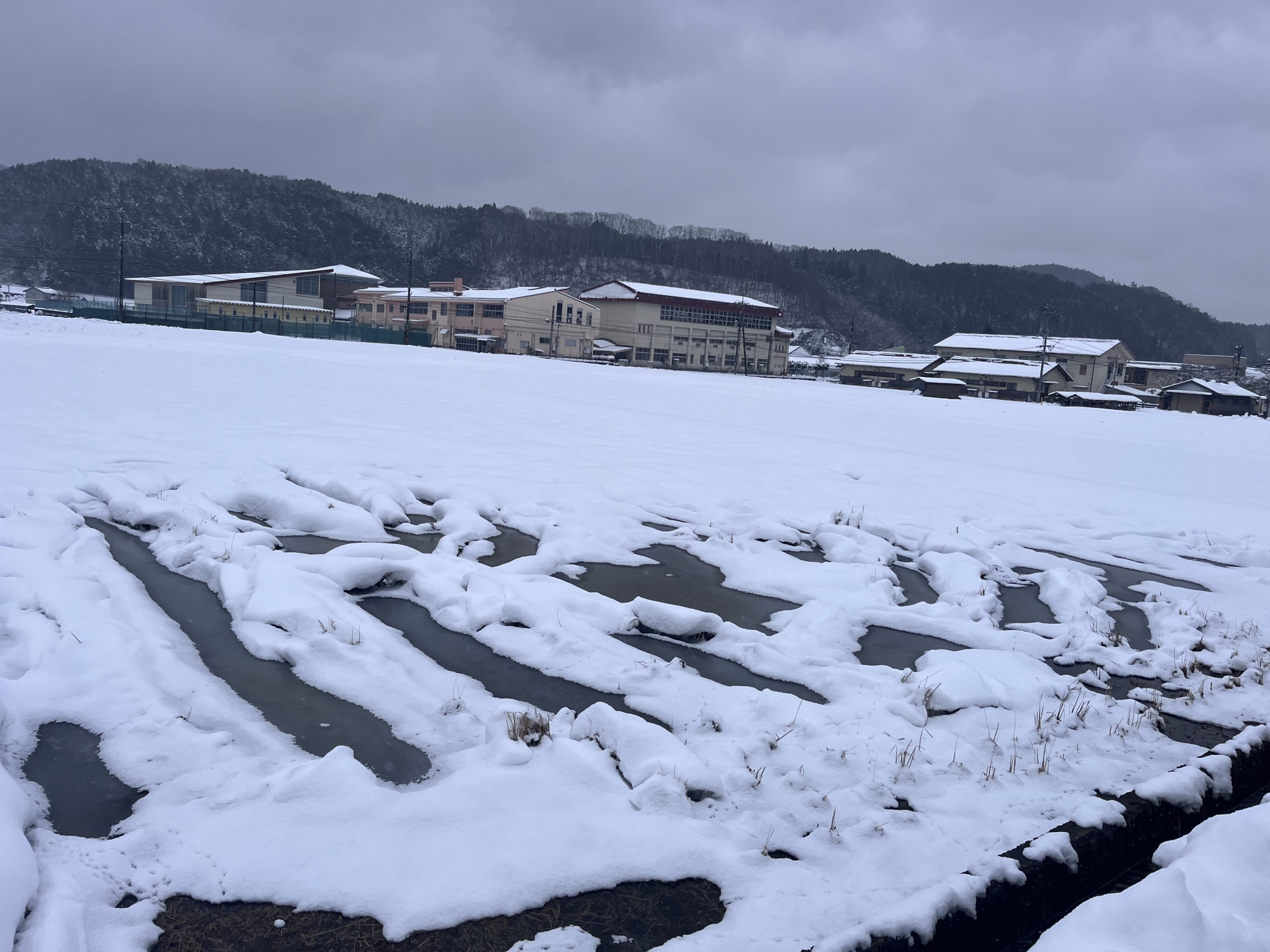 田圃は一面の白.